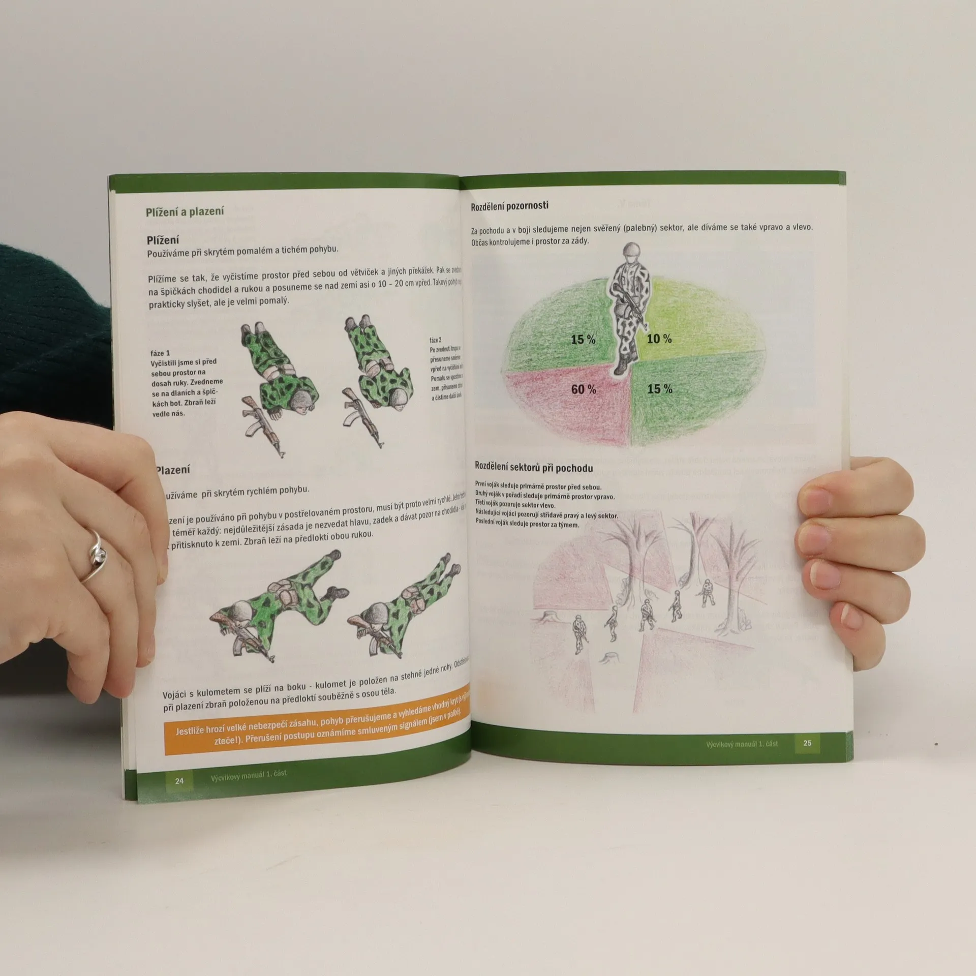 Výcvikový manuál - 1. část. Publikace která přináší všem začínajícím i pokročilým zájemcům o vojenské sporty, jakými jsou například airsoft, mnoho zajímavých informací. První část přináší na 110 bohatě ilustrovaných stranách základní informace od způsobu organizace jednotky a pořadové přípravy, přes praktické informace pro boj (střelecká příprava, pohyb na bojišti, komunikace v týmu, manévr v boji, maskování, výstroj, základy přežití, taktika útoku, obrany a střežení), až po fyzickou přípravu, základy první pomoci či orientaci v mapě a terénu.