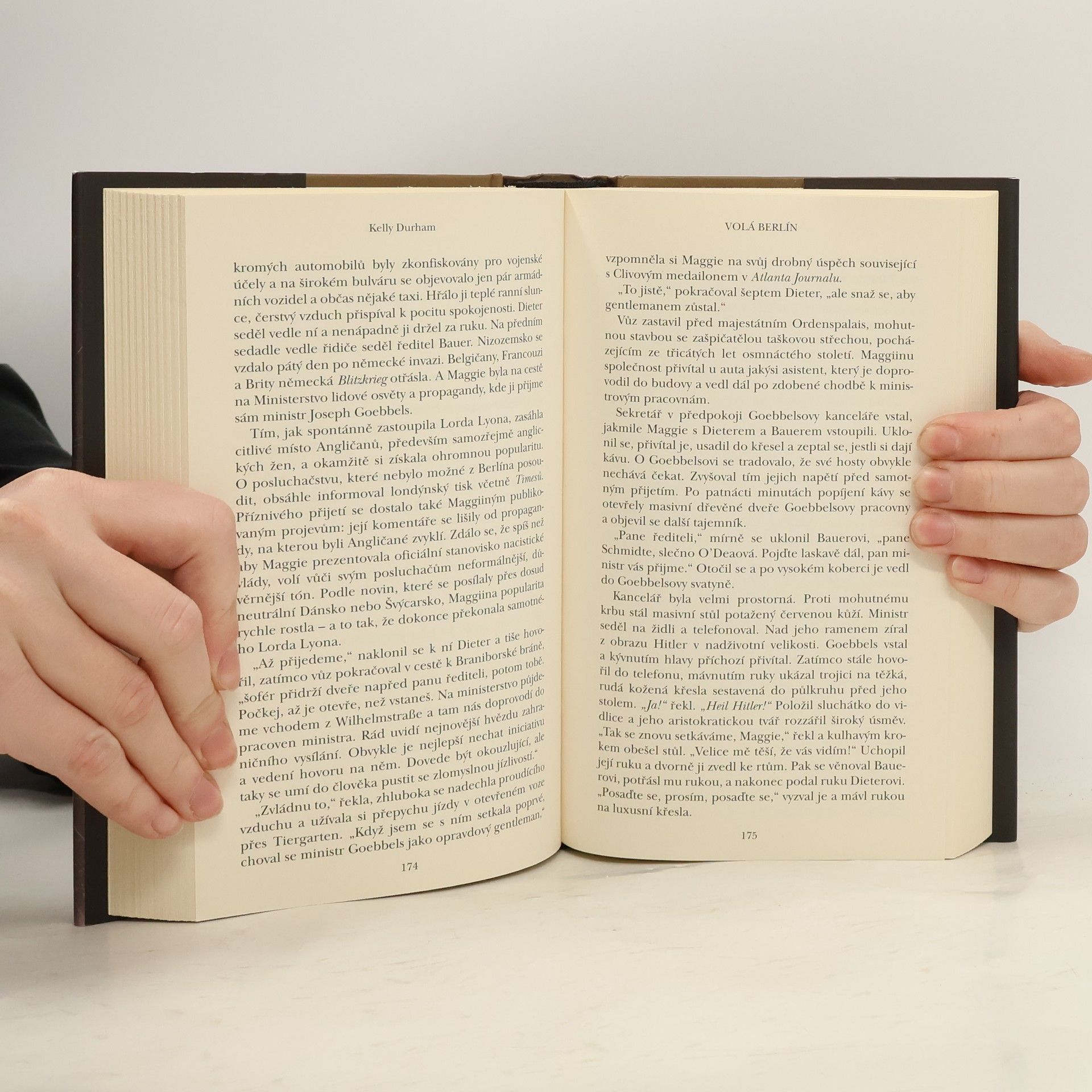 Německo 1938. Evropa balancuje na pokraji války. Chytrá, ale naivní Maggie studuje v Heidelbergu, kde potká nového přítele, s nímž následně odchází do Berlína. Chce být soběstačná, a tak s radostí přijímá práci na německém ministerstvu propagandy a aktivně se podílí na nočním německém vysílání pro anglosaský svět. Zanedlouho se stane pravou rukou nejoblíbenějšího anglického komentátora a upoutá pozornost samotného ministra Josepha Goebbelse. Německo postupně jednoho po druhém napadá své sousedy a kola druhé světové války se rychle roztáčejí. Maggie postupně prohlédne děsivé nacistické záměry a dochází jí, že se sama stala obětí propagandy, kterou šíří. Bojuje s vlastním svědomím, zmítaná mezi loajalitou k nové vlasti a znechucením nad svou rolí v nacistickém režimu. Světový konflikt, který i svou prací pomáhala rozehrát, ohrožuje nakonec i její život… Volá Berlín je román, inspirovaný skutečným osudem mladé Američanky Mildred Gillarsové, která se za války podílela na zahraničním vysílání hitlerovského Německa.