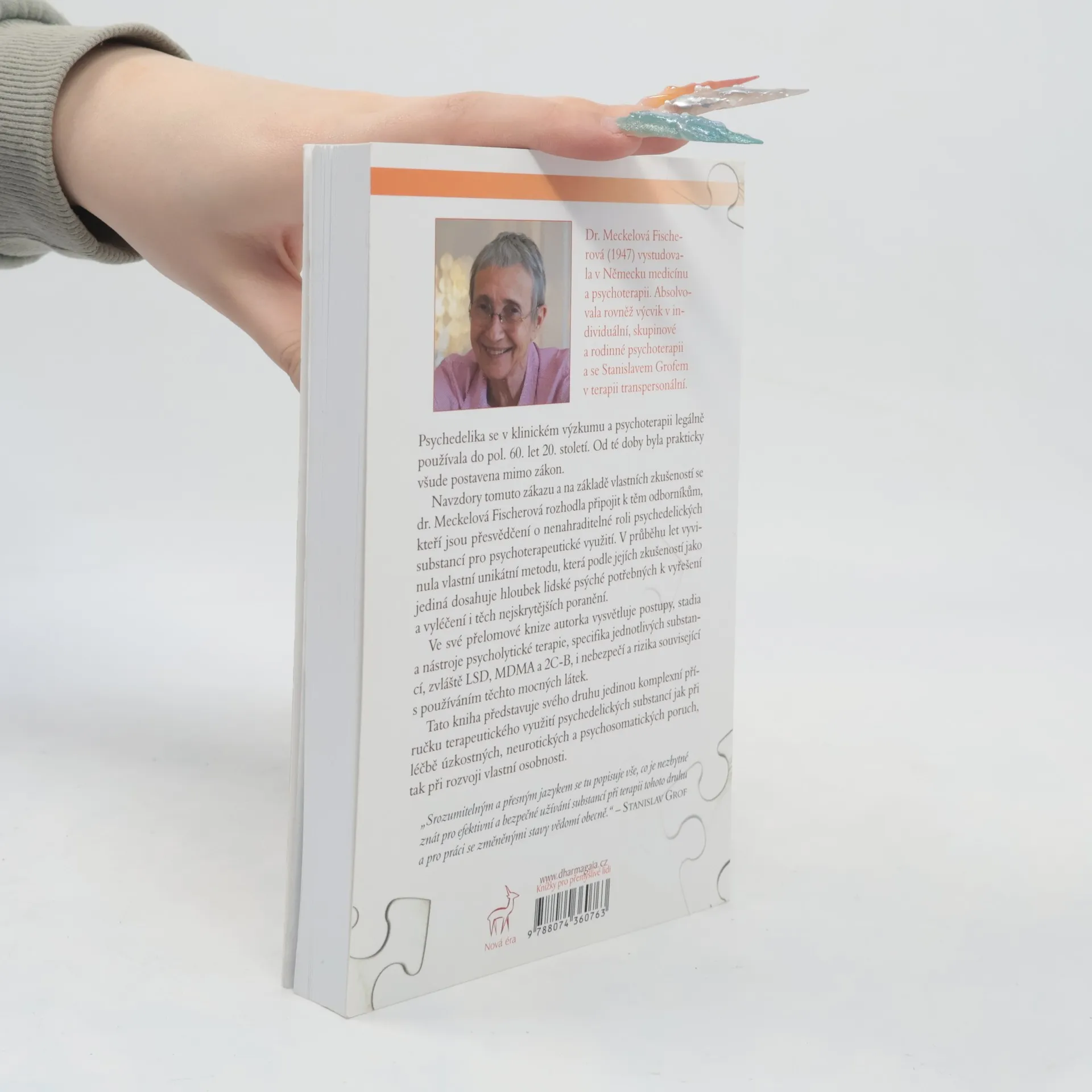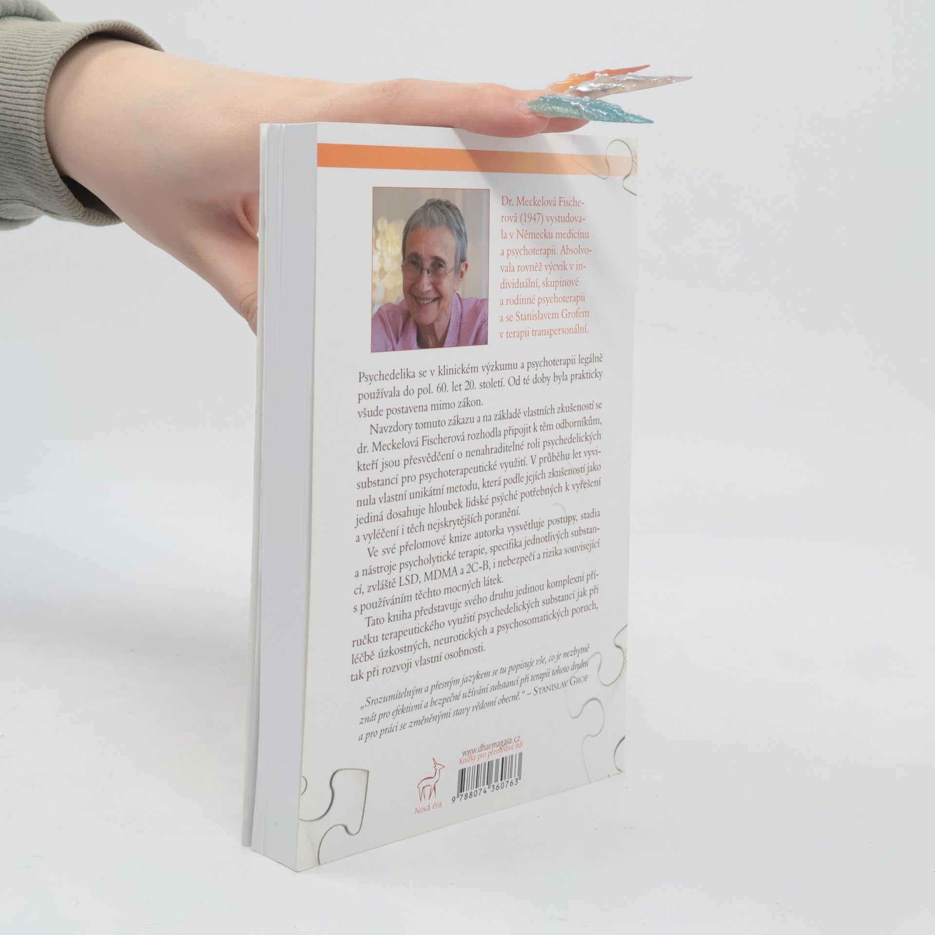 Psychedelika se v klinickém výzkumu a psychoterapii legálně používala do pol. 60. let 20. století. Od té doby byla prakticky všude postavena mimo zákon. Navzdory tomu zákazu a na základě vlastních prožitků se dr. Meckelová Fischerová rozhodla připojit k těm odborníkům, kteří jsou přesvědčení o nenahraditelné roli psychedelických substancí pro psychoterapeutické využití. V průběhu let vyvinula vlastní unikátní metodu, která podle jejích zkušeností jako jediná dosahuje hloubek lidské psýché, potřebných k vyřešení a vyléčení i těch nejskrytějších poranění Ve své přelomové knize autorka vysvětluje postupy, stadia a nástroje psycholytické terapie, specifika jednotlivých substancí, zvláště LSD, MDMA a 2C-B, i nebezpečí a rizika související s používáním těchto mocných látek. Tato kniha je svého druhu jediným komplexním průvodcem terapeutickým využitím psychedelických substancí jak při léčbě úzkostných, neurotických a psychosomatických poruch, tak při rozvoji vlastní osobnosti. „Srozumitelným a přesným jazykem se tu popisuje vše, co je nezbytné znát pro efektivní a bezpečné užívání substancí při terapii tohoto druhu a pro práci se změněnými stavy vědomí obecně.“ – Stanislav Grof Kniha vychází u příležitosti pražské Mezinárodní transpersonální konference v září 2017.