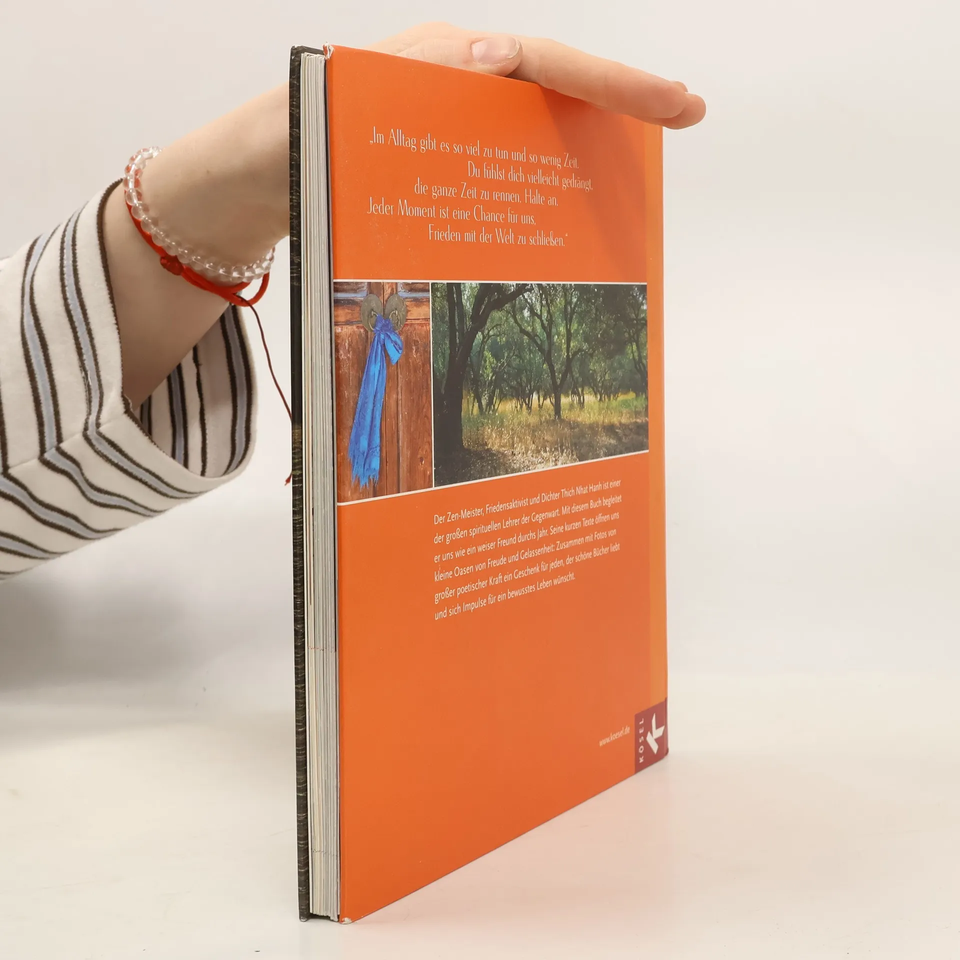 Thich Nhat Hanh, einer der großen spirituellen Lehrer der Gegenwart, ist bekannt für seine Warmherzigkeit, seine poetische Sprache und seine alltagspraktische Umsetzung buddhistischer Lehren. Mit diesem Buch begleitet er den Leser wie ein weiser Freund durchs Jahr: Für jede Woche findet sich ein kurzer, inspirierender Text des sanften Zen-Meisters. Wie eine liebevolle Berührung öffnen uns seine Worte für die Wunder des Lebens, schenken Gelassenheit und Energie. Stimmungsvolle, doppelseitige Fotos setzen die Botschaften von Thich Nhat Hanh in Bilder um, die die Seele erreichen. Ein Geschenk für alle, die schöne Bücher lieben und sich Impulse für ein bewusstes Leben wünschen. Ausstattung: Durchgehend vierfarbig