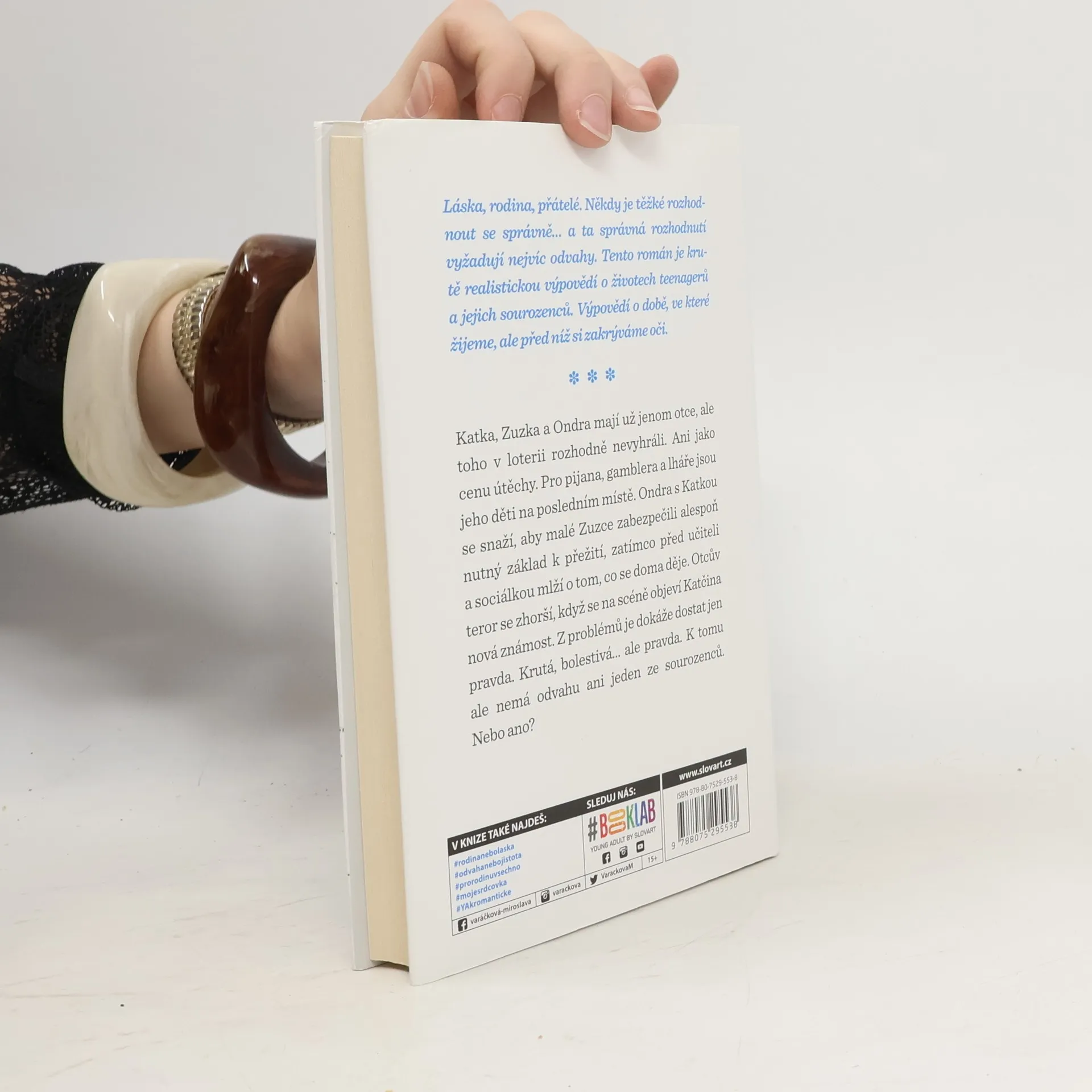 Správná rozhodnutí vyžadují nejvíc odvahy. Kačka, Zuzka a Ondra mají už jen otce, ale toho v loterii nevyhráli. Ani jako cenu útěchy. Pro pijana, gamblera a lháře jsou děti na posledním místě. Ondra s Katkou se snaží, aby malé Zuzce zabezpečili alespoň nejnutnější základ pro přežití, navíc musí před učiteli a sociálkou mlžit o tom, co se doma děje. Otcův teror se zhorší, když na scénu přichází Katčin nový objev. Zdá se, že z problémů je dokáže dostat jen pravda. Krutá, bolestivá… ale pravda. K tomu však ani jeden ze sourozenců nenachází odvahu. Nebo ano? Dívat se na svět skrz růžové brýle a zavírat oči před mnohdy nepříjemnou skutečností je velmi lehké. To ale rozhodně neplatí o novém románu Miroslavy Varáčkové. Miroslava Varáčková má doma tři chlapy a psa. Když je ráno vypraví do práce a do školy, odpluje ke klávesnici počítače a do světa fantazie. Každá její nová kniha je totiž cestou, na kterou se se svými hrdinkami vypraví. Jejich cíl není nikdy jasný, ten objevují společně a jejich zážitky formují nejen Mirku, ale i její hrdinky.