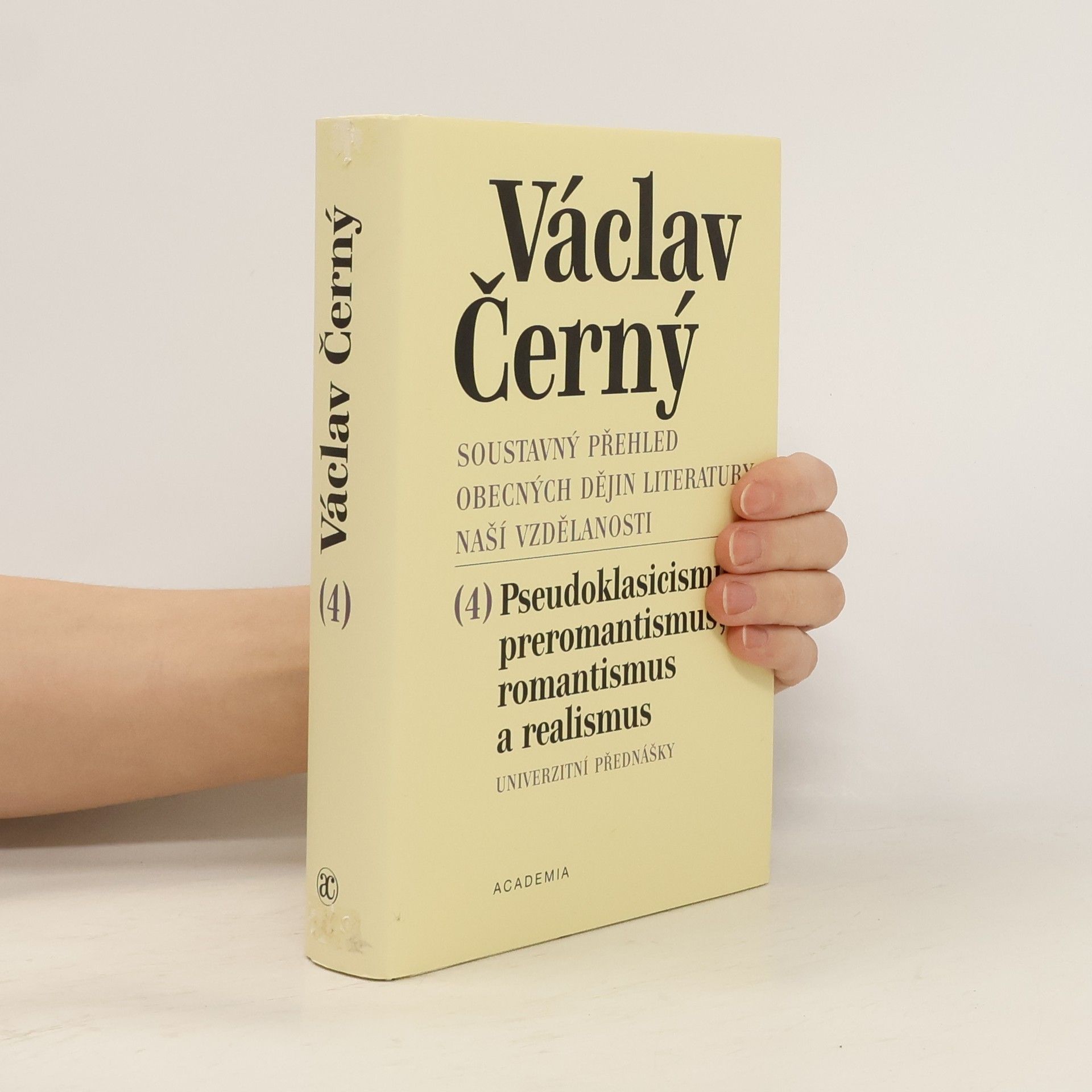 Čtvrtý díl univerzitních přednášek prof. dr. Václava Černého je věnován pseudoklasicismu, preromantismu, romantismu a realismu, tedy období zhruba od poloviny 18. století do devadesátých let 19. století. Podstatná část textů se zabývá literaturou, v níž zejména období preromantismu a romantismu se těšilo intenzivnímu a soustředěnému zájmu předního literárního komparatisty.
