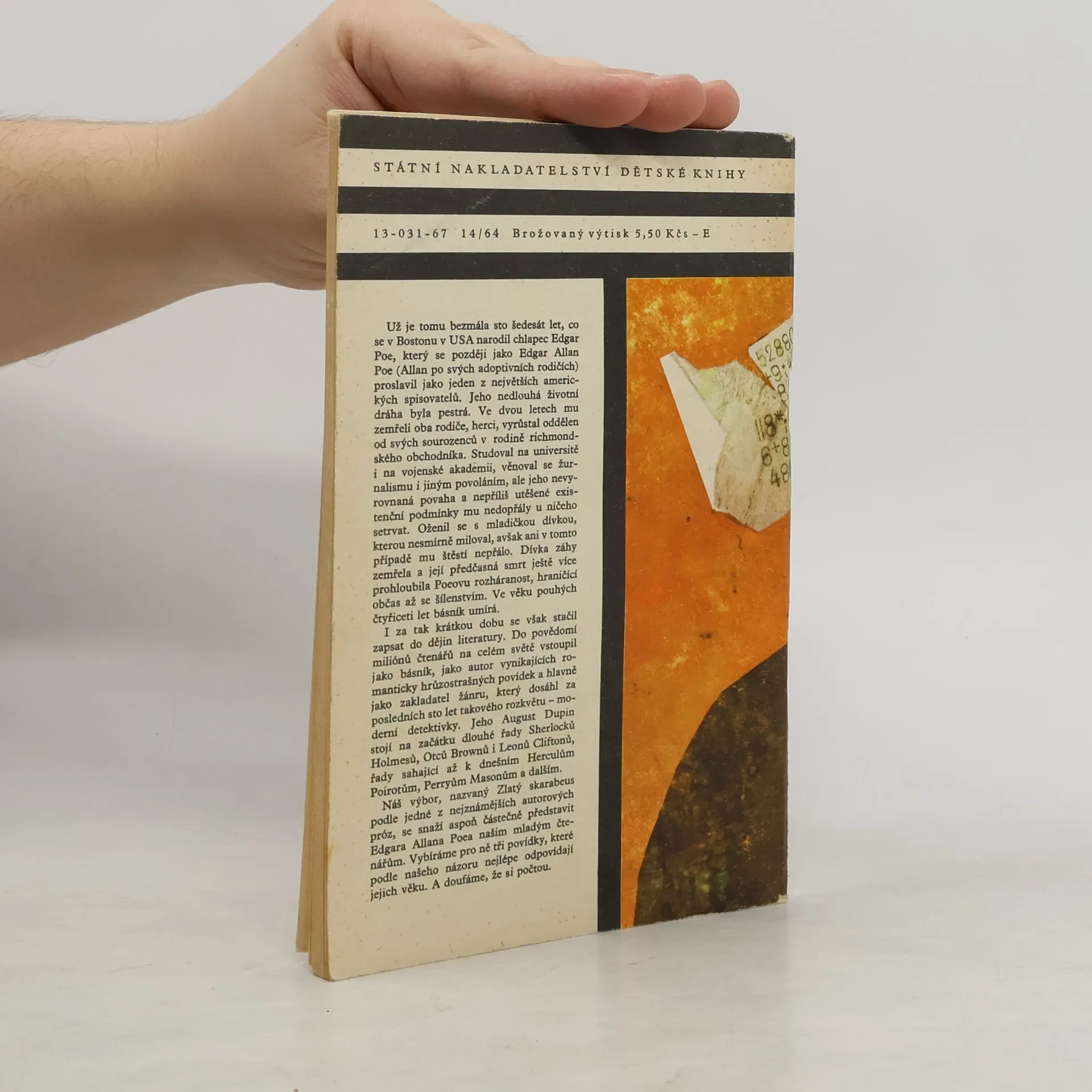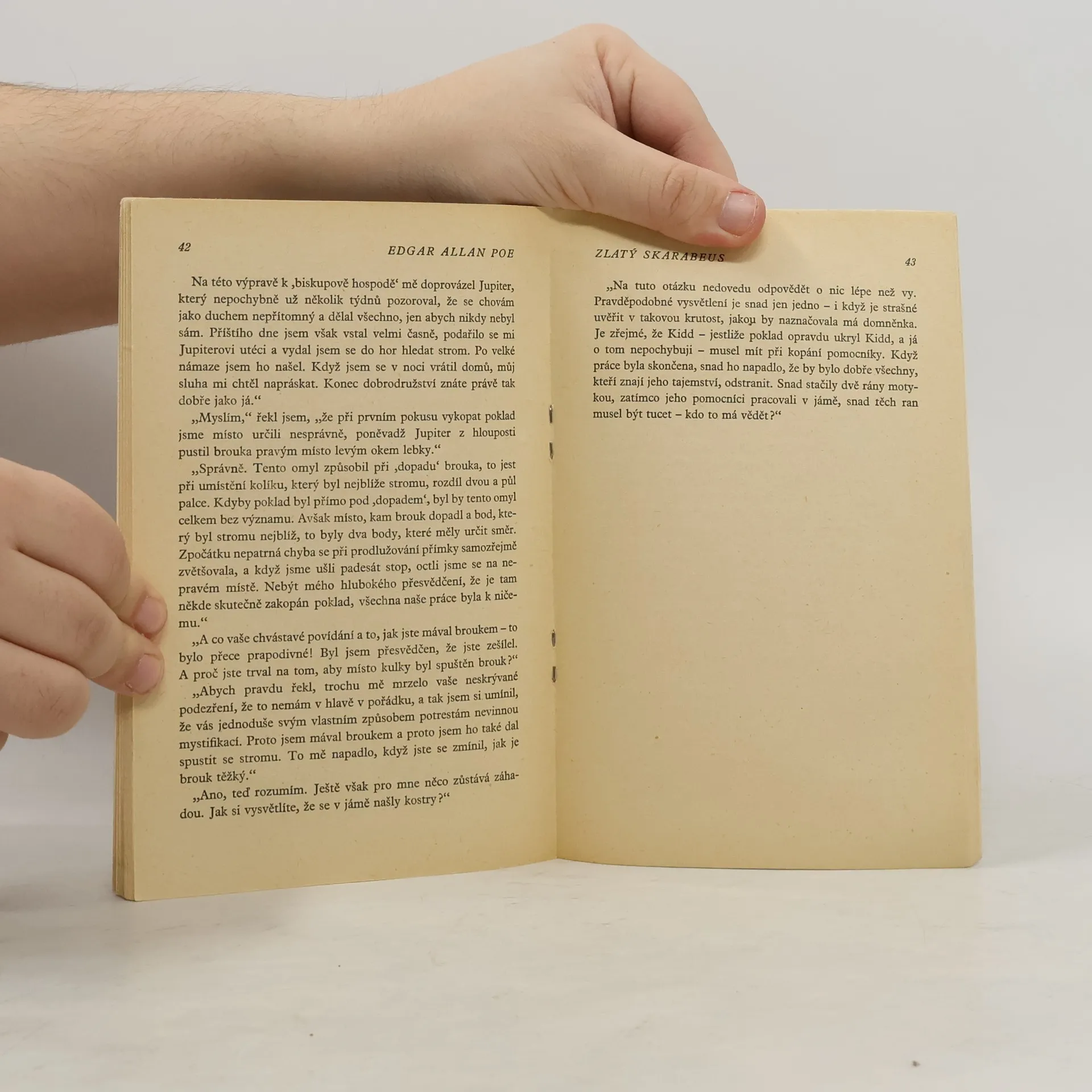 Tři povídky (Zlatý skarabeus, Ukradený dopis, Sestup do Maelströmu) známého amerického spisovatele. V prvé se vypráví o dobrodružném objevu pokladu nesmírné ceny rozluštěním a dešifrováním záhadného nálezu na pobřeží moře, druhá je založena na spekulaci, že nejlepším úkrytem pro ukrývanou písemnost je místo nejnápadnější, v třetí se popisuje záchrana trosečníka z mořského víru na základě úvahy shodné s Archimedovým zákonem. Výbor uspořádal Jiří Šeda.