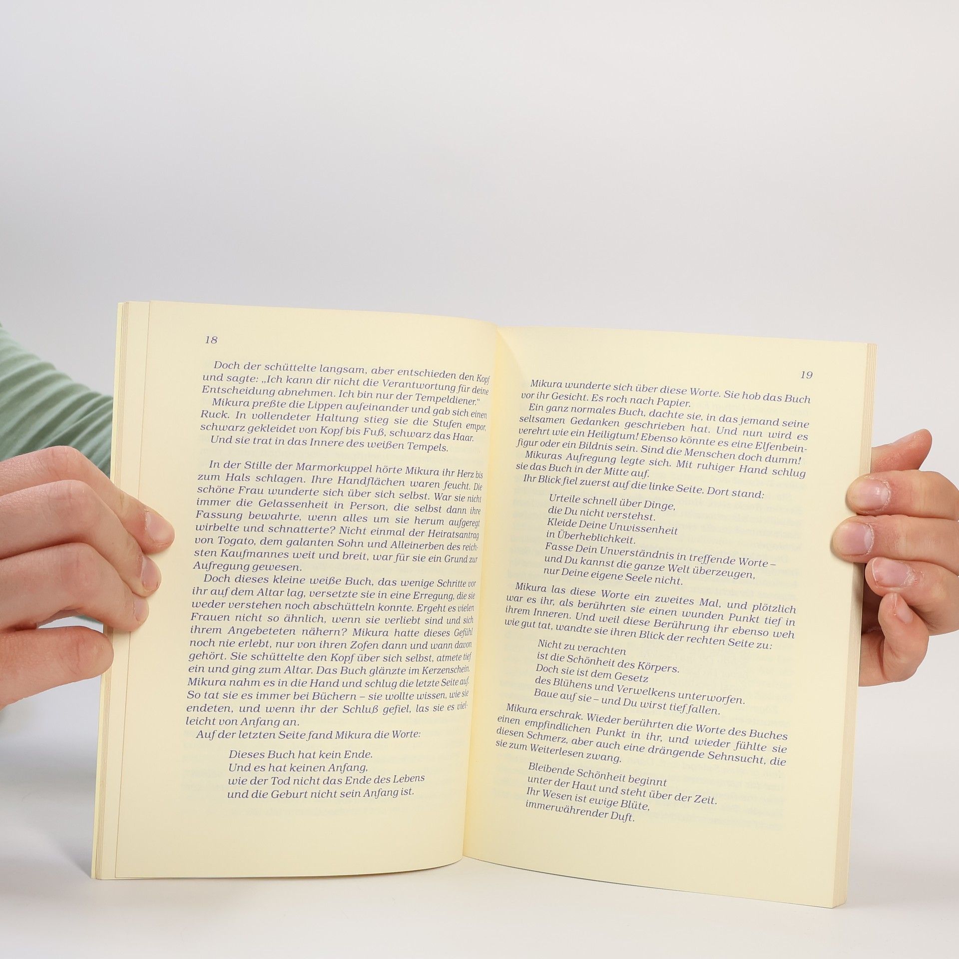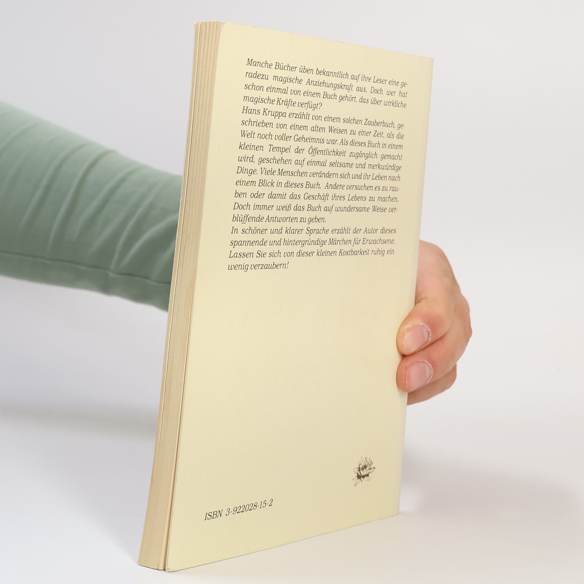 Manche Bücher üben bekanntlich auf ihre Leser eine geradezu magische Anziehungskraft aus. Doch wer hat schon einmal von einem Buch gehört, das über wirkliche magische Kräfte verfügt? Hans Kruppa erzählt von einem solchen Zauberbuch, geschrieben von einem alten Weisen zu einer Zeit, als die Welt noch voller Geheimnisse war. Als dieses Buch in einem kleinen Tempel der Öffentlichkeit zugänglich gemacht wird, geschehen auf einmal seltsame und merkwürdige Dinge. Viele Menschen verändern sich und ihr Leben nach einem Blick in dieses Buch. Andere versuchen es zu rauben oder damit das Geschäft ihres Lebens zu machen. Doch immer weiß das Buch auf wundersame Weise verblüffende Antworten zu geben. In schöner und klarer Sprache erzählt der Autor dieses spannende und hintergründige Märchen für Erwachsene. Lassen Sie sich von dieser kleinen Kostbarkeit ruhig ein wenig verzaubern!