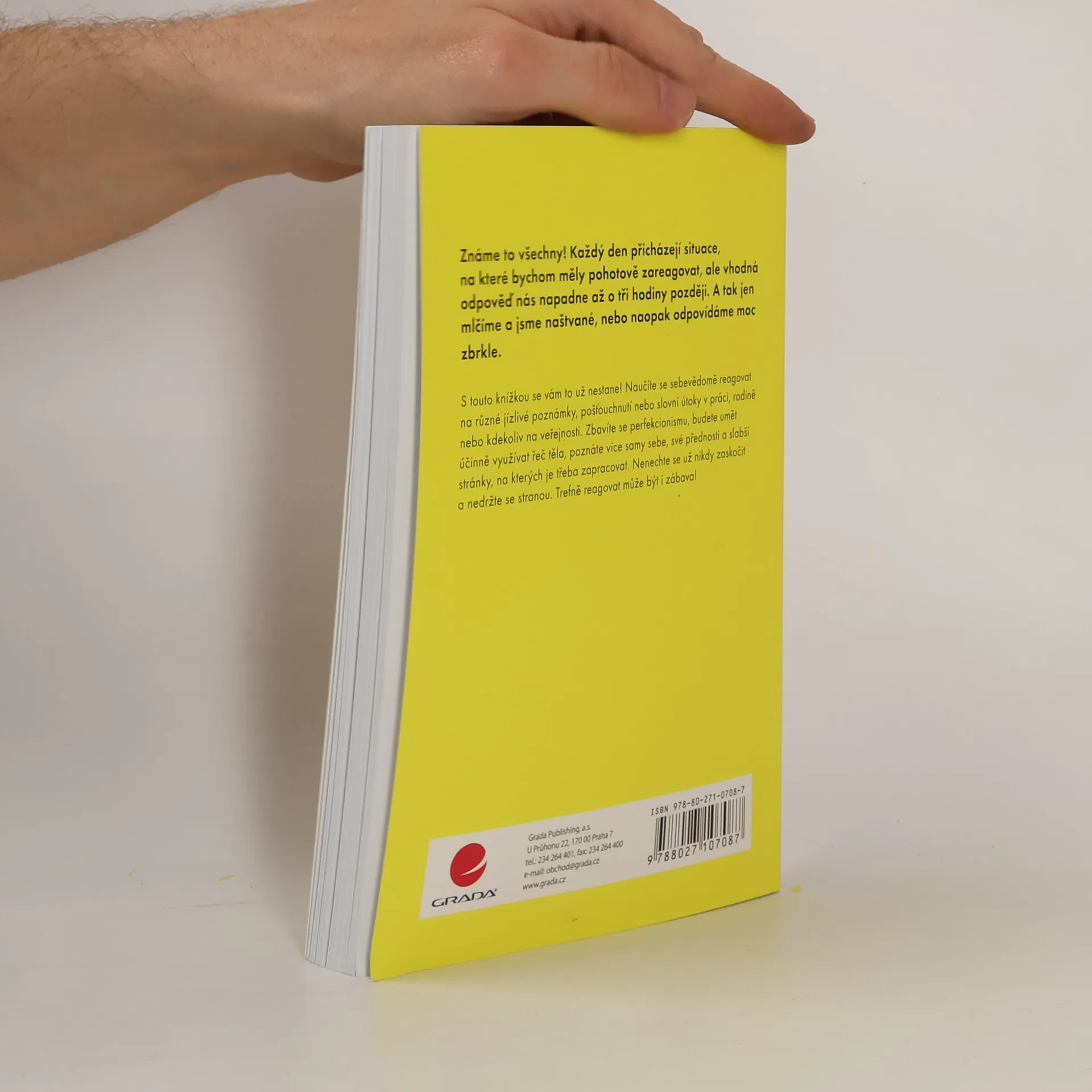 Známe to všechny! Každý den přicházejí situace, na které bychom měly pohotově zareagovat, ale vhodná odpověď nás napadne až o tři hodiny později. A tak jen mlčíme a jsme naštvané, nebo naopak odpovídáme moc zbrkle. S touto knížkou se vám to už nestane! Naučíte se sebevědomě reagovat na různé jízlivé poznámky, pošťouchnutí nebo slovní útoky v práci, rodině nebo kdekoliv na veřejnosti. Zbavíte se perfekcionismu, budete umět účinně využívat řeč těla, poznáte více samy sebe, své přednosti a slabší stránky, na kterých je třeba zapracovat. Nenechte se už nikdy zaskočit a nedržte se stranou. Trefně reagovat může být i zábava!
