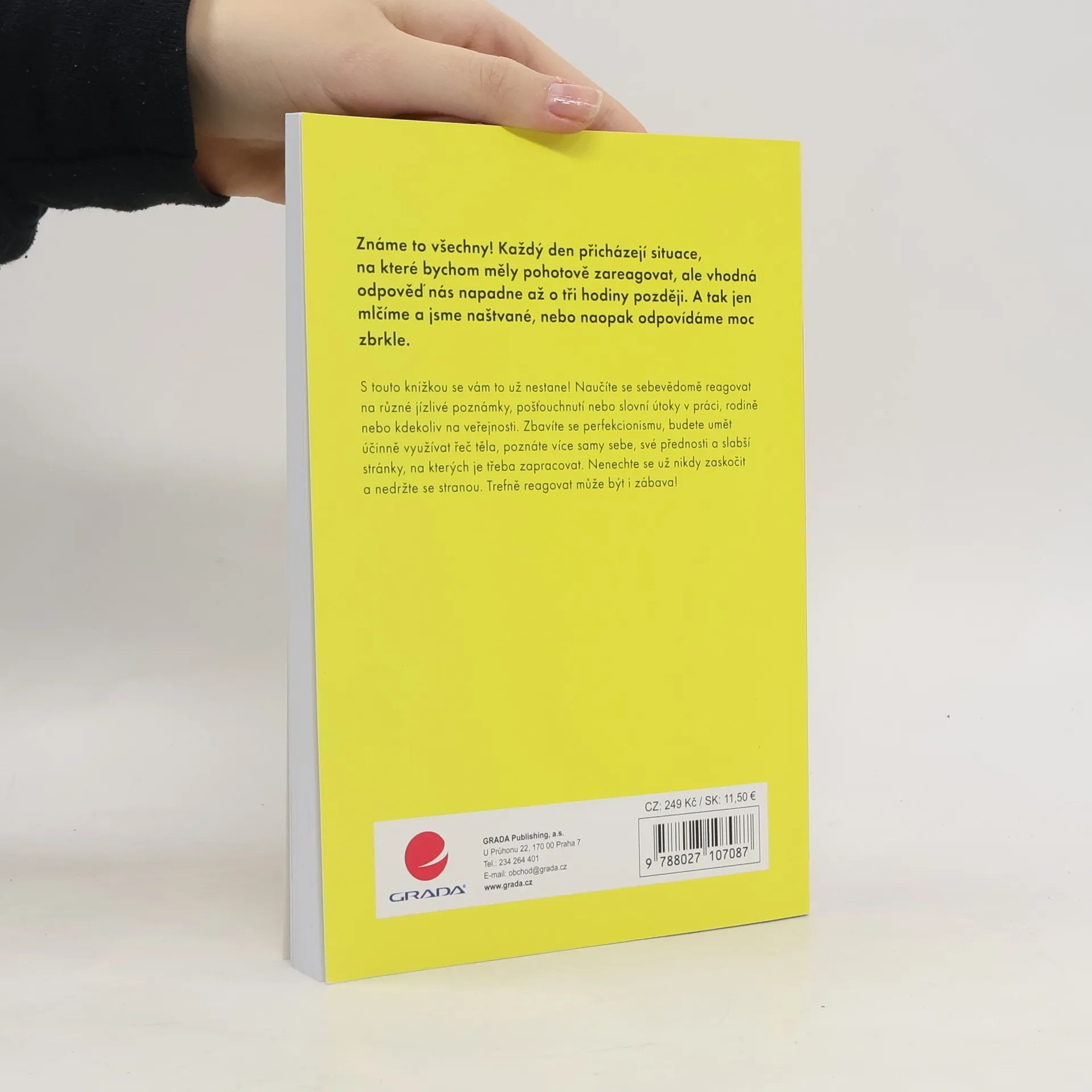 Známe to všechny! Každý den přicházejí situace, na které bychom měly pohotově zareagovat, ale vhodná odpověď nás napadne až o tři hodiny později. A tak jen mlčíme a jsme naštvané, nebo naopak odpovídáme moc zbrkle. S touto knížkou se vám to už nestane! Naučíte se sebevědomě reagovat na různé jízlivé poznámky, pošťouchnutí nebo slovní útoky v práci, rodině nebo kdekoliv na veřejnosti. Zbavíte se perfekcionismu, budete umět účinně využívat řeč těla, poznáte více samy sebe, své přednosti a slabší stránky, na kterých je třeba zapracovat. Nenechte se už nikdy zaskočit a nedržte se stranou. Trefně reagovat může být i zábava!