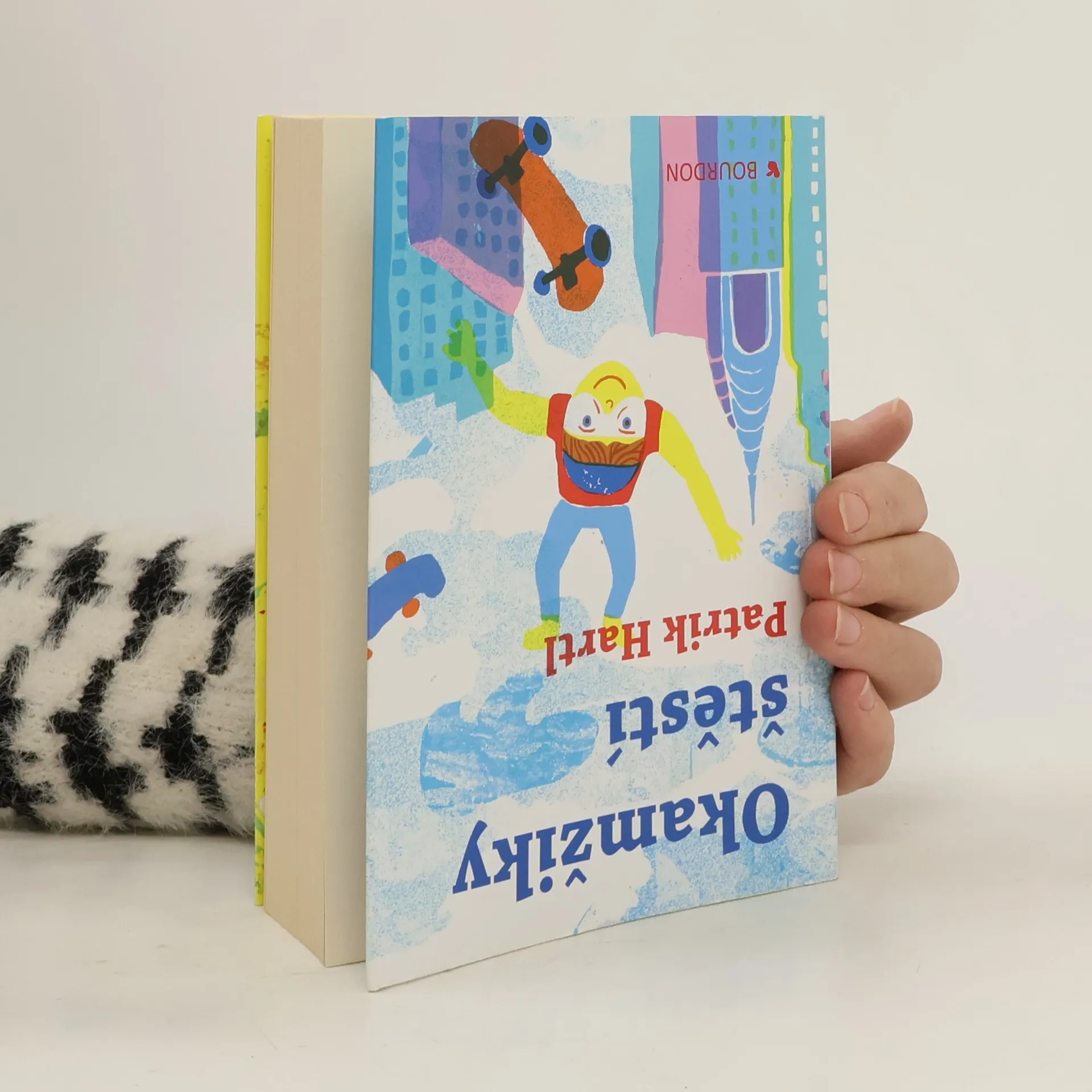 Nový dvojromán Patrika Hartla je možné začít číst z kterékoli strany. Vyberte si! Příběh sourozenců Veroniky a Jáchyma budete prožívat podle toho, který začátek zvolíte. Buďto do života skočíte jako Jáchym volným pádem z výšky čtyř tisíc metrů nebo se jako Veronika budete statečně prokousávat citovými nástrahami ode dne ke dni. Prožijete dva příběhy v jednom. Jako on a jako ona. Nebo v opačném pořadí, což bude překvapivě jiné, než byste očekávali... Můžete s nimi hledat štěstí, doufat, věřit, dělat chyby a napravovat je. Budete se o ně bát, fandit jim a zamilovávat se s nimi. A nejenom s nimi. Taky s Eliškou, Kubou, Dedém, Monikou, Viktorem, Amy, Kryštofem, Danou, Viki a Ondřejem. Protože štěstí a lásku hledá každý. I když to zní jako fráze.