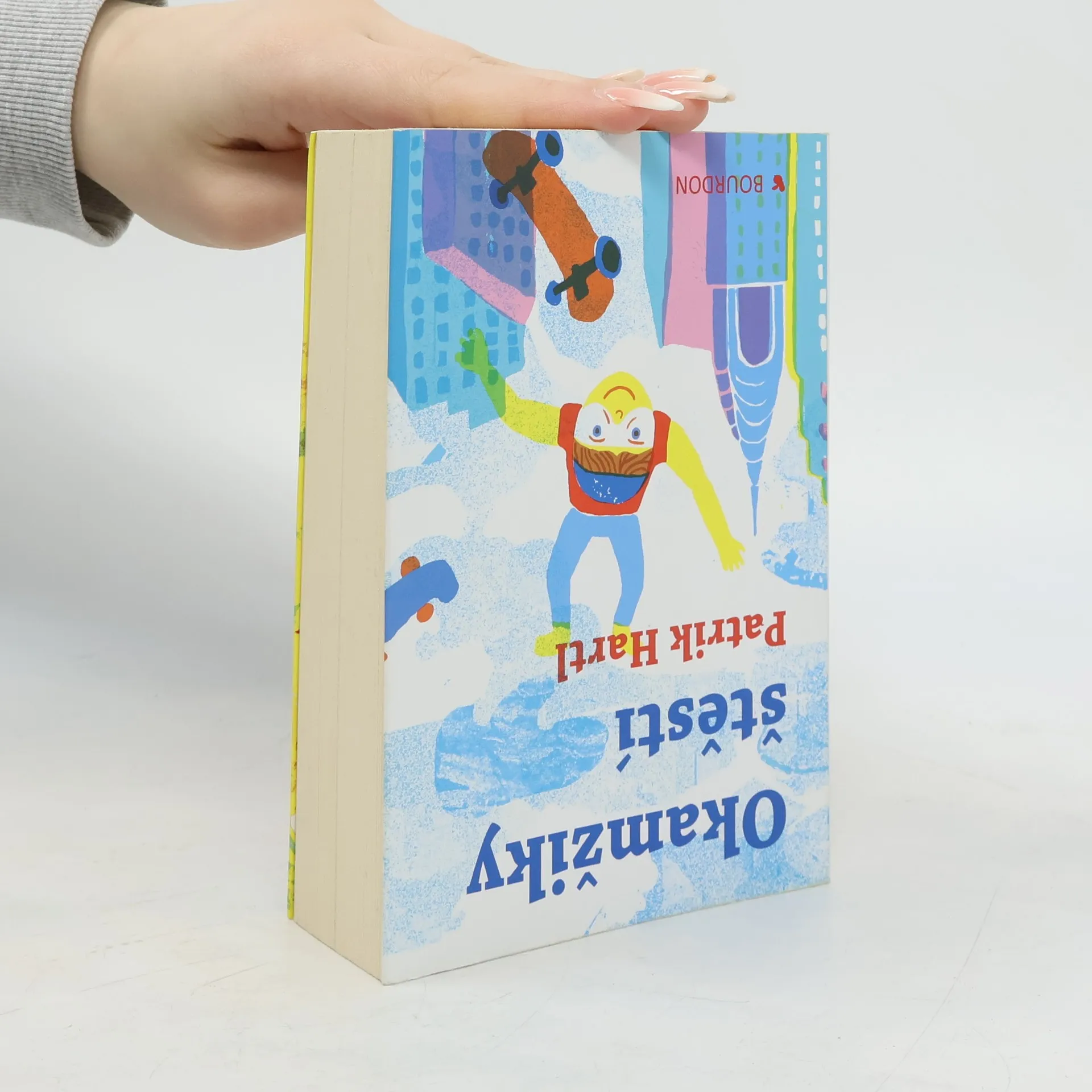 Nový dvojromán Patrika Hartla je možné začít číst z kterékoli strany. Vyberte si! Příběh sourozenců Veroniky a Jáchyma budete prožívat podle toho, který začátek zvolíte. Buďto do života skočíte jako Jáchym volným pádem z výšky čtyř tisíc metrů nebo se jako Veronika budete statečně prokousávat citovými nástrahami ode dne ke dni. Prožijete dva příběhy v jednom. Jako on a jako ona. Nebo v opačném pořadí, což bude překvapivě jiné, než byste očekávali... Můžete s nimi hledat štěstí, doufat, věřit, dělat chyby a napravovat je. Budete se o ně bát, fandit jim a zamilovávat se s nimi. A nejenom s nimi. Taky s Eliškou, Kubou, Dedém, Monikou, Viktorem, Amy, Kryštofem, Danou, Viki a Ondřejem. Protože štěstí a lásku hledá každý. I když to zní jako fráze.