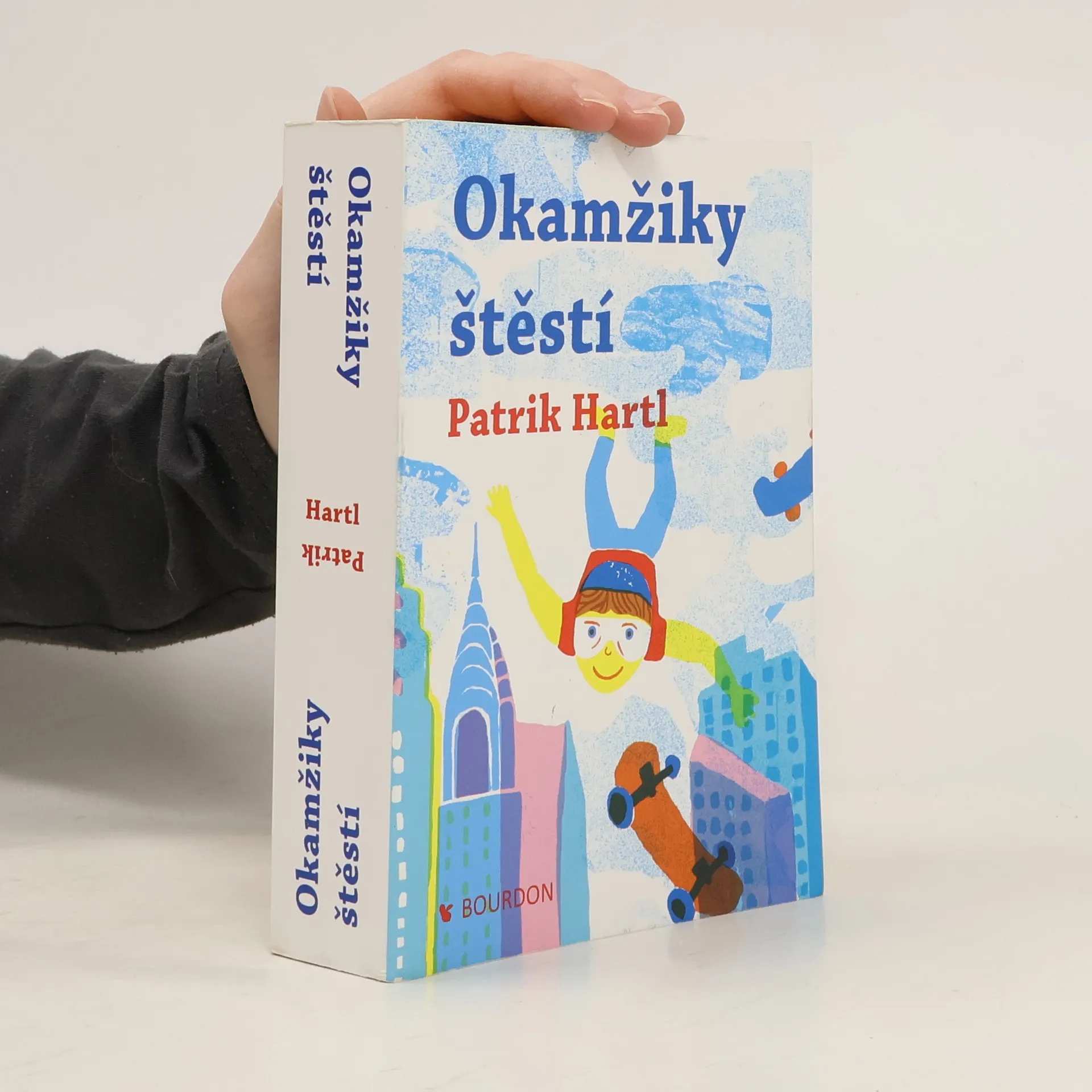 Nový dvojromán Patrika Hartla je možné začít číst z kterékoli strany. Vyberte si! Příběh sourozenců Veroniky a Jáchyma budete prožívat podle toho, který začátek zvolíte. Buďto do života skočíte jako Jáchym volným pádem z výšky čtyř tisíc metrů nebo se jako Veronika budete statečně prokousávat citovými nástrahami ode dne ke dni. Prožijete dva příběhy v jednom. Jako on a jako ona. Nebo v opačném pořadí, což bude překvapivě jiné, než byste očekávali... Můžete s nimi hledat štěstí, doufat, věřit, dělat chyby a napravovat je. Budete se o ně bát, fandit jim a zamilovávat se s nimi. A nejenom s nimi. Taky s Eliškou, Kubou, Dedém, Monikou, Viktorem, Amy, Kryštofem, Danou, Viki a Ondřejem. Protože štěstí a lásku hledá každý. I když to zní jako fráze.