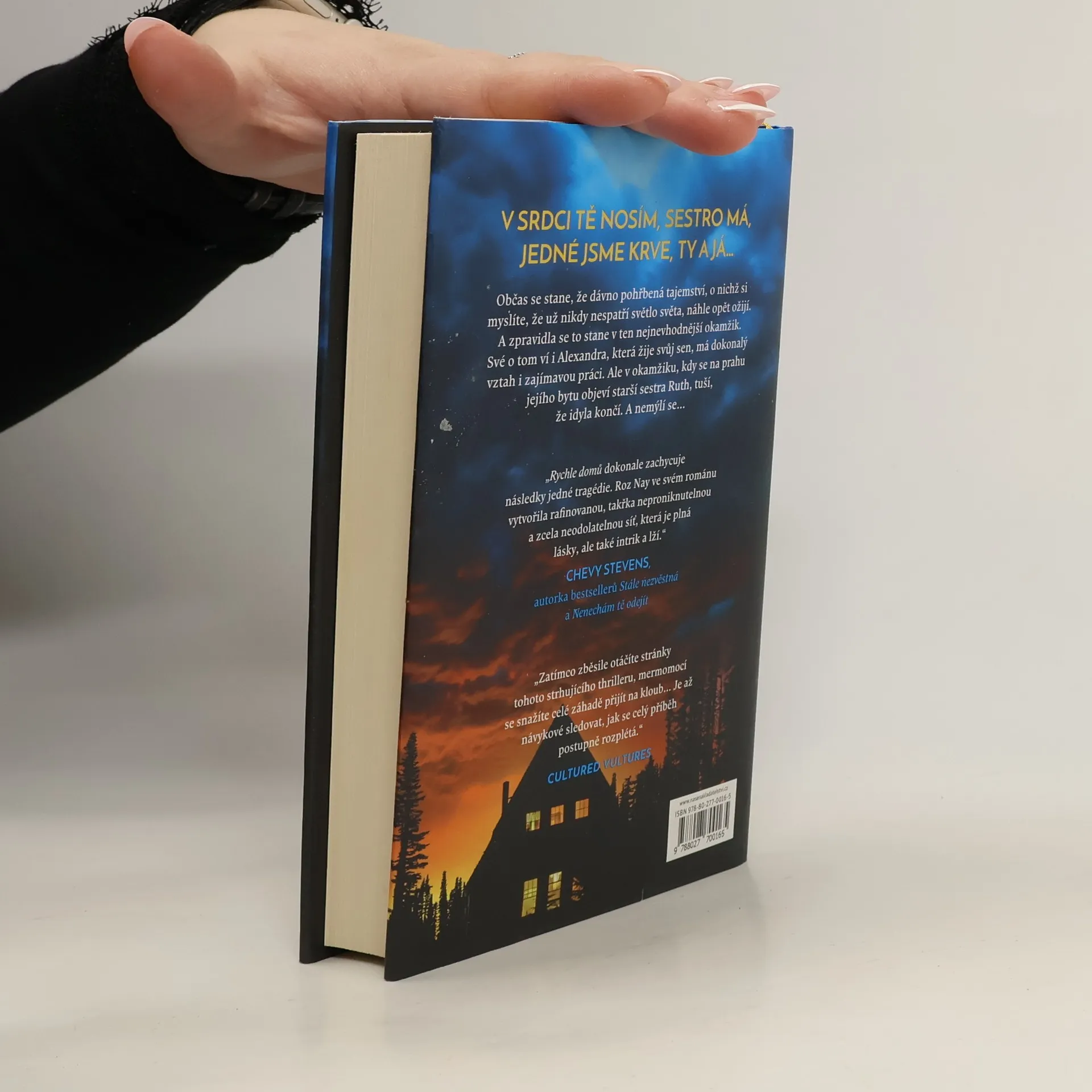 Úspěšná autorka knihy Naše malé tajemství přichází s napínavým thrillerem. V hlavní roli příběhu se ocitají dvě sestry, jejichž životní cesty se rozdělily. Obě však uchovávají hluboká a temná tajemství, která se zoufale snaží udržet skrytá pod příkrovem let. V srdci tě nosím, sestro má jedné jsme krve, ty a já Alexandra Van Nessová má záviděníhodný život. Bydlí v odlehlém idylickém městečku na úpatí Skalnatých hor, pohodlné podkrovní apartmá sdílí se svým šarmantním přítelem Chasem. Práce v oboru sociálně právní ochrany dětí ji naplňuje a se zápalem pomáhá těm nejmenším, kteří jinde nenaleznou zastání. Jednoho dne se však na prahu jejího domu objeví dávno ztracená sestra Ruth a Alexandřin dokonalý život se obrátí vzhůru nohama. V čase dospívání bývala Ruth černá ovce rodiny, která obvykle zatáhla Alex do pořádných nepříjemností. Ani tentokrát tomu není jinak. Alex jí přesto pomůže, pod jednou podmínku: „Nikdy, za žádných okolností, nebudeme mluvit o minulosti.“ Poté však na jedno místní děcko dopadne neštěstí a obě sestry se musí postavit tváří v tvář tajemství, o němž přísahaly, že zůstane navěky ukryté v historii. Rychle domů je strhující příběh o tísnivě klaustrofobickém vztahu dvou sester, který čtenáři pokládá otázku: jakou hranici byste nepřekročili ani pro své nejbližší?