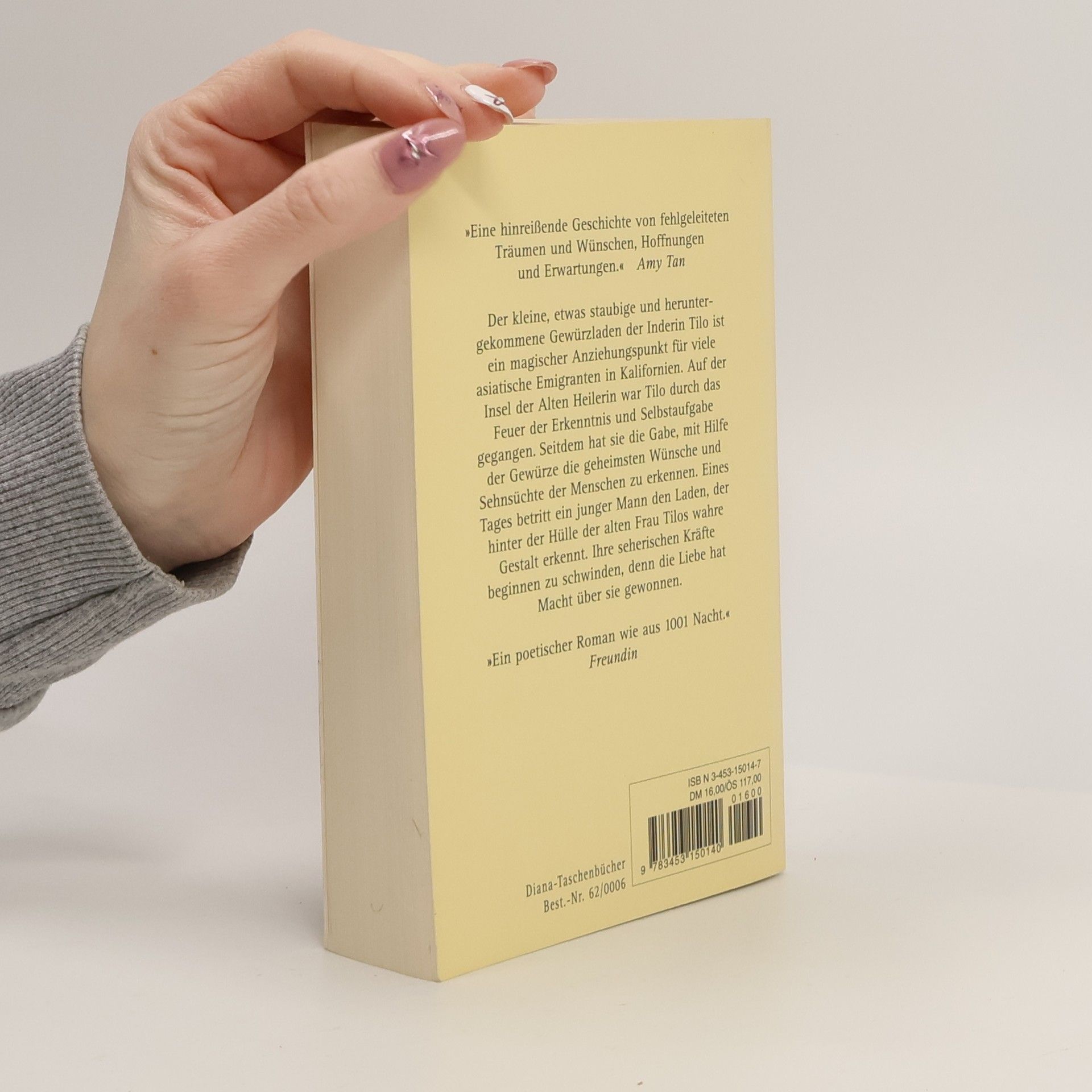 In einem kleinen Gewürzladen in Oakland, Kalifornien, betreibt die Seherin Tilo ein Geschäft, das indischen Immigranten die Verbindung zu ihrer Heimat ermöglicht. Sie kennt die richtigen Rezepte und Zutaten, denn die Gewürze besitzen heilende Kräfte, die sie zu beherrschen weiß, solange sie sich nicht mit der Außenwelt einlässt. Doch als sie sich in einen jungen Mann verliebt, überschreitet sie ihre Grenzen. Raven erkennt, dass hinter der Fassade der hilfsbereiten alten Inderin ein anderer Mensch steckt. Für Tilo bedeutet die Liebe jedoch den Verlust ihrer Reinheit und ihrer seherischen Fähigkeiten. Die Geschichte stellt die phantastische Welt der magischen Gewürze der brutalen Realität Amerikas gegenüber. Die in Indien geborene Chitra Banerjee Divakaruni wagt in ihrem ersten Roman ein spannendes Unterfangen, das oft reizvoll ist. Manchmal jedoch, wenn die beiden Welten sich vermischen, ist die Zeichnung der Protagonistin nicht ganz konsequent. Die Erzählung ist mehr als nur eine Liebesgeschichte oder ein poetischer Roman; sie vermittelt auch ein eindrucksvolles Bild indischer Immigranten in den USA, ihrer Kultur sowie ihrer Probleme und Konflikte, dargestellt durch die Schicksale von Tilos Kunden.