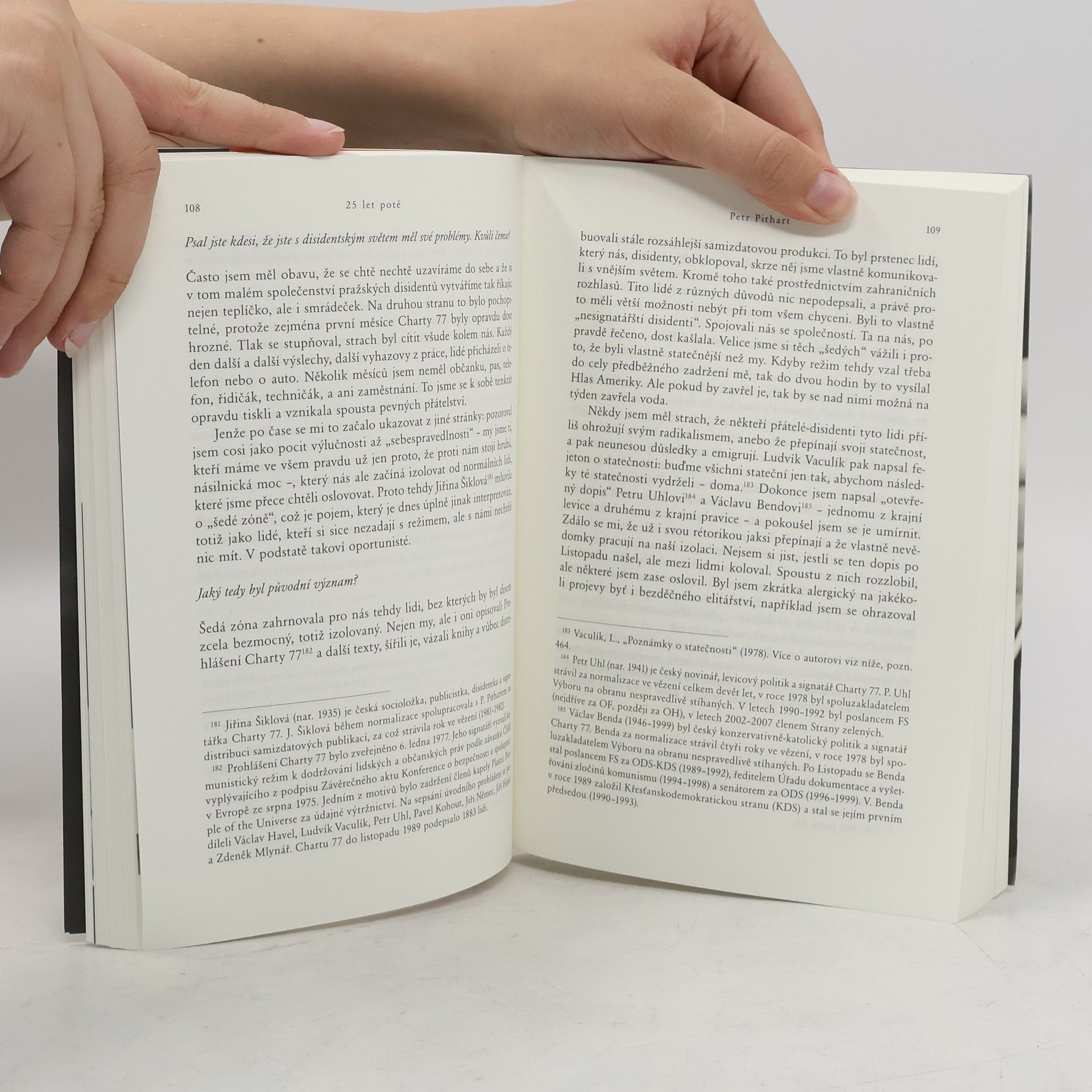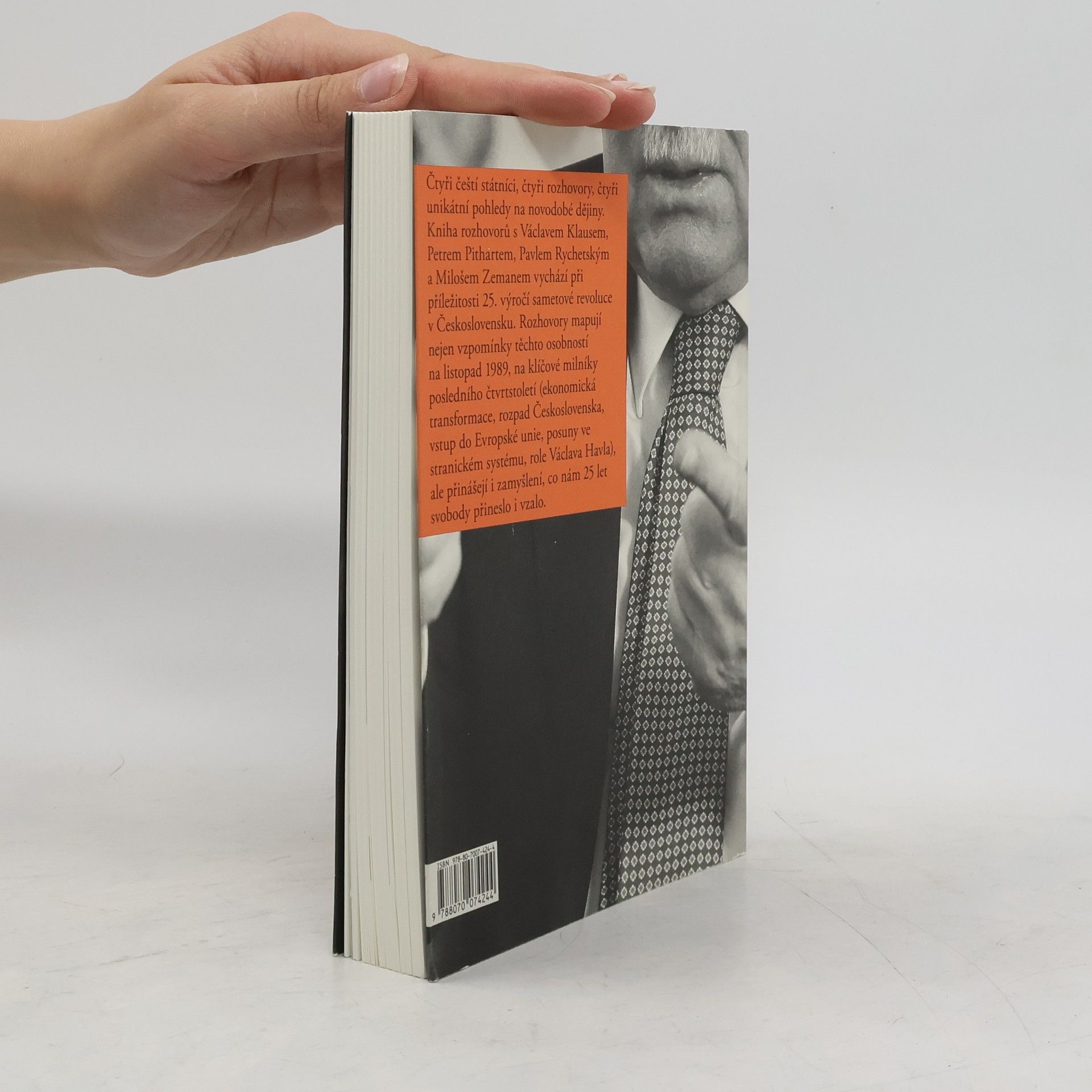 Čtyři čeští státníci, čtyři rozhovory, čtyři unikátní pohledy na novodobé dějiny. Kniha rozhovorů s Václavem Klausem, Petrem Pithartem, Pavlem Rychetským a Milošem Zemanem vychází při příležitosti 25. výročí sametové revoluce v Československu. Rozhovory mapují nejen vzpomínky těchto osobností na listopad 1989 na klíčové milníky posledního čtvrtstoletí (ekonomická transformace, rozpad Československa, vstup do Evropské unie, posuny ve stranickém systému, role Václava Havla), ale přinášejí i zamyšlení, co nám 25 let svobody přineslo i vzalo.