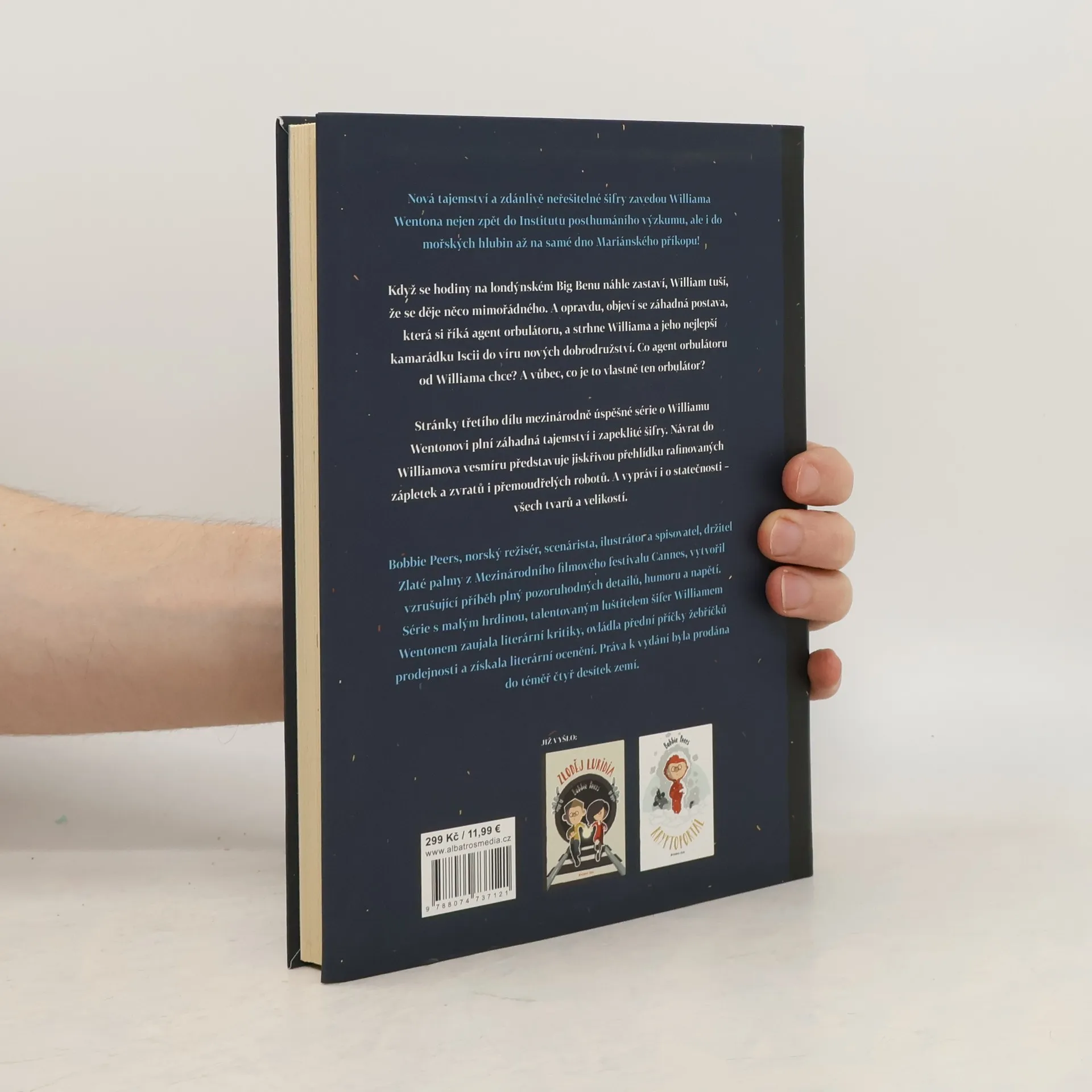 Nová tajemství a zdánlivě neřešitelné šifry zavedou Williama Wentona nejen zpět do Institutu posthumáního výzkumu, ale i do mořských hlubin až na samé dno Mariánského příkopu! Když se hodiny na londýnském Big Benu náhle zastaví, William tuší, že se děje něco mimořádného. A opravdu, objeví se záhadná postava, která si říká agent orbulátoru, a strhne Williama a jeho nejlepší kamarádku Iscii do víru nových dobrodružství. Co agent orbulátoru od Williama chce? A vůbec, co je to vlastně ten orbulátor? Stránky třetího dílu mezinárodně úspěšné série o Williamu Wentonovi plní záhadná tajemství i zapeklité šifry. Návrat do Williamova vesmíru představuje jiskřivou přehlídku rafinovaných zápletek a zvratů i přemoudřelých robotů. A vypráví i o statečnosti – všech tvarů a velikostí.