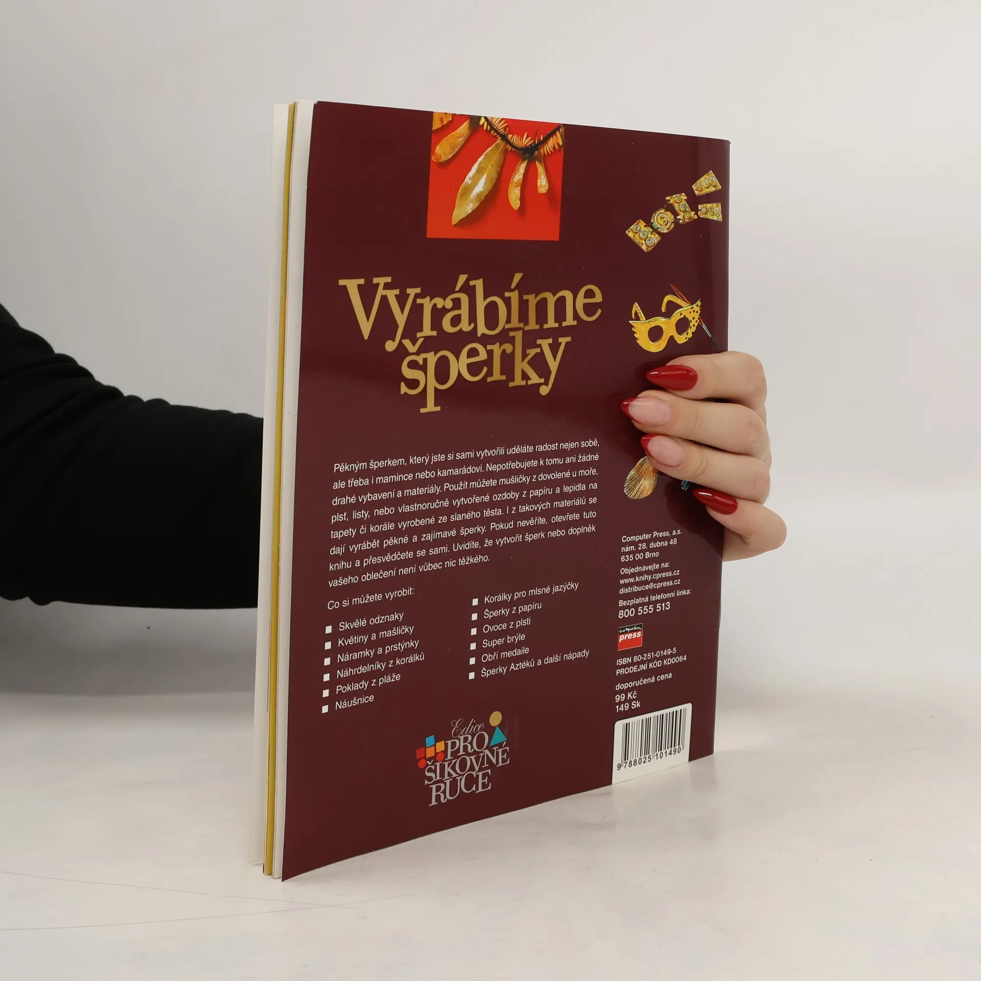 Brožura přináší nápady na šperky z různých materiálů a za použití různých technik. Určena především starším dětem. Osmnáct nápadů na šperky a módní doplňky, např. ze slaného těsta, mušlí, papíru, plsti, korálků atd., vcelku nenáročných na výrobu i materiál. V úvodu jsou uvedeny pomůcky, materiály a základní techniky. Publikace je bohatě doplněna ilustračními obrázky a fotografiemi. Knížka neobsahuje žádnou přílohu s šablonami, podle nákresů by se však šperky měly zhotovit relativně snadno.