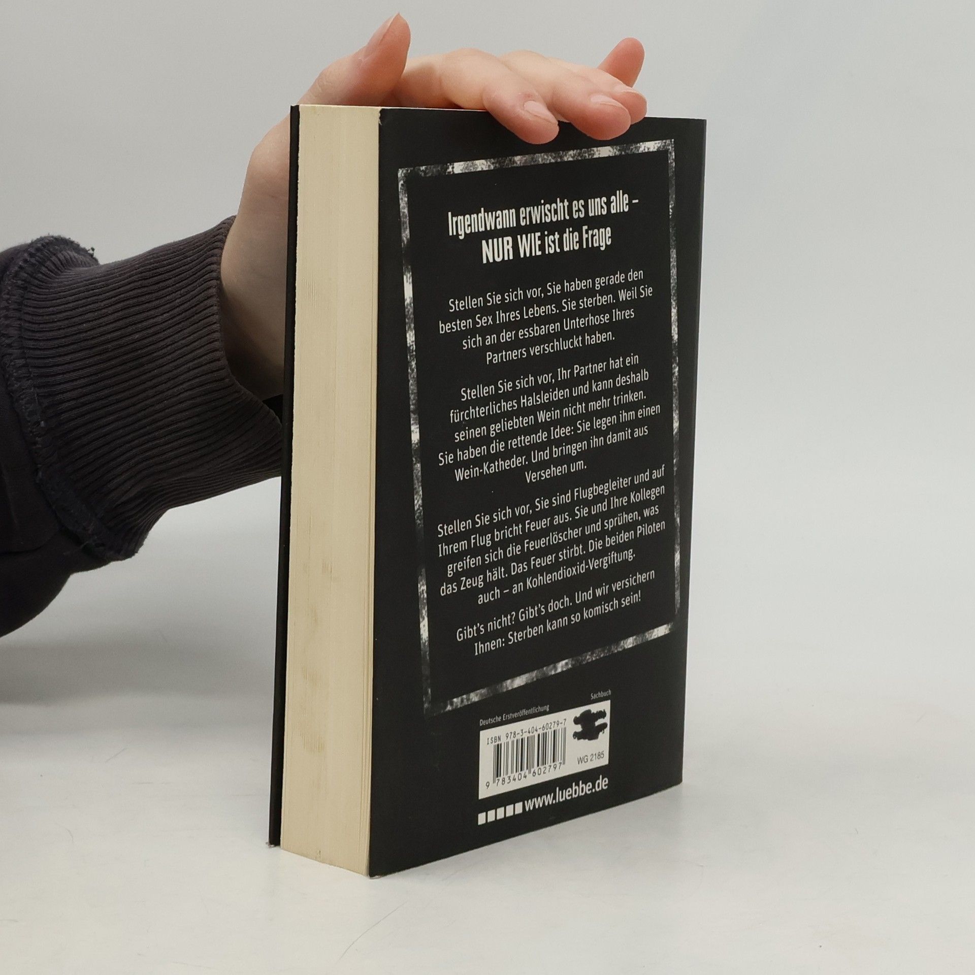 Stellen Sie sich vor, Sie haben gerade den besten Sex Ihres Lebens. Sie sterben. Weil Sie sich an der essbaren Unterhose Ihres Partners verschluckt haben.Stellen Sie sich vor, Ihr Partner hat ein fürchterliches Halsleiden und kann deshalb seinen geliebten Wein nicht mehr trinken. Sie haben die rettende Idee: Sie legen ihm einen Wein-Katheder. Und bringen ihn damit aus Versehen um.Stellen Sie sich vor, Sie sind Flugbegleiter und auf Ihrem Flug bricht Feuer aus. Sie und Ihre Kollegen greifen sich die Feuerlöscher und sprühen, was das Zeug hält. Das Feuer stirbt. Die beiden Piloten auch - an Kohlendioxid-Vergiftung. Gibt's nicht? Gibt's doch. Und wir versichern Ihnen: Sterben kann so komisch sein!