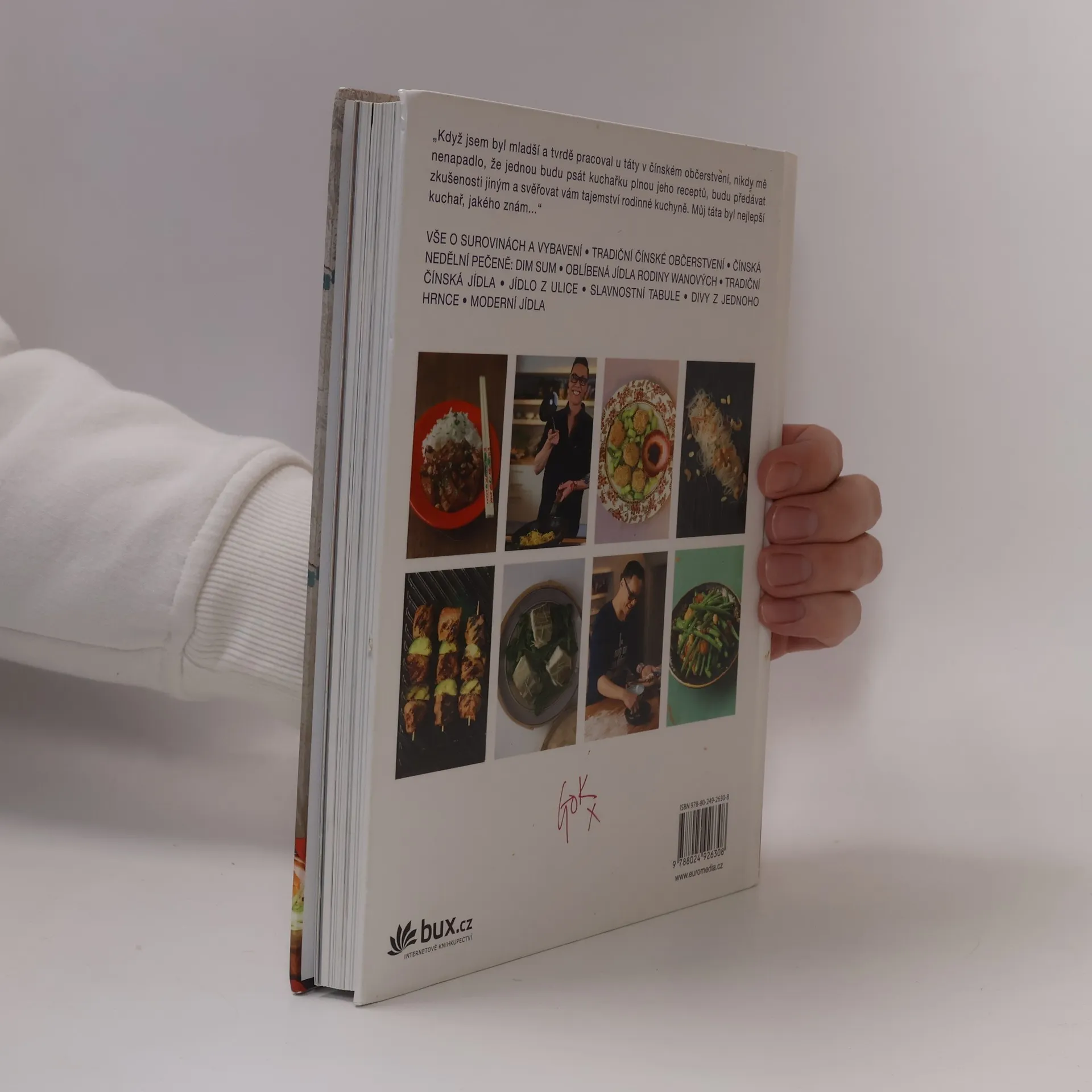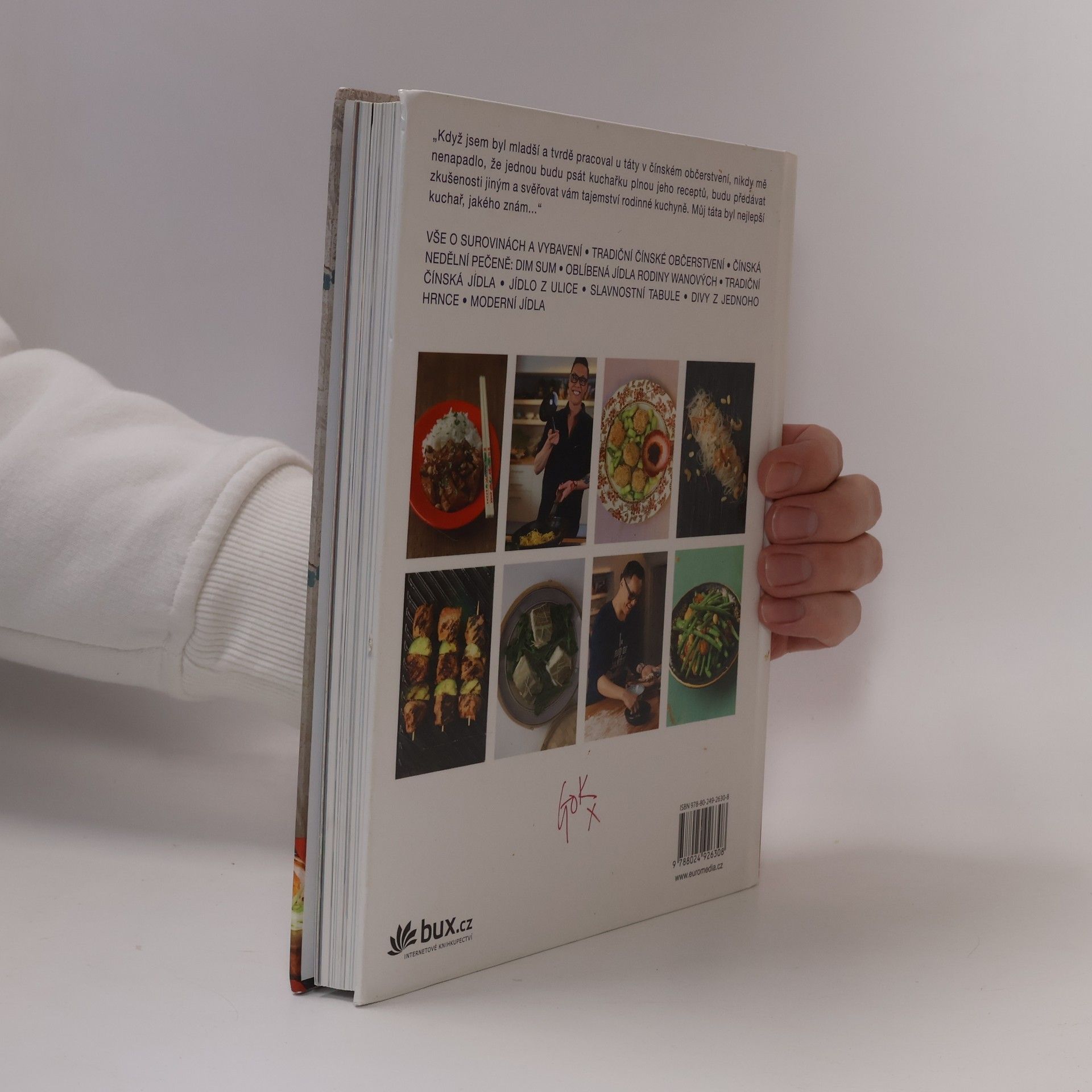Čínská kuchyně, s níž se setkáváme v Evropě, je přizpůsobena západním chutím. Jídla, která se naučil Gok od svého otce, jsou jednoduchá, rychlá, zdravá a úplně jiná. Kniha obsahuje „tajné“ rodinné recepty a pokrmy, s nimiž se Gok setkal během putování po Číně, Hongkongu a Singapuru. Budete potřebovat snad jen wok a naběračku. Bez ohledu na to, zda narychlo připravujete restovaný pokrm či pomalu dusíte maso, sáhnete po česneku, zázvoru a jarní cibulce. Vyzkoušejte si tradiční čínské pokrmy, něco na slavnostní tabuli, divy z jednoho hrnce i jak chutná „street food“, jídlo z ulice.