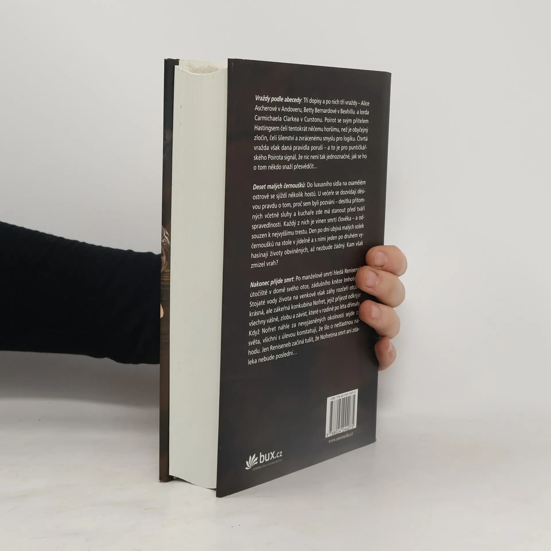 Trojici výjimečných detektivek Agathy Christie tentokrát spojuje motiv několikanásobné vraždy. Po stopách sériového zločince se nejprve vydá slavný belgický detektiv Hercule Poirot, a to v románu z roku 1936 nazvaném Vraždy podle abecedy. V neúprosném rytmu popěvku Deset malých černoušků se vraždí i v jednom z nejslavnějších, nejděsivějších a nejdůmyslněji propracovaných děl detektivní literatury, jež vyšlo v roce 1939. A do třetice příběh o násilných úmrtích, která se odehrála před čtyřmi tisíci lety ve starém Egyptě – tato jediná autorčina detektivka umístěná dějově do pradávné minulosti nese příznačný název Nakonec přijde smrt…