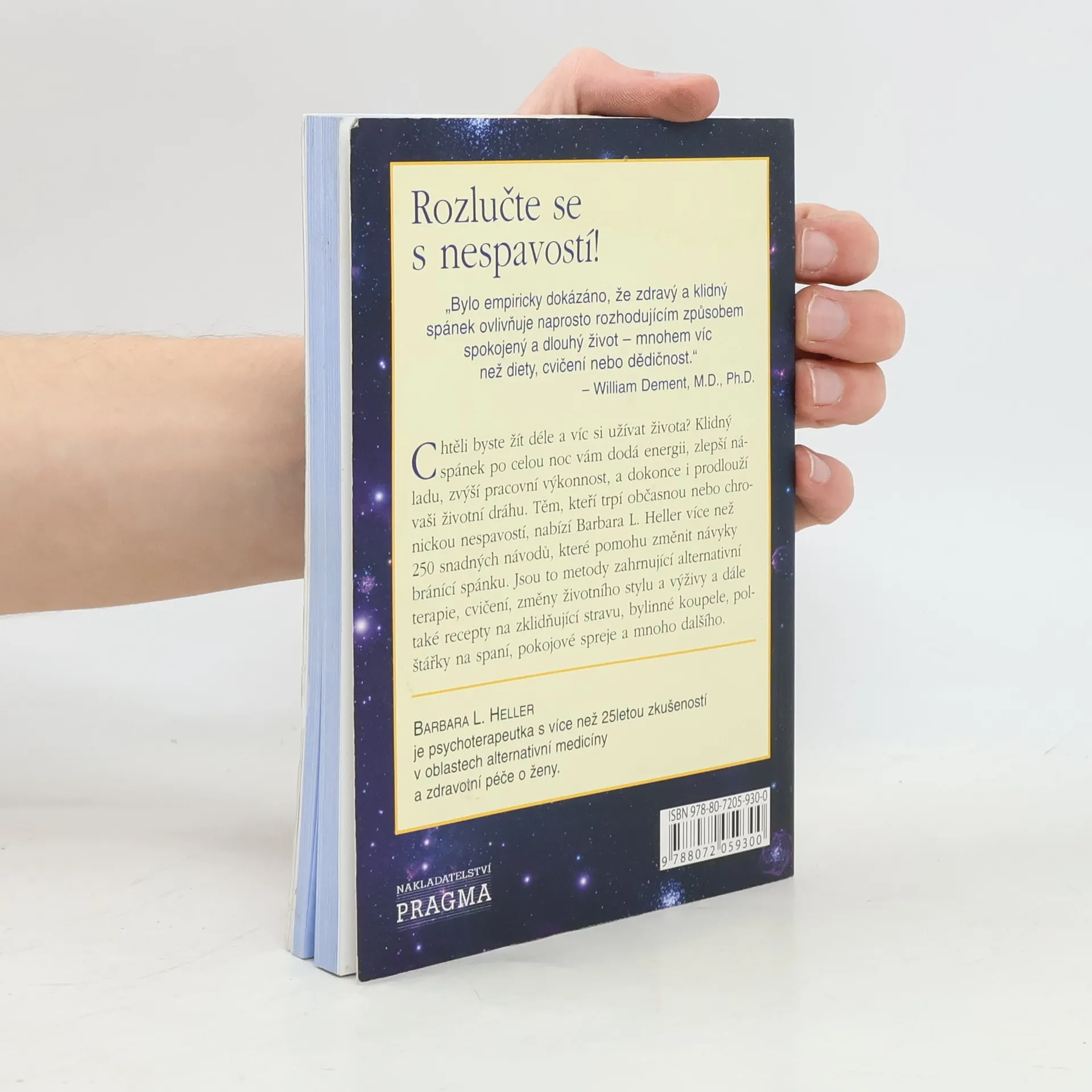 Chtěli byste žít déle a víc si užívat života? Klidný spánek po celou noc vám dodá energii, zlepší náladu, zvýší pracovní výkonnost, a dokonce i prodlouží vaši životní dráhu. Těm, kteří trpí občasnou nebo chronickou nespavostí, nabízí Barbara L. Heller více než 250 snadných návodů, které pomohou změnit návyky bránící spánku. Jsou to metody zahrnující alternativní terapie, cvičení, změny životního stylu a výživy a dále také recepty na zklidňující stravu, bylinné koupele, polštářky na spaní, pokojové spreje a mnoho dalšího.
