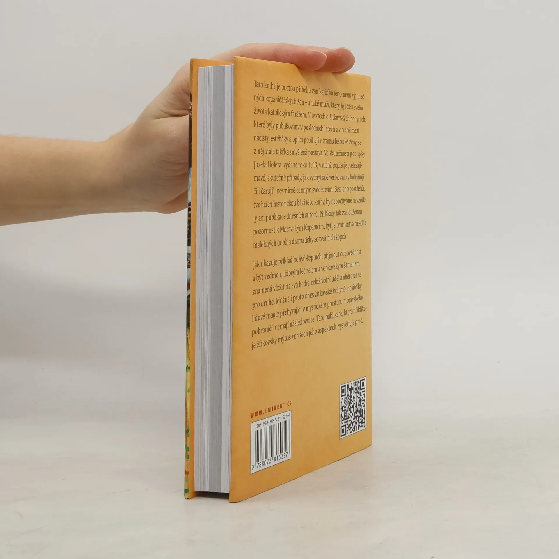 Tato kniha je poctou příběhu zanikajícího fenoménu výjimečných kopaničářských žen a také muži, který byl část svého života katolickým farářem. V textech o žítkovských bohyních, které byly publikovány v posledních letech a v nichž mezi nacisty, estébáky a opilci pobíhají v transu lesbické ženy, se z něj stala takřka smyšlená postava. Ve skutečnosti jsou spisy Josefa Hofera, vydané roku 1913, v nichž popisuje „velezajímavé skutečné případy, jak vychytralé venkovanky bohyňují čili čarují“ nesmírně cenným svědectvím. Bez jeho postřehů, tvořících historickou bázi této knihy, by bezpochyby nevznikly ani publikace dnešních autorů, které ke kraji přilákaly zaslouženou pozornost. Moravské Kopanice tvoří několik malebných údolí a dramaticky se tvářících kopců. Jak ukazuje příklad bohyň - šeptuch, přijmout odpovědnost a být vědmou, lidovým léčitelem a venkovským šamanem, znamená vložit na svá bedra celoživotní úděl a obětovat se pro druhé. Proto dnes žítkovské bohyně, nositelky lidové magie, přebývající v mystického prostoru moravského pohraničí, nemají následovnice. Tato publikace, která přibližuje žítkovský mýtus ve všech jeho aspektech, vysvětluje proč.