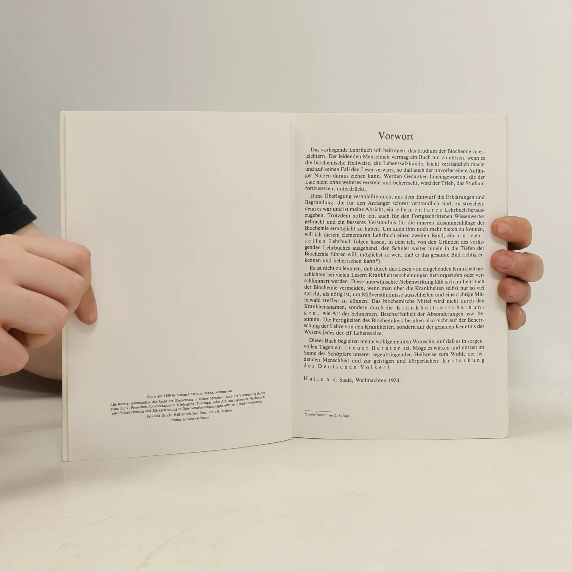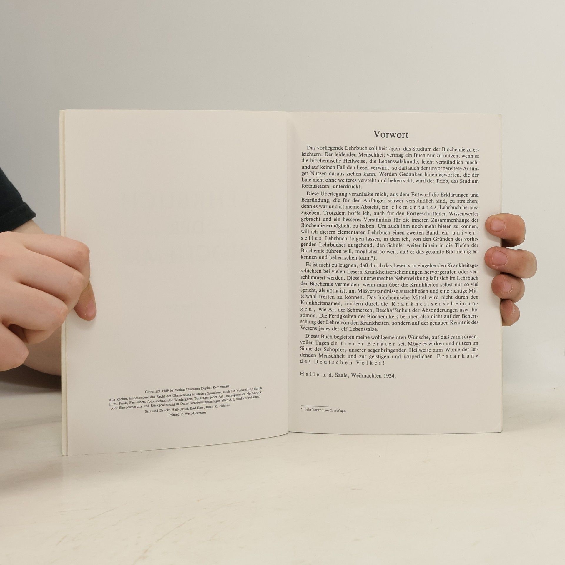 Eine leicht verständliche Einführung in die biochemische Heilweise Dr. med. Schüßlers, genannt Schüßler-Salze. Der große Wert dieses Buches liegt in der einfachen, verständlichen Beschreibung der Wirkungsweise aller biochemischen Mittel. Das alphabetische Krankheitsregister nimmt einen weiten Raum ein und ist von großer Bedeutung für alle, welche die Antlitzdiagnostik noch nicht beherrschen. Außerdem enthält das Buch einen Anhang über Gesundheitspflege und Lebensreform.