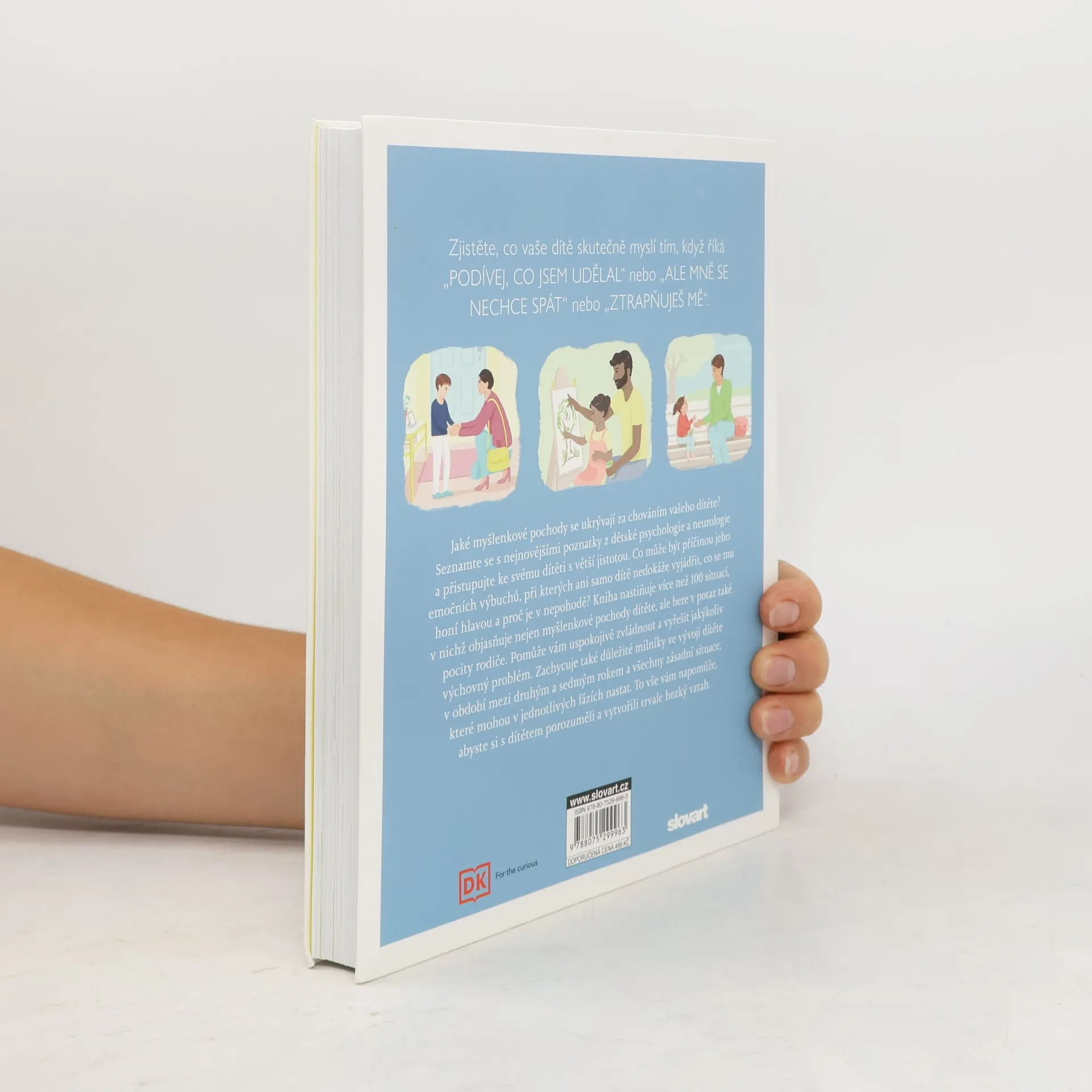 Praktická dětská psychologie pro moderní rodiče. Jaké myšlenkové pochody se ukrývají za chováním vašeho dítěte? Seznamte se s nejnovějšími poznatky z dětské psychologie a neurologie a přistupujte ke svému dítěti s nově nabytou jistotou. Zjistěte, co vaše dítě skutečně myslí tím, když říká „Podívej, co jsem udělal“ nebo „Ale mně se nechce spát“ nebo „Ztrapňuješ mě“, a co může být příčinou výbuchů, při kterých ani samo dítě nedokáže vyjádřit, co se mu honí hlavou. Kniha nastiňuje více než 100 situací a objasňuje nejenom myšlenkové pochody dítěte, ale bere v potaz také pocity rodiče. Díky tomu zvládnete uspokojivě vyřešit jakýkoliv výchovný problém. Také jsou zde zachyceny zásadní milníky ve vývoji dítěte v období mezi druhým a sedmým rokem a všechny zásadní situace, které mohou nastat. To vše vám má pomoci, abyste si s dítětem vytvořili trvale hezký vztah.