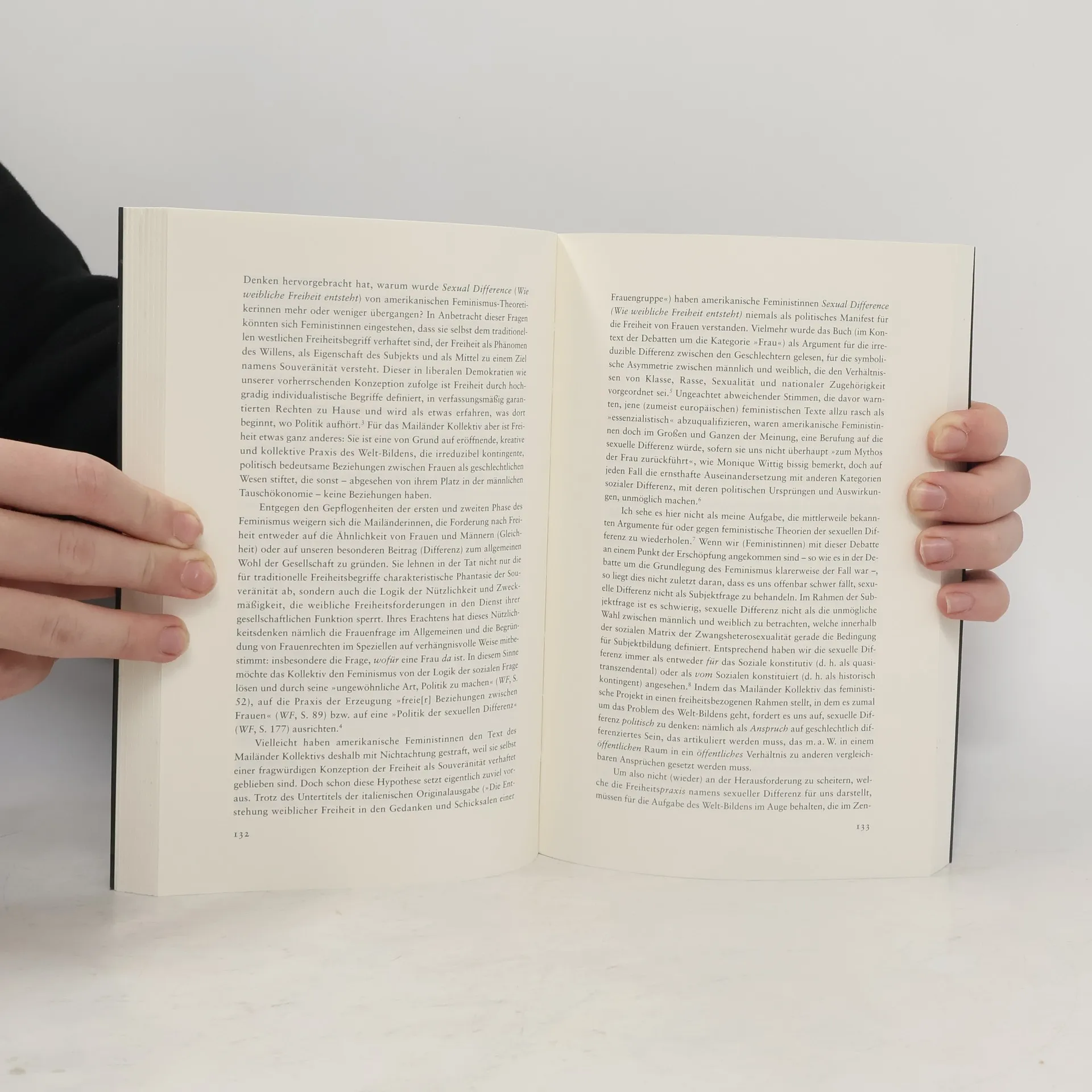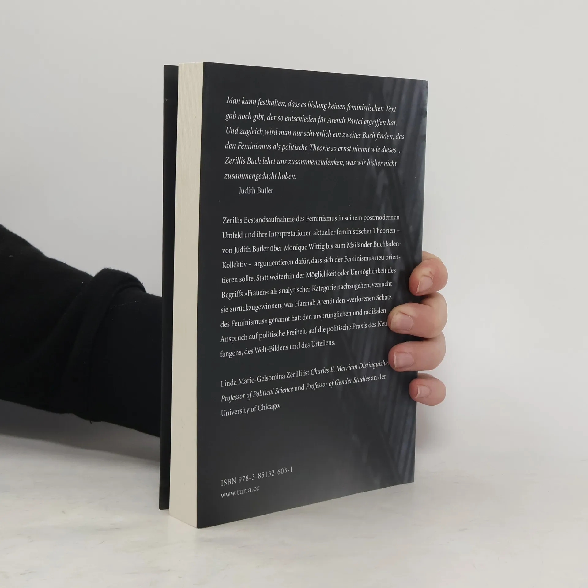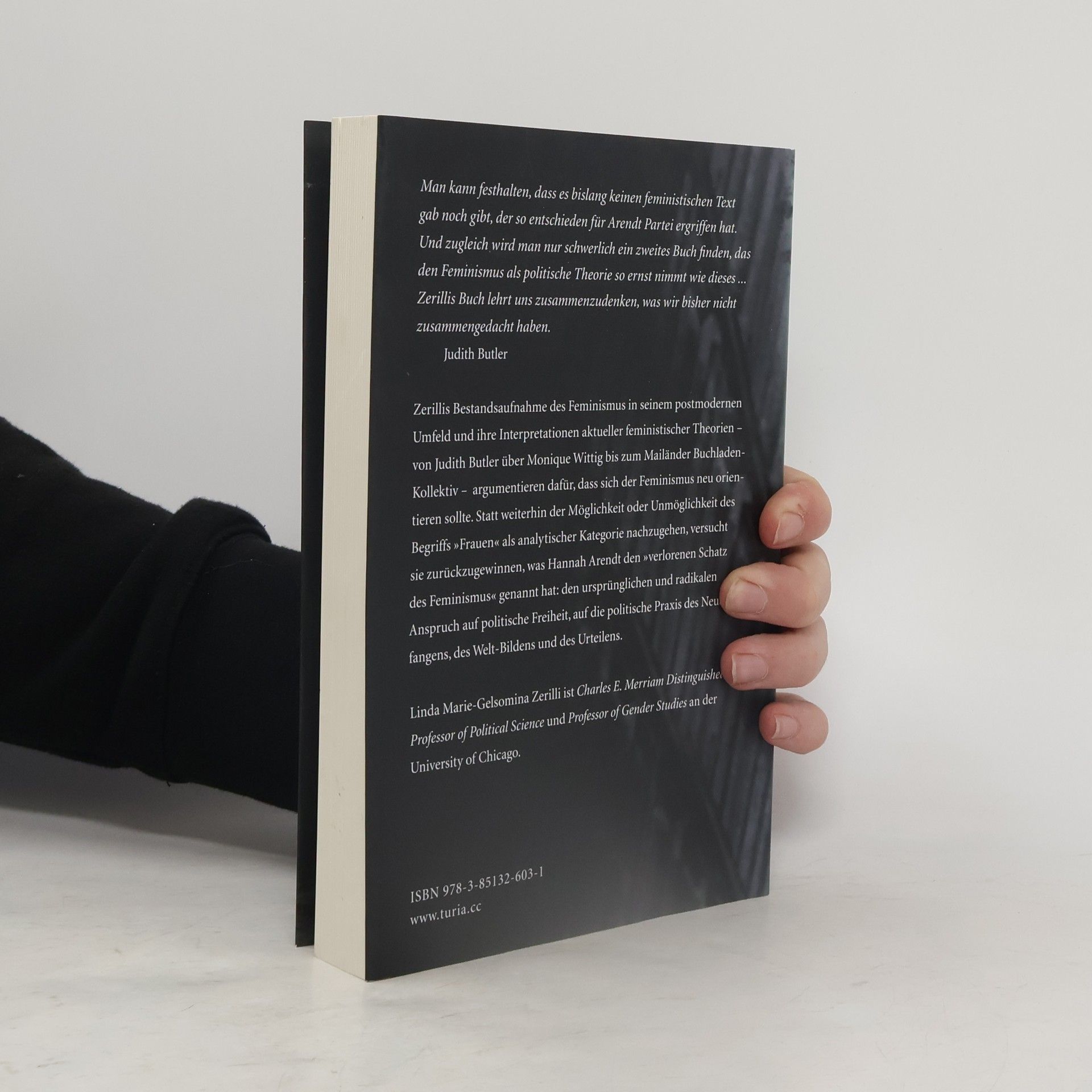 Zerillis Bestandsaufnahme des Feminismus in seinem postmodernen Umfeld und ihre kritische Interpretation aktueller feministischer Theorien bringen sie zu dem Plädoyer für eine Neuorientierung des Feminismus: Statt weiterhin der Möglichkeit oder Unmöglichkeit des Begriffs 'Frauen' als analytischer Kategorie nachzugehen, versucht sie zurückzugewinnen, was Hannah Arendt den 'verlorenen Schatz des Feminismus' genannt hat: den ursprünglichen und radikalen Anspruch auf politische Freiheit, auf die politische Praxis des Neuanfangens, des Welt-Bildens und des Urteilens.