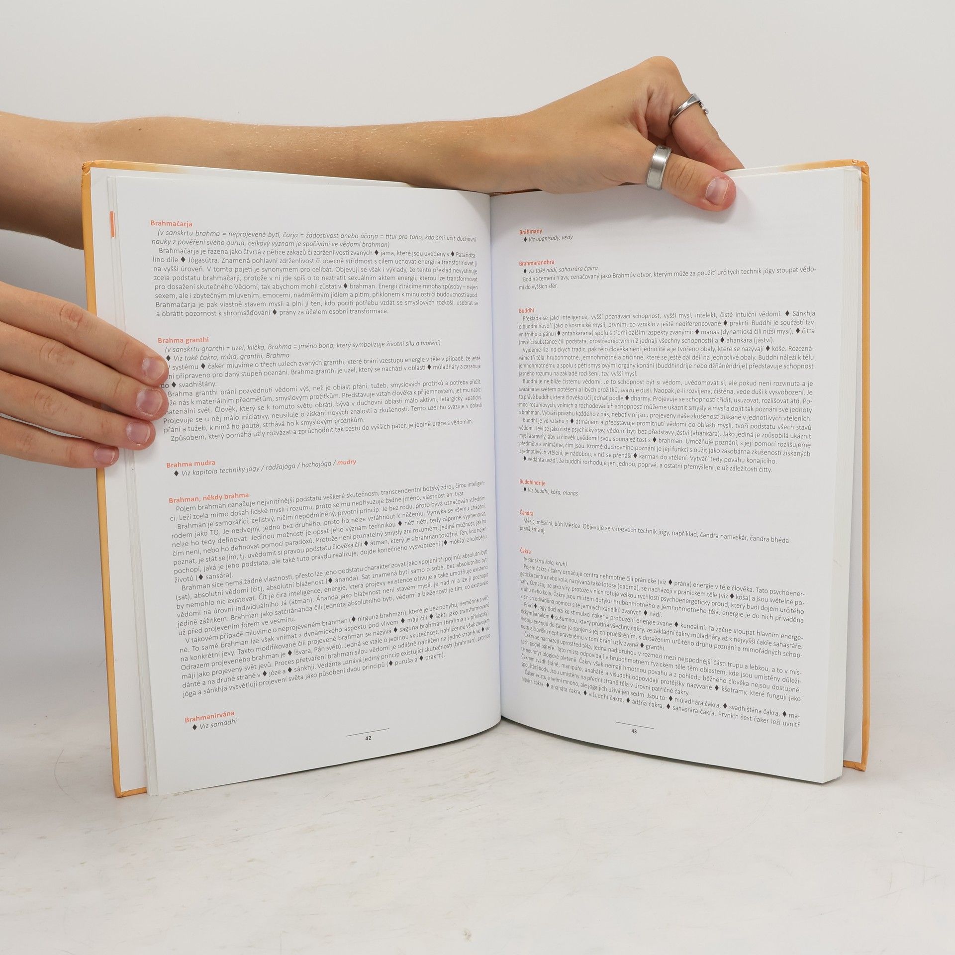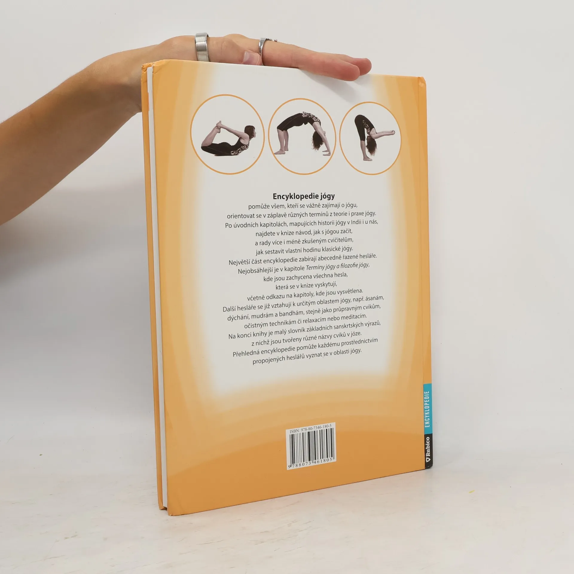 Kniha v úvodních kapitolách seznamuje se základy teorie i praxe jógy, historií a praktickými návody, jak s jógou začít. Hlavní část knihy tvoří abecední heslář vysvětlující teoretické pojmy, propojený odkazy s dalšími souvisejícími hesly. Vlastní techniky jógy mají samostatné hesláře věnované cvikům (ásany), dýchání (pránájáma), očistě (šat karmas) či jiným technikám (mudry, bandhy). Kniha je doplněna originálními fotografiemi a ilustracemi.