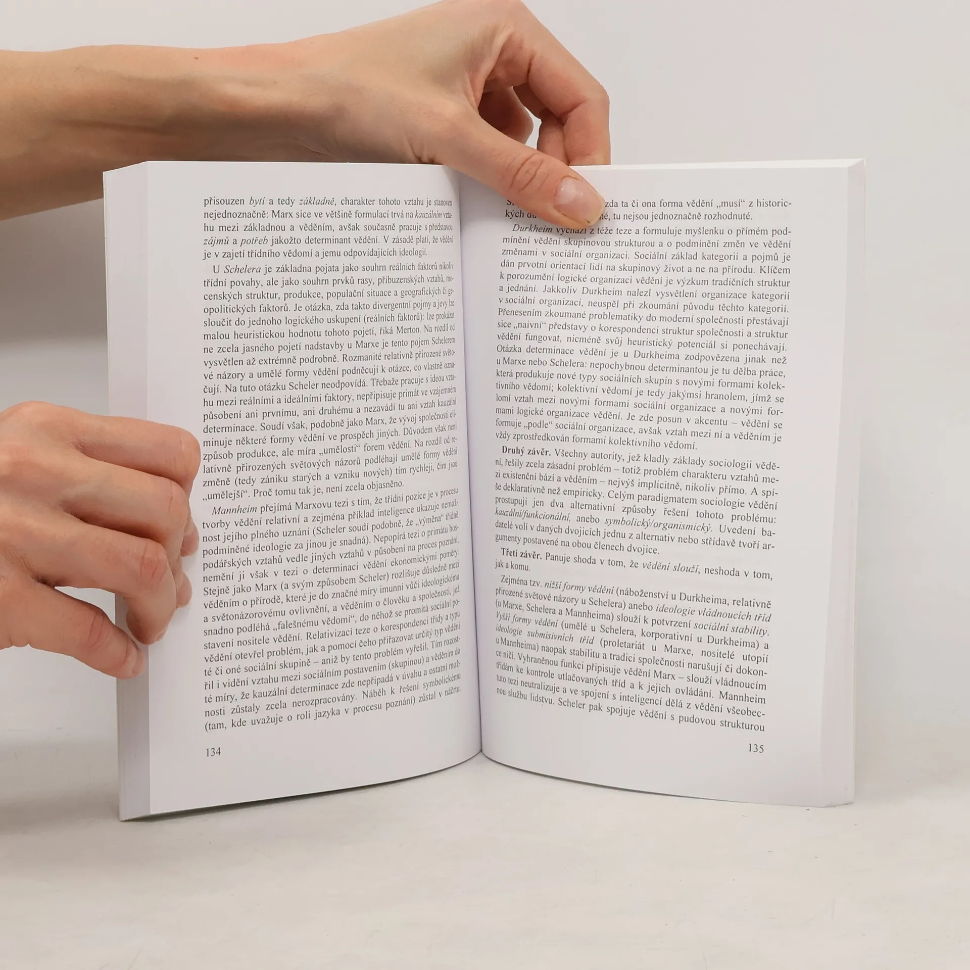 Kniha předkládá českému čtenáři první souhrnnou informaci o základních koncepcích sociologie vědění, které krystalizovaly od čtyřicátých let minulého století do současnosti. Vychází z otázek a problémů poprvé tematizovaných mysliteli poloviny 19. století (K. Marx, W. Dilthey aj.) a sleduje, jak promýšlení těchto témat inspirovalo klasiky disciplíny M. Schelera, K. Mannheima a A. Schutze. Práce podává rovněž přehled o proměnách v teoretických východiscích, metodologiích i v argumentaci sociologie vědění sedmdesátých a osmdesátých let a ukazuje, co se s klasickým odkazem děje v hlavách postmodernistů. Poukazuje rovněž na obrovskou manipulaci s informacemi, jíž je každý jedinec v západní civilizaci denně vystaven. Na rozdíl od slovníků či encyklopedií, které dosud danou problematiku v češtině zprostředkovávaly, přibližuje autor základní texty sociologie vědění podrobněji a vysvětluje je pomocí seskupení do několika základních typů. Zachovává v co největší možné míře jazyk analyzovaných textů a u každé kapitoly shrnuje základní cizojazyčné pojmy do přehledného slovníčku. Kniha je určena především studentům a pedagogům sociálních věd, filosofie a příslušníkům těch oborů, které se spolupodílejí na tvorbě vědění (například žurnalistům nebo politikům).