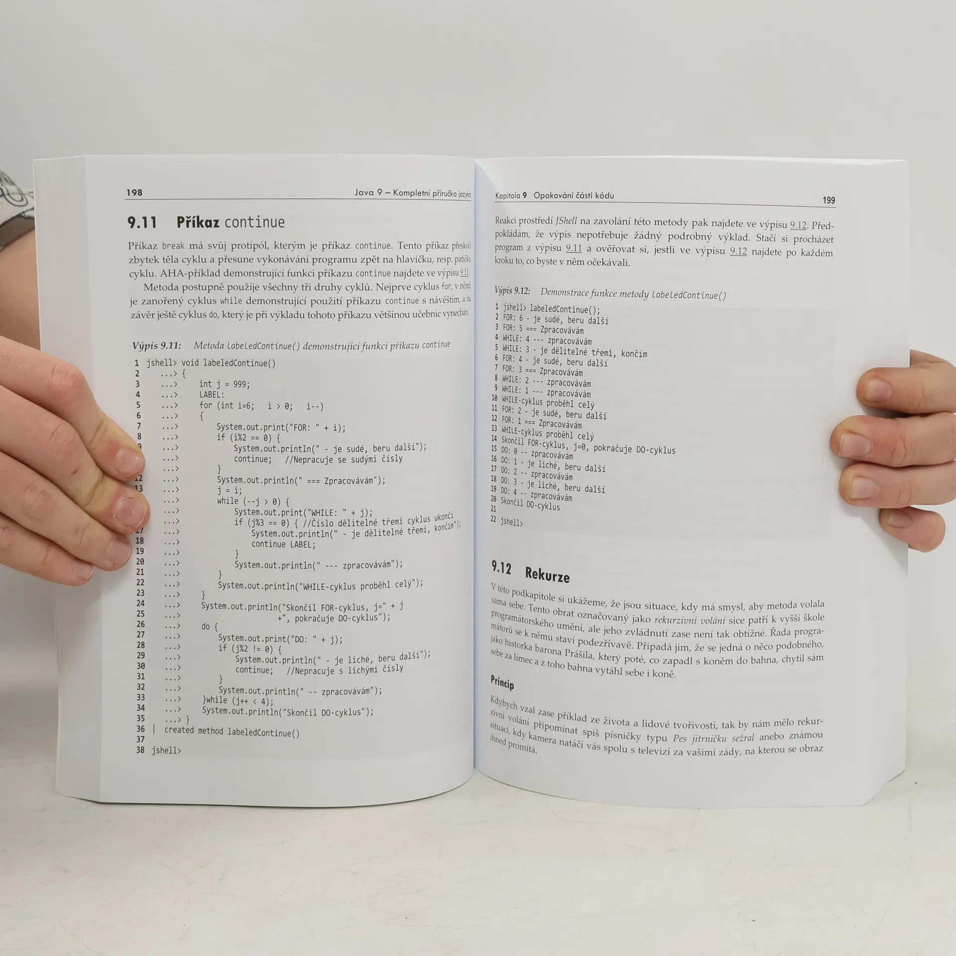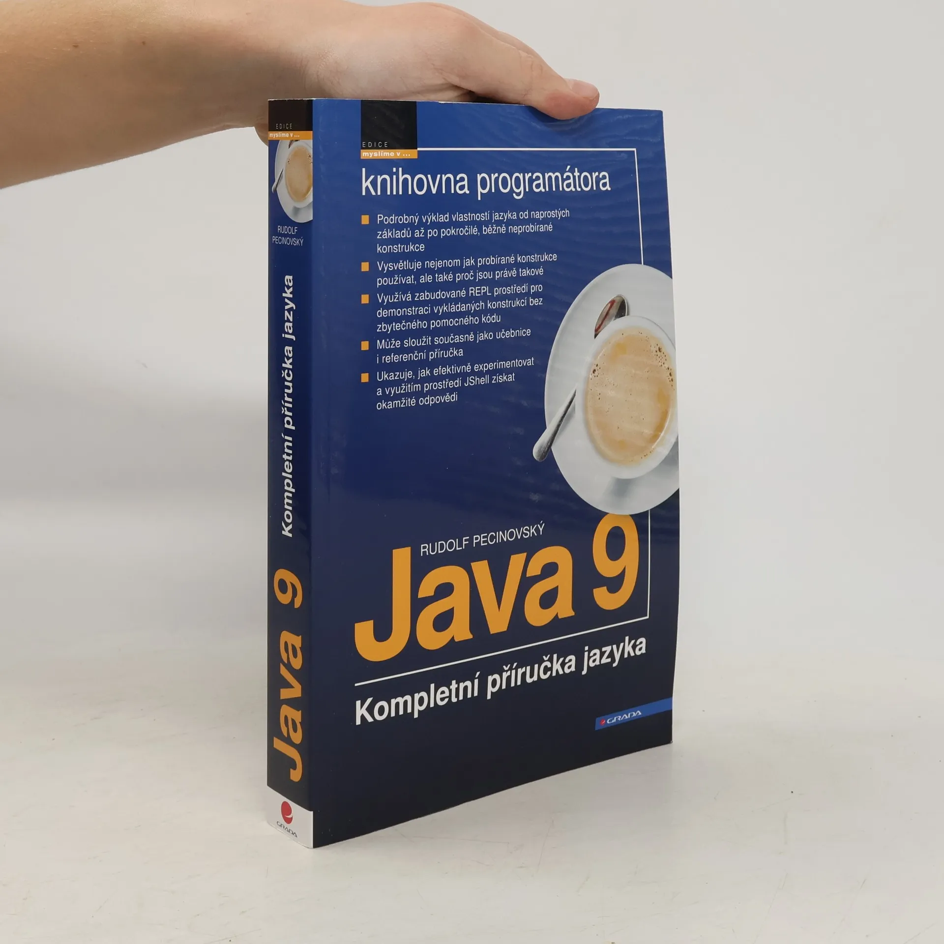 Knihovna programátora. Příručka podrobně vysvětluje vlastnosti deváté verze jazyka Java. Provede čtenáře všemi zákoutími jazyka od naprostých základů až po pokročilé konstrukce. Bude proto užitečná nejen pro začátečníky, ale i pro pokročilé programátory, kteří v ní najdou vysvětlení příčin řady problémů, s nimiž se denně setkávají, spolu s návody na jejich řešení. Díky svému rozsahu totiž umožňuje podrobně vysvětlit i témata, která ostatní publikace přecházejí z nedostatku místa mlčením a nutí tak programátory postupovat při řešení těchto problémů stylem pokus–omyl. Vysvětlované konstrukce jsou demonstrovány v prostředí JShell, které je novinkou deváté verze jazyka a které umožňuje jednoduchou a efektivní demonstraci funkce většiny vysvětlovaných programových konstrukcí bez zbytečné vaty, která je nutná při použití klasického postupu. To usnadňuje rychlé vyzkoušení probíraných konstrukcí a případné další experimenty bez nutnosti psaní pomocného kódu s testovacími metodami a kontrolními tisky. Tento přístup výrazně usnadňuje využití v základních kurzech programování.
