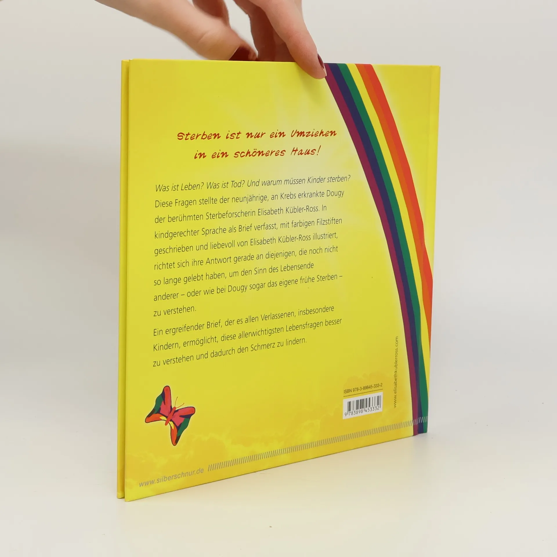 Sterben ist nur ein Umziehen in ein schöneres Haus! Was ist Leben? Was ist Tod? Und warum müssen Kinder sterben? Diese Fragen stellte der neunjährige, an Krebs erkrankte Dougy der berühmten Sterbeforscherin Elisabeth Kübler-Ross. In kindgerechter Sprache als Brief verfasst, mit farbigen Filzstiften geschrieben und liebevoll von Elisabeth Kübler-Ross illustriert, richtet sich ihre Antwort gerade an diejenigen, die noch nicht so lange gelebt haben, um den Sinn des Lebensende anderer – oder wie bei Dougy sogar das eigene frühe Sterben – zu verstehen. Ein ergreifender Brief, der es allen Verlassenen, insbesondere Kindern, ermöglicht, diese allerwichtigsten Lebensfragen besser zu verstehen und dadurch den Schmerz zu lindern.