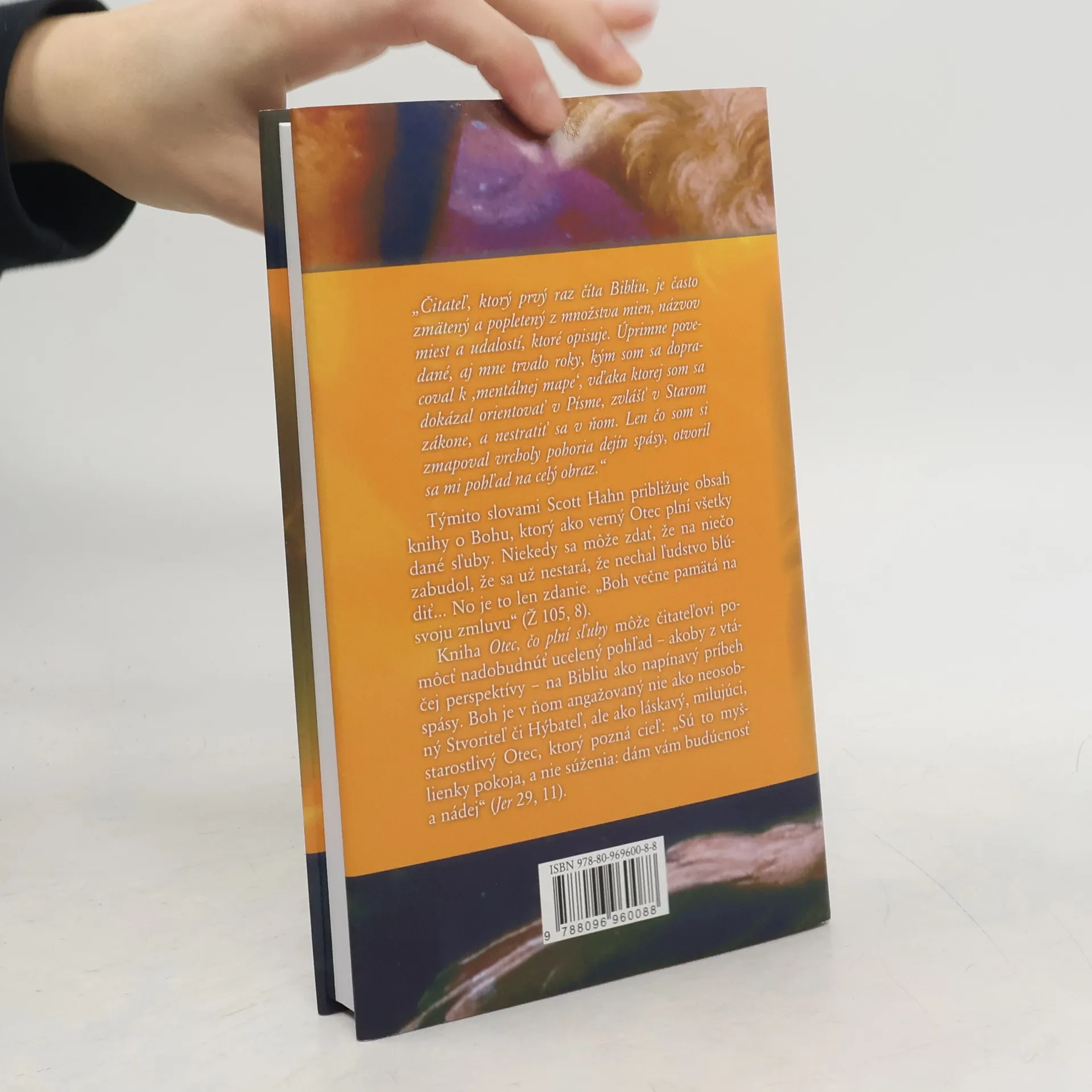 „Čitateľ, ktorý prvý raz číta Bibliu, je často zmätený a popletený z množstva mien, názvov miest a udalostí, ktoré opisuje. Úprimne povedané, aj mne trvalo roky, kým som sa dopracoval k ,mentálnej mape‘, vďaka ktorej som sa dokázal orientovať v Písme, zvlášť v Starom zákone, a nestratiť sa v ňom. Len čo som si zmapoval vrcholy pohoria dejín spásy, otvoril sa mi pohľad na celý obraz.“ Týmito slovami Scott Hahn približuje obsah knihy o Bohu, ktorý ako verný Otec plní všetky dané sľuby. Niekedy sa môže zdať, že na niečo zabudol, že sa už nestará, že nechal ľudstvo blúdiť... No je to len zdanie. „Boh večne pamätá na svoju zmluvu“ (Ž 105, 8). Kniha Otec, čo plní sľuby môže čitateľovi pomôcť nadobudnúť ucelený pohľad – akoby z vtáčej perspektívy – na Bibliu ako napínavý príbeh spásy. Boh je v ňom angažovaný nie ako neosobný Stvoriteľ či Hýbateľ, ale ako láskavý, milujúci,starostlivý Otec, ktorý pozná cieľ: „Sú to myšlienky pokoja, a nie súženia: dám vám budúcnosť a nádej“ (Jer 29, 11).