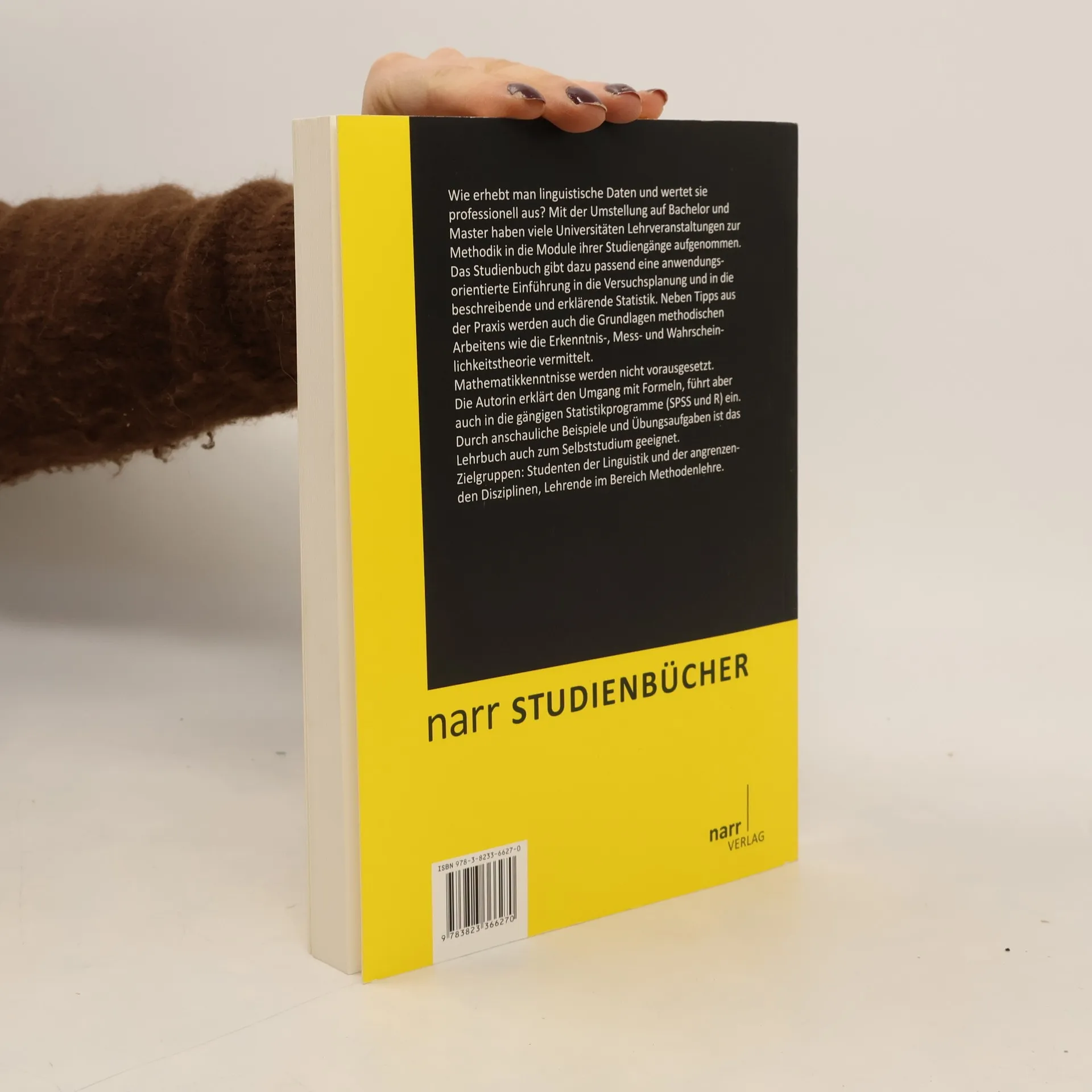 Lange wurde die Methodenlehre mehr wie ein „Stiefkind“ in der Linguistik behandelt. Durch das interdisziplinäre Interesse an Sprache hat sie aber deutlich an Bedeutung gewonnen. Mit der Umstellung auf Bachelor und Master haben viele Universitäten methodische Lehrveranstaltungen in die Module ihrer Studiengänge aufgenommen. Das Studienbuch „Methodik für Linguisten“ gibt dazu passend einen anwendungsorientierten Überblick über die in der Linguistik gängigen Methoden der Versuchsplanung und der beschreibenden und erklärenden Statistik. Mathematikkenntnisse werden nicht vorausgesetzt. Das Buch kann studienbegleitend in der Lehre eingesetzt werden, hilft aber auch bei der Planung und Durchführung von Abschlussarbeiten. Durch Denkpausen und Übungsaufgaben eignet es sich auch gut für Studierende zum Selbststudium.