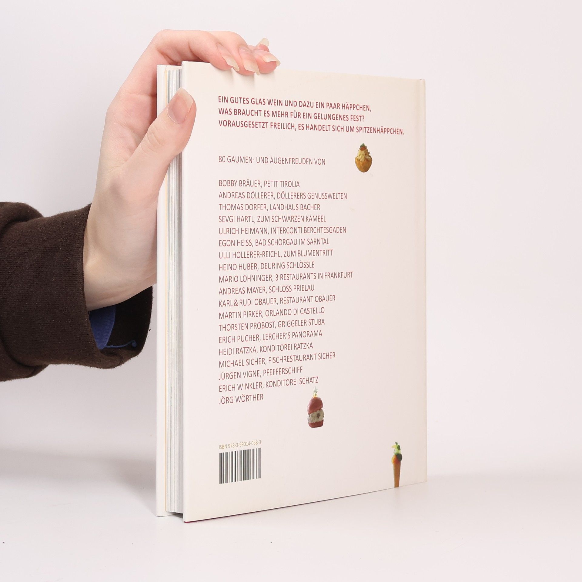 In Frankreich heißen sie „Amuse-Gueules“, in Spanien sind sie als „Tapas“ in aller Munde. Hierzulande reicht man „Snacks“ oder „Häppchen“, wenn bei einer Einladung nicht das aufwändige Tafeln im MIttelpunkt stehen soll, sondern das Plaudern und Beisammensein bei einem guten Glas Wein. Für gewöhnlich retten einen dabei Oliven, Brot, Chips und Erdnüsse durch den Abend, doch es geht auch einfallsreicher zur eigenen und zur Freude der Gäste. 20 Spitzenköche aus Österreich, Deutschland und Südtirol haben für dieses Buch 80 Spitzenhäppchen-Rezepte kreiert, vom Schinkenkipferl und Käsegebäck über Buchweizen-Blinis und Shrimps-Popcorn bis zur Räucheraal-Praline und zum Parmesanlutscher.