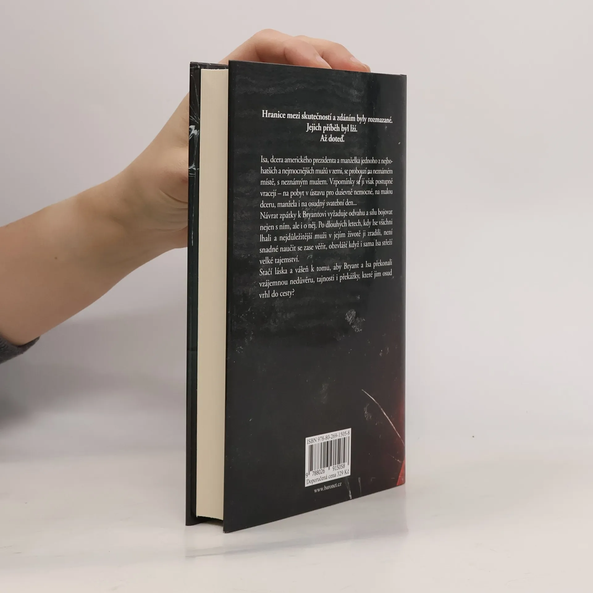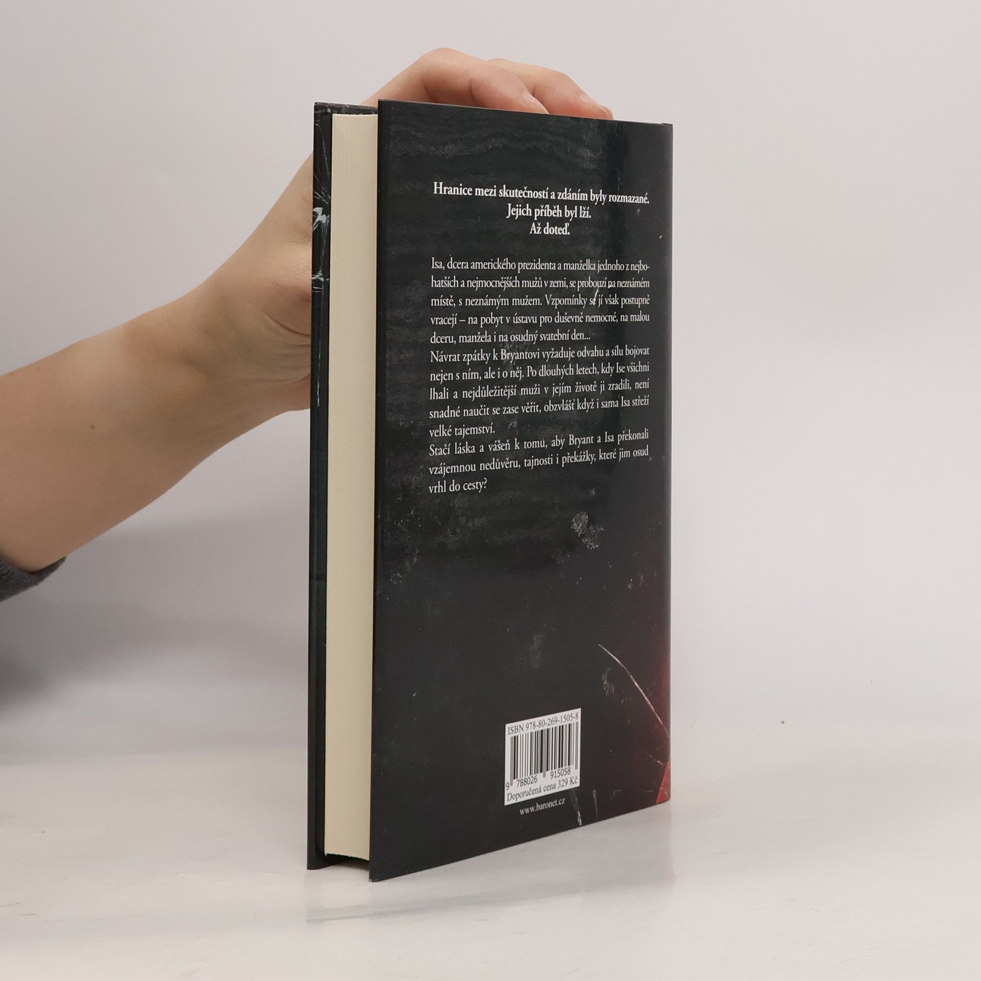 Hranice mezi skutečností a zdáním byly rozmazané. Jejich příběh byl lží. Až dosud. Isa, dcera amerického prezidenta a manželka jednoho z nejbohatších a nejmocnějších mužů v zemi, se probouzí na neznámém místě, s neznámým mužem. Vzpomínky se jí však postupně vracejí – na pobyt v ústavu pro duševně nemocné, na malou dceru, manžela i na osudný svatební den... Návrat zpátky k Bryantovi vyžaduje odvahu a sílu bojovat nejen s ním, ale i o něj. Po dlouhých letech, kdy Ise všichni lhali a nejdůležitější muži v jejím životě ji zradili, není snadné naučit se lidem zase věřit, obzvlášť když i sama Isa střeží velké tajemství. Stačí láska a vášeň k tomu, aby Bryant a Isa překonali vzájemnou nedůvěru, tajnosti i překážky, které jim osud vrhl do cesty?
