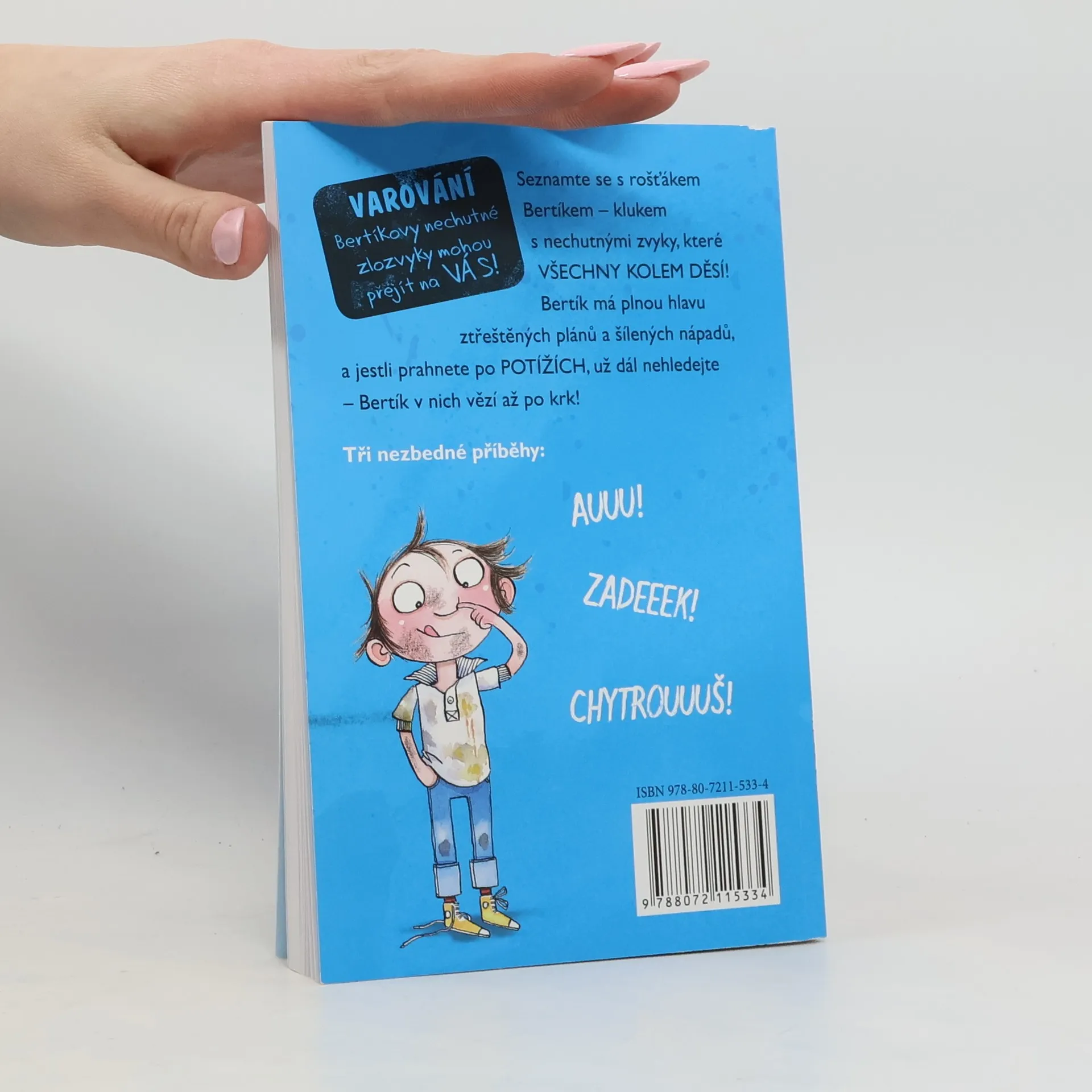 Další knížka s třemi novými příběhy ROŠŤÁKA BERTÍKA – kluka se zvyky, které všechny dospělé kolem děsí! Bertík má plnou hlavu ztřeštěných plánů a šílených nápadů, a jestli prahnete po potížích, už dál nehledejte – Bertík v nich vězí až po krk! Čtení pro děti od 6 do9 let.