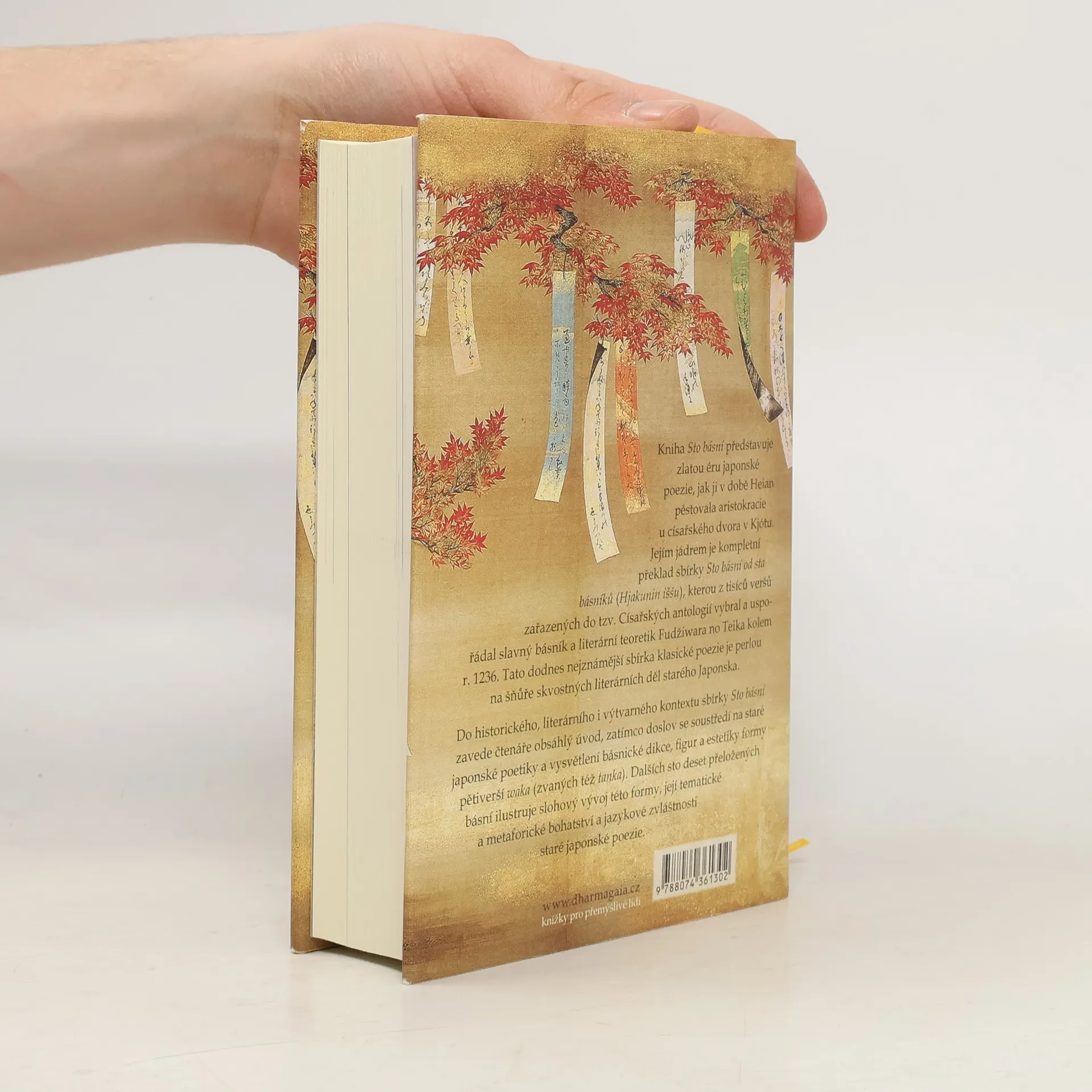 Kniha představuje zlatou éru japonské poezie, jak ji v době Heian pěstovala aristokracie u císařského dvora v Kjótu.Jádrem knihy je kompletní překlad sbírky Sto básní od sta básníků, kterou z tisíců veršů zařazených do tzv. Císařských antologií vybral a uspořádal slavný básník a literární teoretik Fudžiwara no Teika kolem r. 1236. Tato dodnes nejznámější sbírka klasické poezie je perlou na šňůře skvostných literárních děl starého Japonska. Do historického, literárního i výtvarného kontextu sbírky Sto básní zavede čtenáře obsáhlý úvod, zatímco doslov se soustředí na staré japonské poetiky a vysvětlení básnické dikce, figur a estetiky pětiverší waka (zvaných též tanka). Dalších sto deset přeložených básní ilustruje slohový vývoj této formy, její tematické a metaforické bohatství a jazykové zvláštnosti staré japonské poezie.