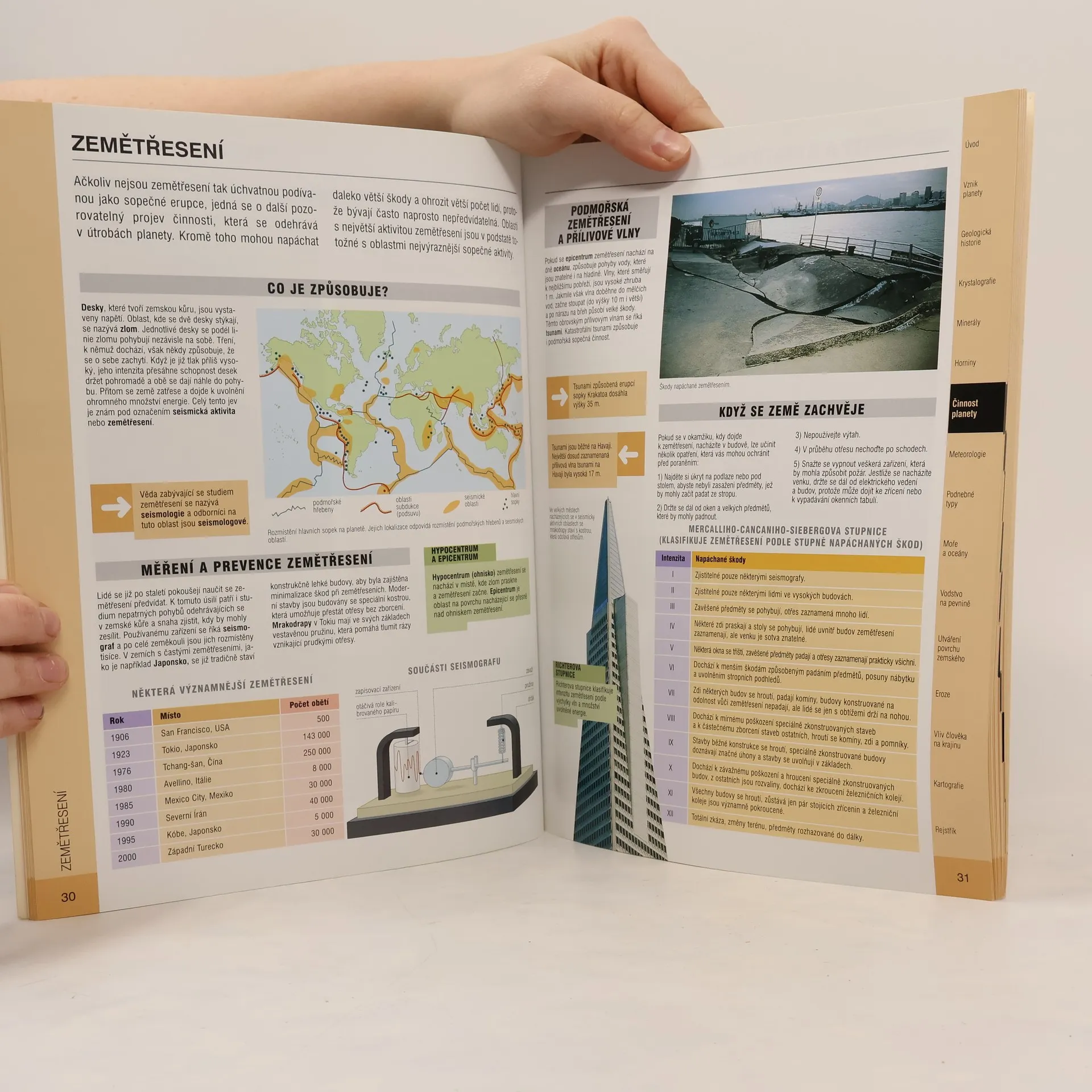 Tento přehled nabitý informacemi popisuje prostřednictvím účelné kombinace textu, barevných fotografií a názorných ilustrací suchozemské i vodní útvary a prvky planety Země. Vysvětluje činnost a působení tektonických desek a vznik jednotlivých světadílů a zabývá se i popisem horninotvorných a dalších geologických jevů, sopečné činnosti a klimatologie. V dalších kapitolách je vysvětleno moderní vědecké předpovídání počasí, popsány formy života v mořích a oceánech a shrnuto přírodní utváření povrchu Země spolu s vlivy pohoří, řek, ledovců, pouští i deštných pralesů. Závěrečné kapitoly pojednávají o vlivu člověka na planetu a věnují se stručné historii kartografie. Díky stovkám barevných fotografií a ilustrací kombinovaných s výstižnými popisnými texty bude tato kniha vhodným obohacením domácích knihoven i učeben.