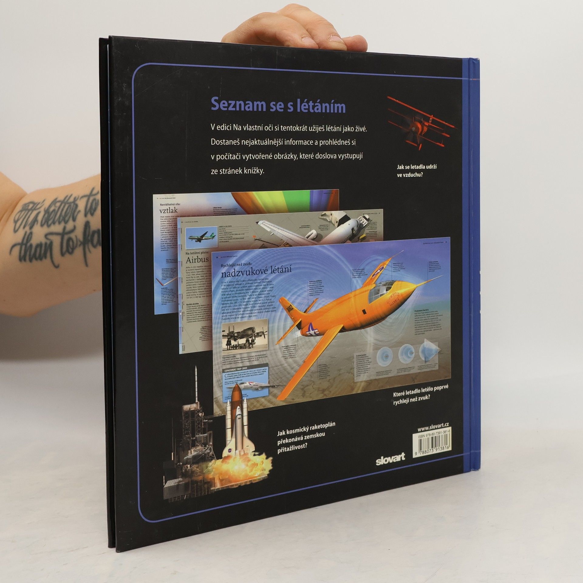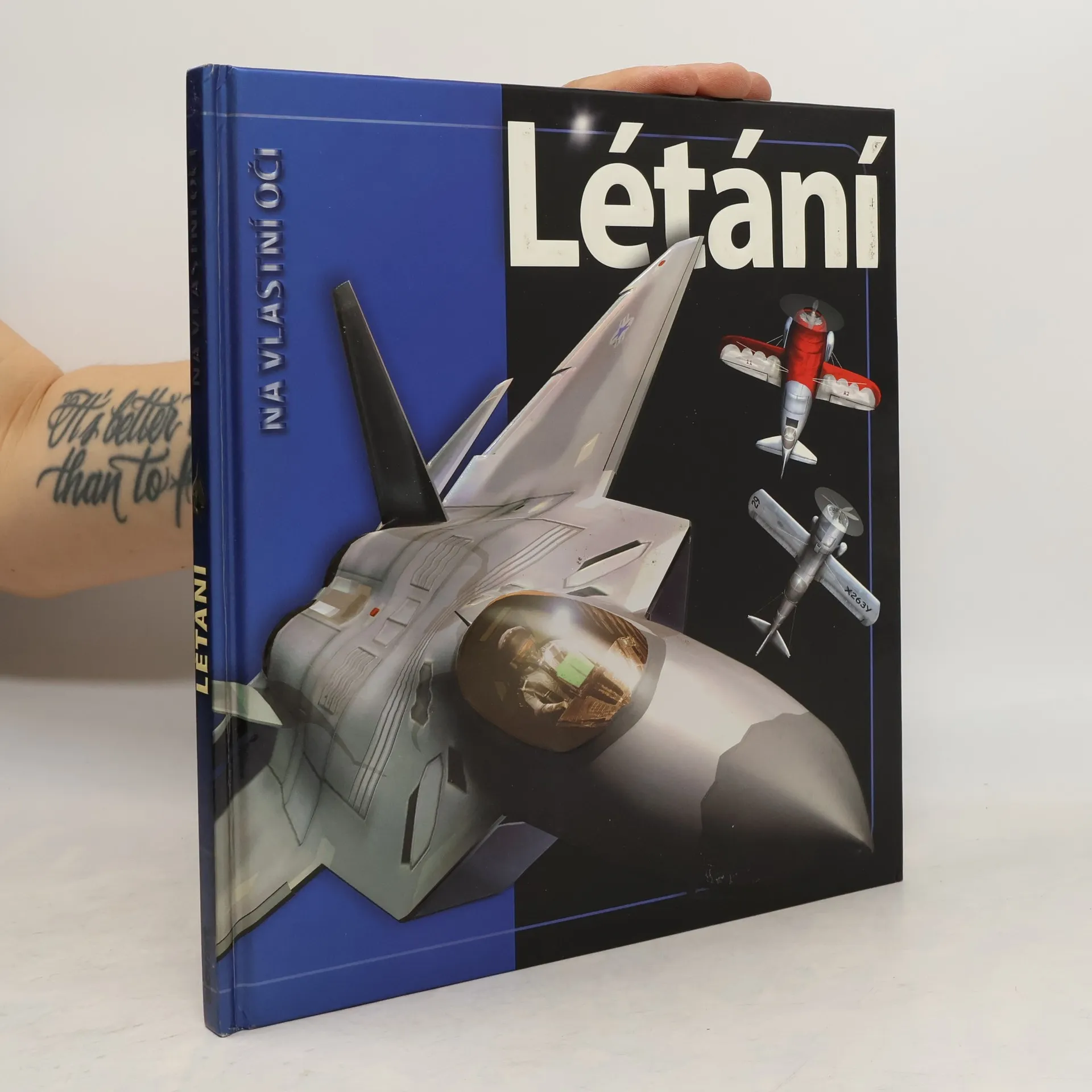 Příběh lidského létání začíná prastarým snem – touhou létat jako ptáci, kteří překonávají přitažlivost zemskou klouzavým i aktivním letem. Už před staletími se člověk snažil napodobovat ptačí let. Konečně počátkem 20. století vyvinuli bratři Wrightové první letoun – motorové letadlo s pevnými křídly, schopné řízeného letu. Létání se stalo skutečností. V edici Na vlastní oči si tentokrát užijete létání jako živé. Kniha plná aktuálních informací a obrázků vytvořených v počítači, které doslova vystupují ze stránek, odpoví na mnohé zvídavé otázky – jak se letadla udrží ve vzduchu, které letadlo letělo poprvé rychleji než zvuk nebo jak kosmický raketoplán překonává zemskou přitažlivost.