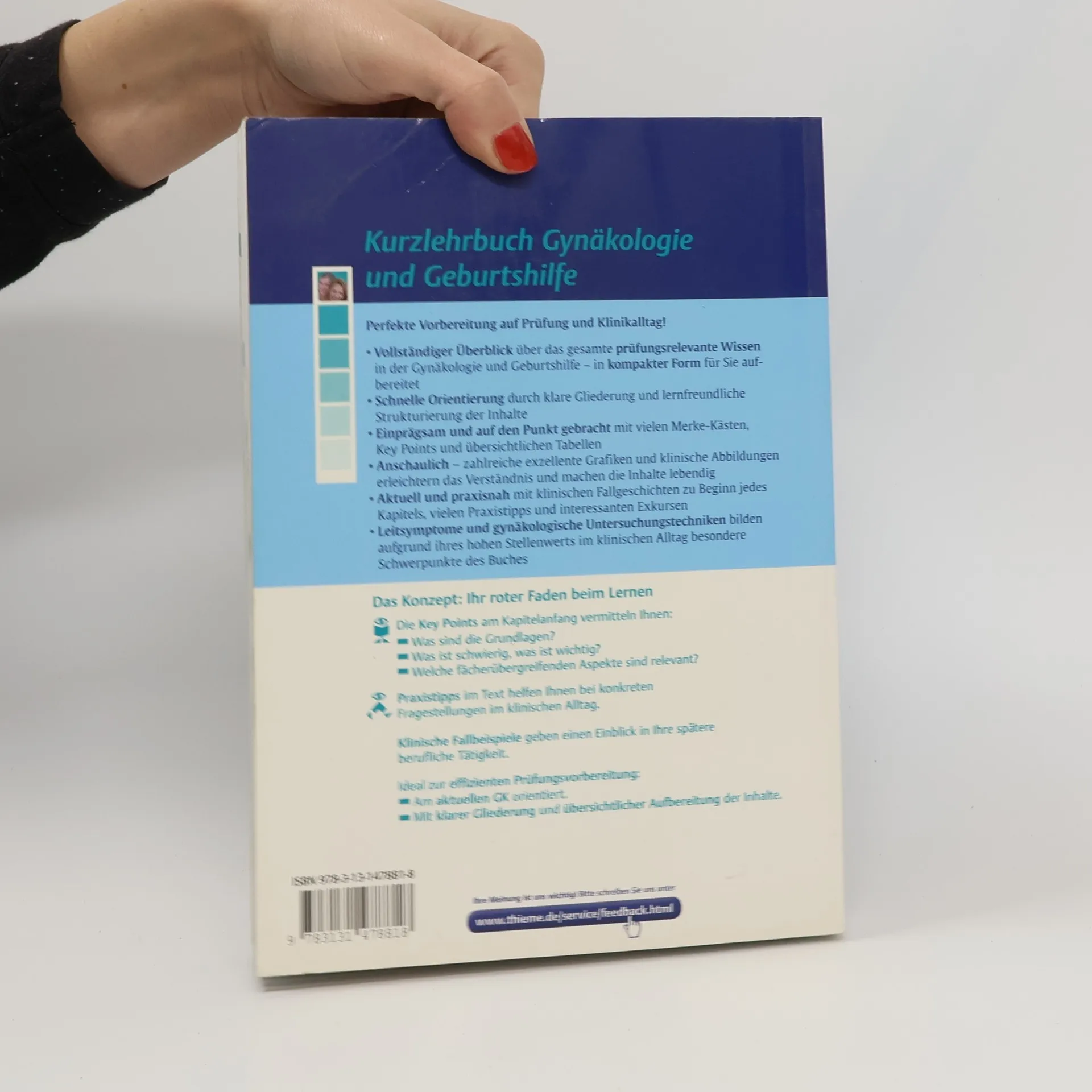 Perfekte Vorbereitung auf Prüfung und Kliniksalltag! Vollständiger Überblick über das gesamte prüfungsrelevante Wissen in der Gynäkologie und Geburtshilfe in kompakter Form für Sie aufbereitet Schnelle Orientierung durch klare Gliederung und lernfreundliche Strukturierung der Inhalte Einprägsam und auf den Punkt gebracht mit vielen Merke-Kästen, Key Points und übersichtlichen Tabellen Anschaulich zahlreiche exzellente Grafiken und klinische Abbildungen erleichtern das Verständnis und machen die Inhalte lebendig Aktuell und praxisnah mit klinischen Fallgeschichten zu Beginn jedes Kapitels, vielen Praxistipps und interessanten Exkursen Leitsymptome und gynäkologische Untersuchungstechniken bilden aufgrund ihres hohen Stellenwertes im klinischen Alltag besondere Schwerpunkte des Buches