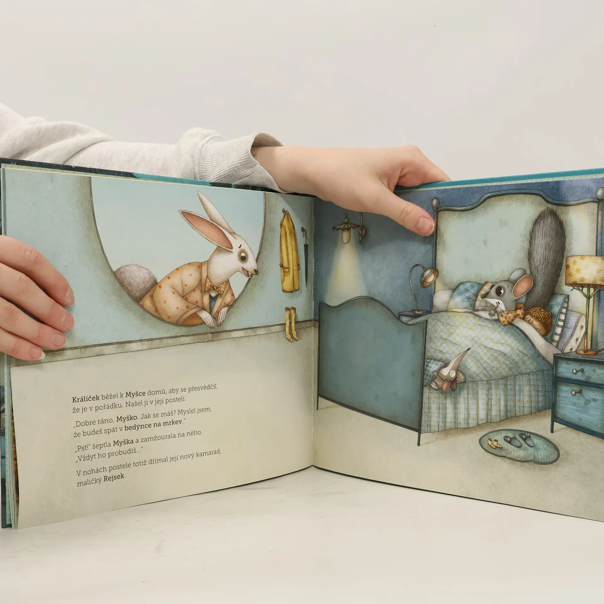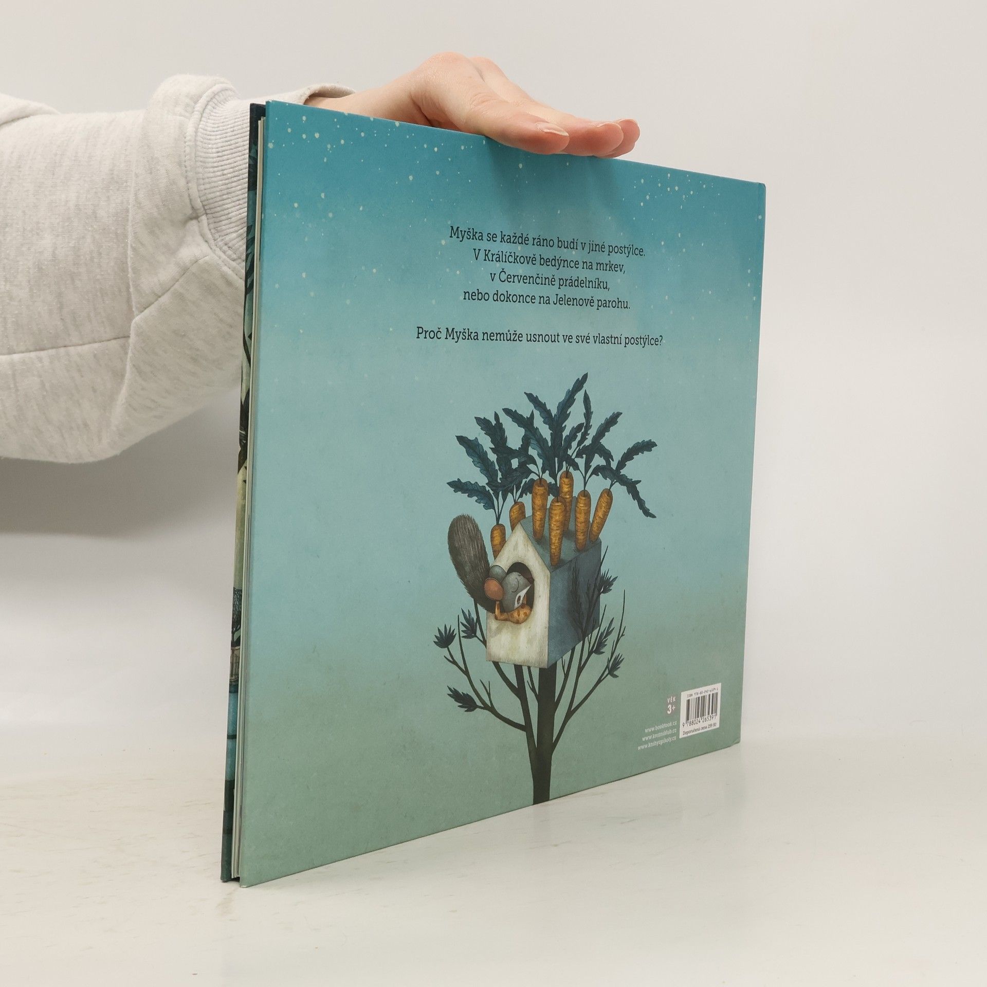 Myška se každé ráno budí v jiné postýlce. V Králíčkově bedýnce na mrkev, v Červenčině prádelníku nebo dokonce na Jelenově parohu. Proč Myška nemůže usnout ve své vlastní postýlce? Obrázková knížka s krásným příběhem známé španělské autorky doprovázená krásnými ilustracemi oblíbeného italského výtvarníka potěší děti od 3 let.