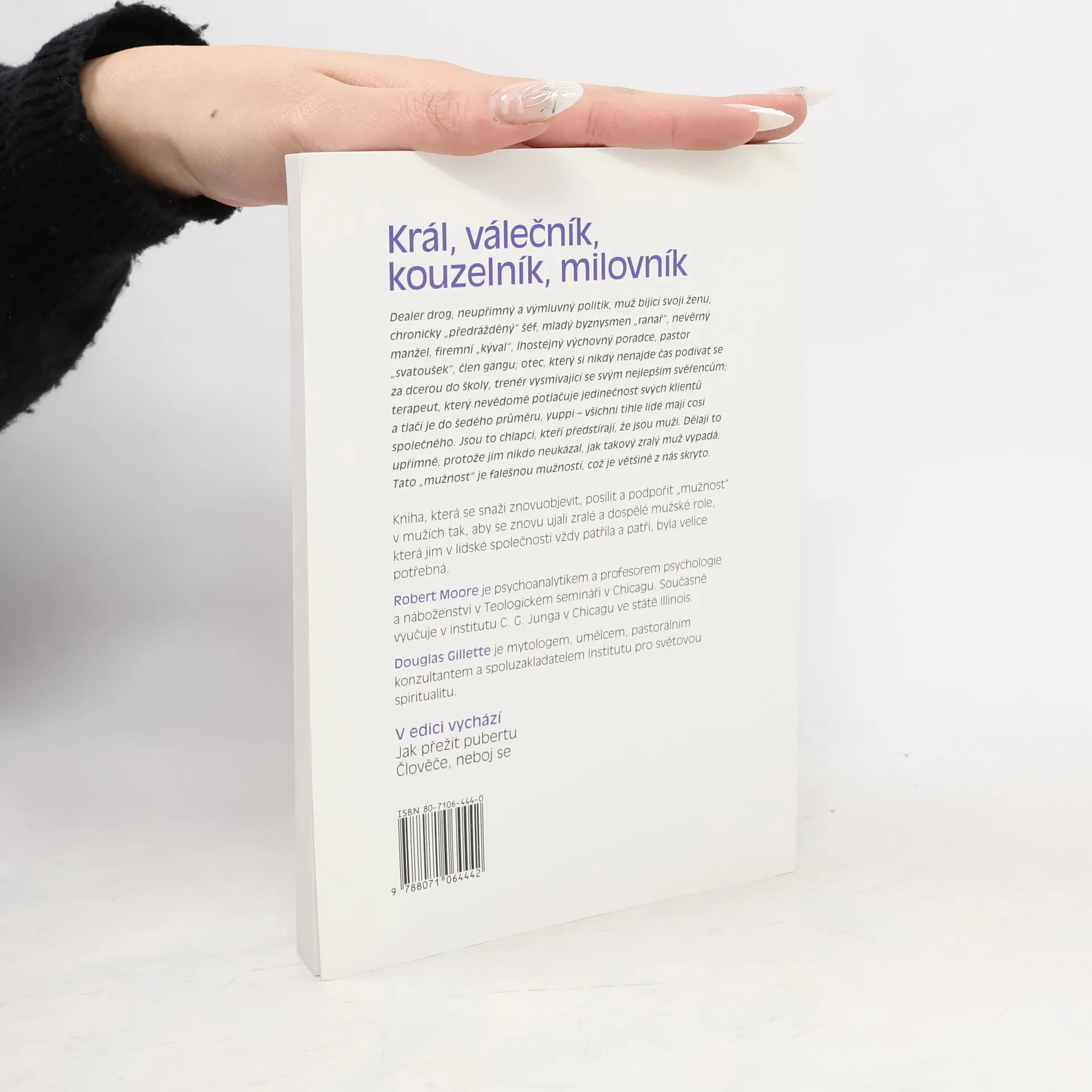 Analytický (jungiánský) pohled na mužskou duši. Autoři poukazují na problematiku nezralých mužů a současnou krizi mužské identity. Příčiny vidí ve dvou základních faktorech - vytrácení rituálních praktik, speciálně iniciačních a přechodových rituálů, ze života moderní společnosti a v přežívání patriarchátu jakožto projevu nezralé mužnosti. Současní muži nepostrádají ani tak vztah k ženství, jak je jim vytýkáno feministkami, ale spíše jim chybí vztah k pravé mužnosti. Svoji nezralost zakrývají panovačností, agresivitou a předstíráním mužnosti. Cesta k nápravě tohoto stavu je možná skrze jungovskou psychologii, kdy prostřednictvím aktivní imaginace se muži doberou k archetypům zralé mužnosti, tedy přejdou od psychologie chlapce k psychologii muže, která se pojí s archetypy Krále, Válečníka, Kouzelníka a Milovníka.