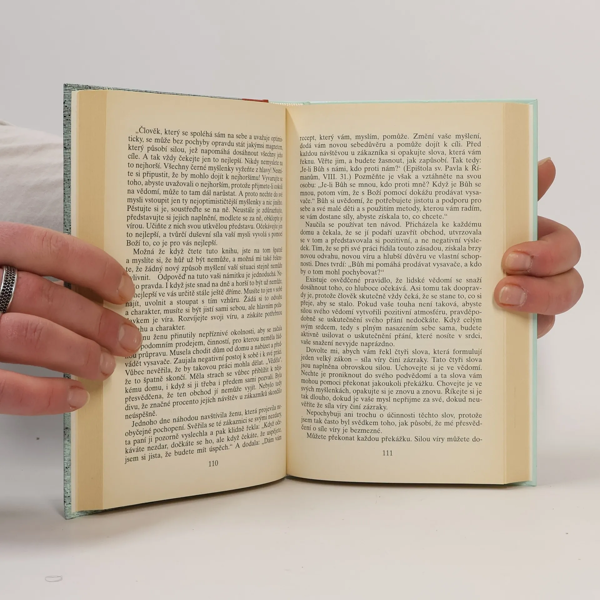 Pastor N. Peale, jehož rady a doporučení pomohly změnit dosavadní životy milionů Američanů, čtivým a nenásilným způsobem přibližuje modernímu člověku pravdu Starého a Nového zákona. Vychází přitom z dlouhodobých zkušeností a pravdivost svých tvrzení dokazuje na skutečných příbězích. Právě četba opravdových životních příběhů pomůže čtenáři pochopit, že pozitivní myšlení, které autor doporučuje, vede k úspěšnému a šťastnému životu.