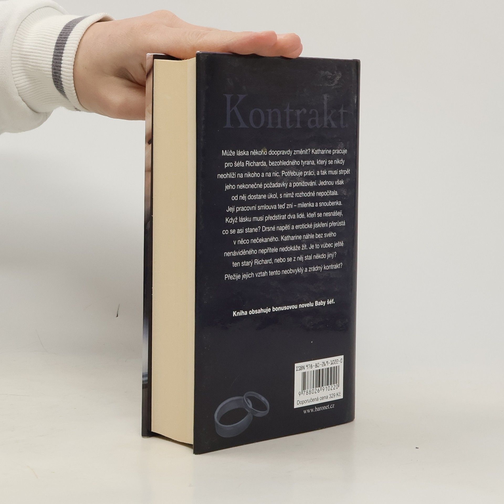 Může láska někoho doopravdy změnit? Katharine pracuje pro šéfa Richarda, bezohledného tyrana, který se nikdy neohlíží na nikoho a na nic. Potřebuje práci, a tak musí strpět jeho nekonečné požadavky a ponižování. Jednou však od něj dostane úkol, s nímž rozhodně nepočítala. Její pracovní smlouva teď zní – milenka a snoubenka. Když lásku musí předstírat dva lidé, kteří se nesnášejí, co se asi stane? Drsné napětí a erotické jiskření přerůstá do něčeho nečekaného. Katharine náhle bez svého nenáviděného nepřítele nedokáže žít. Je to vůbec ještě ten starý Richard, nebo se z něj stal někdo jiný? Přežije jejich vztah tento neobvyklý a zrádný kontrakt? Kniha obsahuje bonusovou novelu Baby šéf.