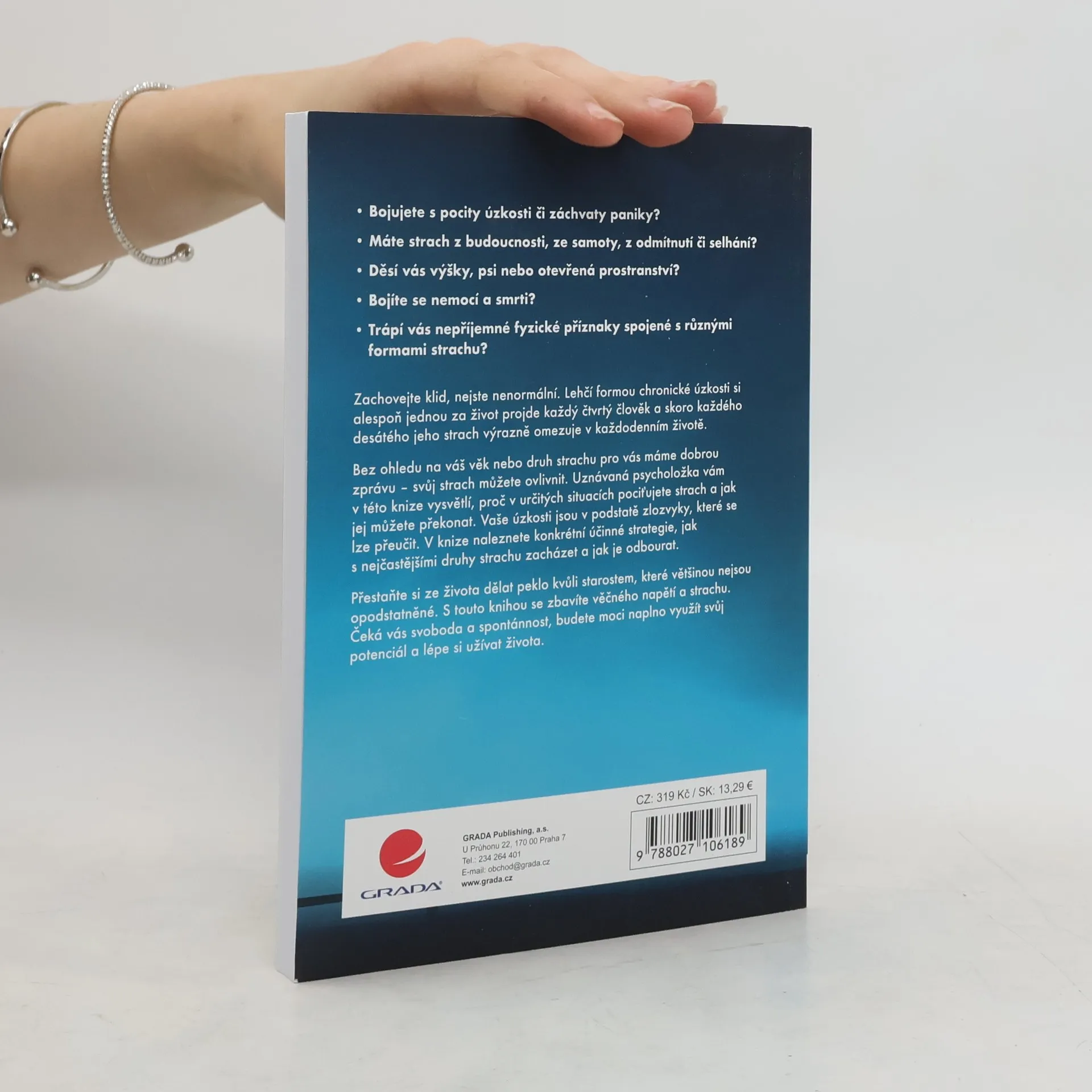 Bojujete s pocity úzkosti či záchvaty paniky? Máte strach z budoucnosti, ze samoty, z odmítnutí či selhání? Děsí vás výšky, psi nebo otevřená prostranství? Bojíte se nemocí a smrti? Trápí vás nepříjemné fyzické příznaky spojené s různými formami strachu? Zachovejte klid, nejste nenormální. Lehčí formou chronické úzkosti si alespoň jednou za život projde každý čtvrtý člověk a skoro každého desátého jeho strach výrazně omezuje v každodenním životě. Bez ohledu na váš věk nebo druh strachu pro vás máme dobrou zprávu – svůj strach můžete ovlivnit. Uznávaná psycholožka vám v této knize vysvětlí, proč v určitých situacích pociťujete strach a jak jej můžete překonat. Vaše úzkosti jsou v podstatě zlozvyky, které se lze přeučit. V knize naleznete konkrétní účinné strategie, jak s nejčastějšími druhy strachu zacházet a jak je odbourat. Přestaňte si ze života dělat peklo kvůli starostem, které většinou nejsou opodstatněné. S touto knihou se zbavíte věčného napětí a strachu. Čeká vás svoboda a spontánnost, budete moci naplno využít svůj potenciál a lépe si užívat života.