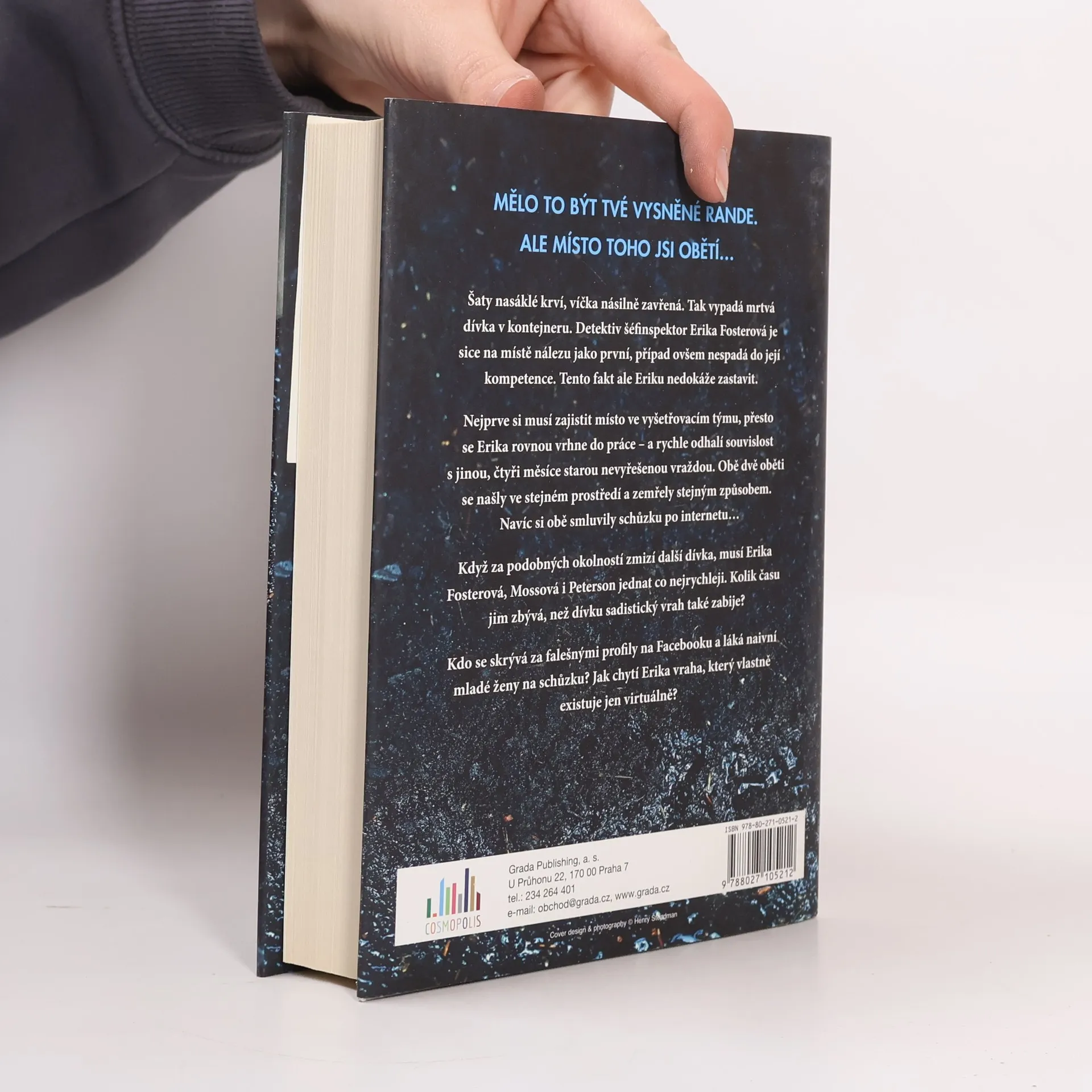 Mělo to být vysněné rande… Šaty nasáklé krví, víčka násilně zavřená. Tak vypadá mrtvá dívka v kontejneru. Detektiv šéfinspektor Erika Fosterová je na místě nálezu jako první. Problém ovšem je, že to není její případ. Nejprve si musí zajistit místo ve vyšetřovacím týmu, přesto se Erika rovnou vrhne do práce – a odhalí souvislost s jinou nevyřešenou vraždou. Obě oběti se našly ve stejném prostředí a zemřely stejným způsobem. Navíc si obě smluvily schůzku po internetu… Kdo se skrývá za falešnými profily na Facebooku a láká naivní mladé ženy na schůzku? Jak chytí Erika vraha, který vlastně existuje jen virtuálně?