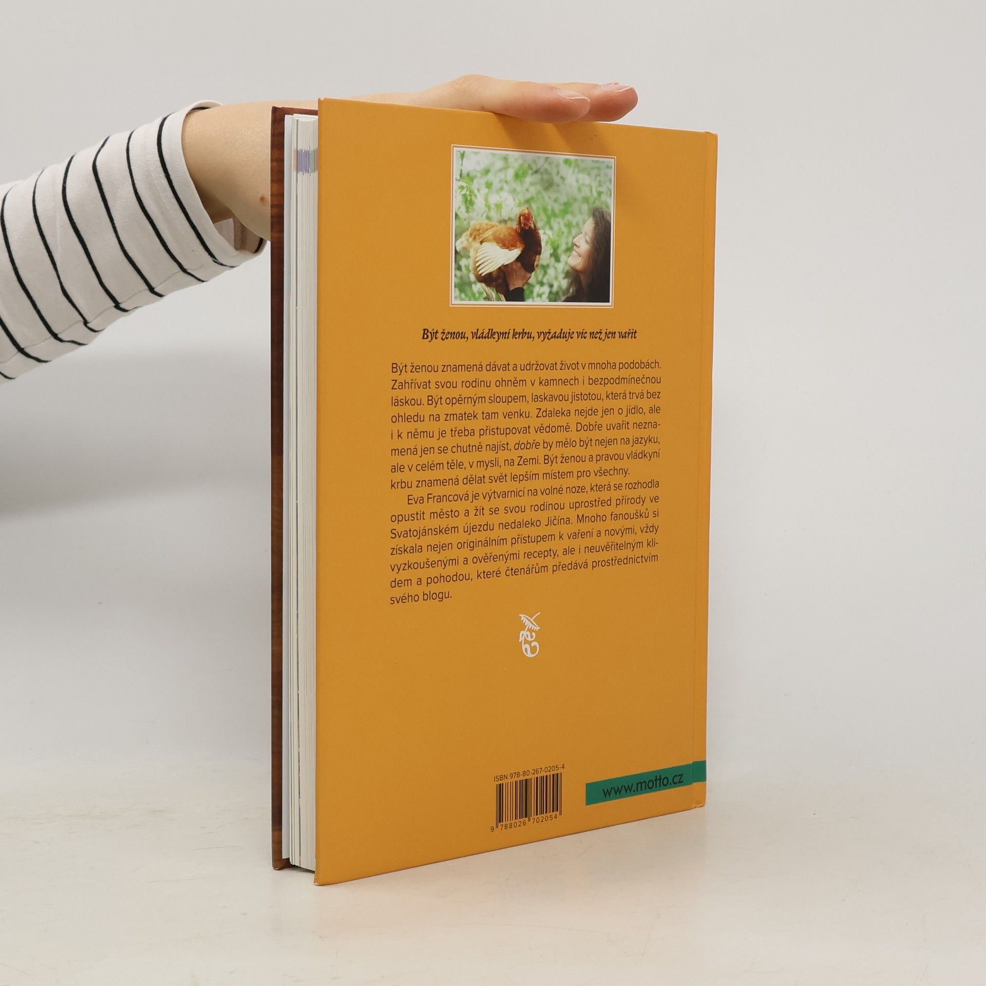 Být ženou, vládkyní krbu, vyžaduje víc než jen vařit. Být ženou znamená dávat a udržovat život v mnoha podobách. Zahřívat svou rodinu ohněm v kamnech i bezpodmínečnou láskou. Být opěrným sloupem, laskavou jistotou, která trvá bez ohledu na zmatek tam venku. Zdaleka nejde jen o jídlo, ale i k němu je třeba přistupovat vědomě. Dobře uvařit neznamená jen se chutně najíst, „dobře“ by mělo být nejen na jazyku, ale v celém těle, v mysli, na Zemi. Být ženou a pravou vládkyní krbu znamená dělat svět lepším místem pro všechny. Eva Francová je výtvarnicí na volné noze, která se rozhodla opustit město a žít se svou rodinou uprostřed přírody ve Svatojánském újezdu nedaleko Jičína. Mnoho fanoušků si získala nejen originálním přístupem k vaření a novými, vždy vyzkoušenými a ověřenými recepty, ale i neuvěřitelným klidem a pohodou, které čtenářům předává prostřednictvím svého blogu.
