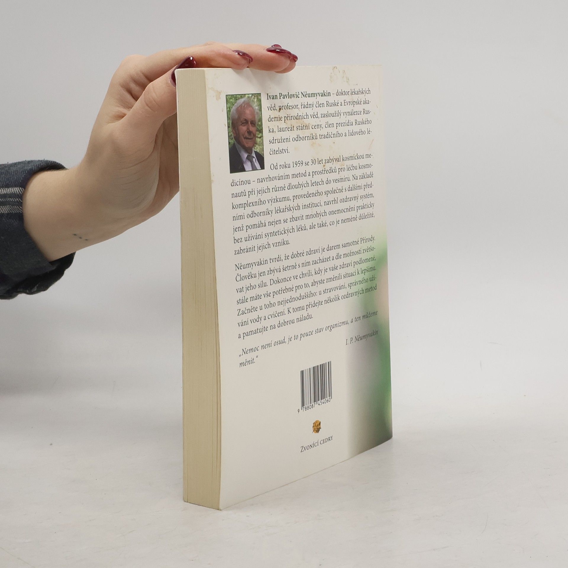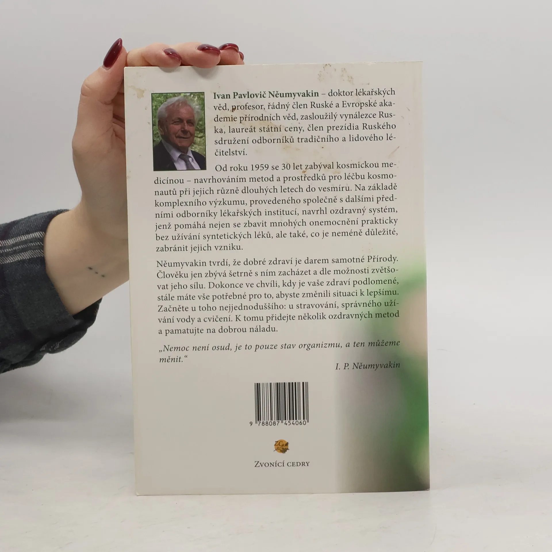 Něumyvakin tvrdí, že dobré zdraví je darem samotné Přírody. Člověku jen zbývá šetrně s ním zacházet a dle možnosti zvětšovat jeho sílu. Dokonce ve chvíli, kdy je vaše zdraví podlomené, stále máte vše potřebné pro to, abyste změnili situaci k lepšímu. Začněte u toho nejjednoduššího: u stravování, správného užívání vody a cvičení. K tomu přidejte několik ozdravných metod a pamatujte na dobrou náladu. Nemoc není osud, je to pouze stav organizmu, a ten můžeme měnit.