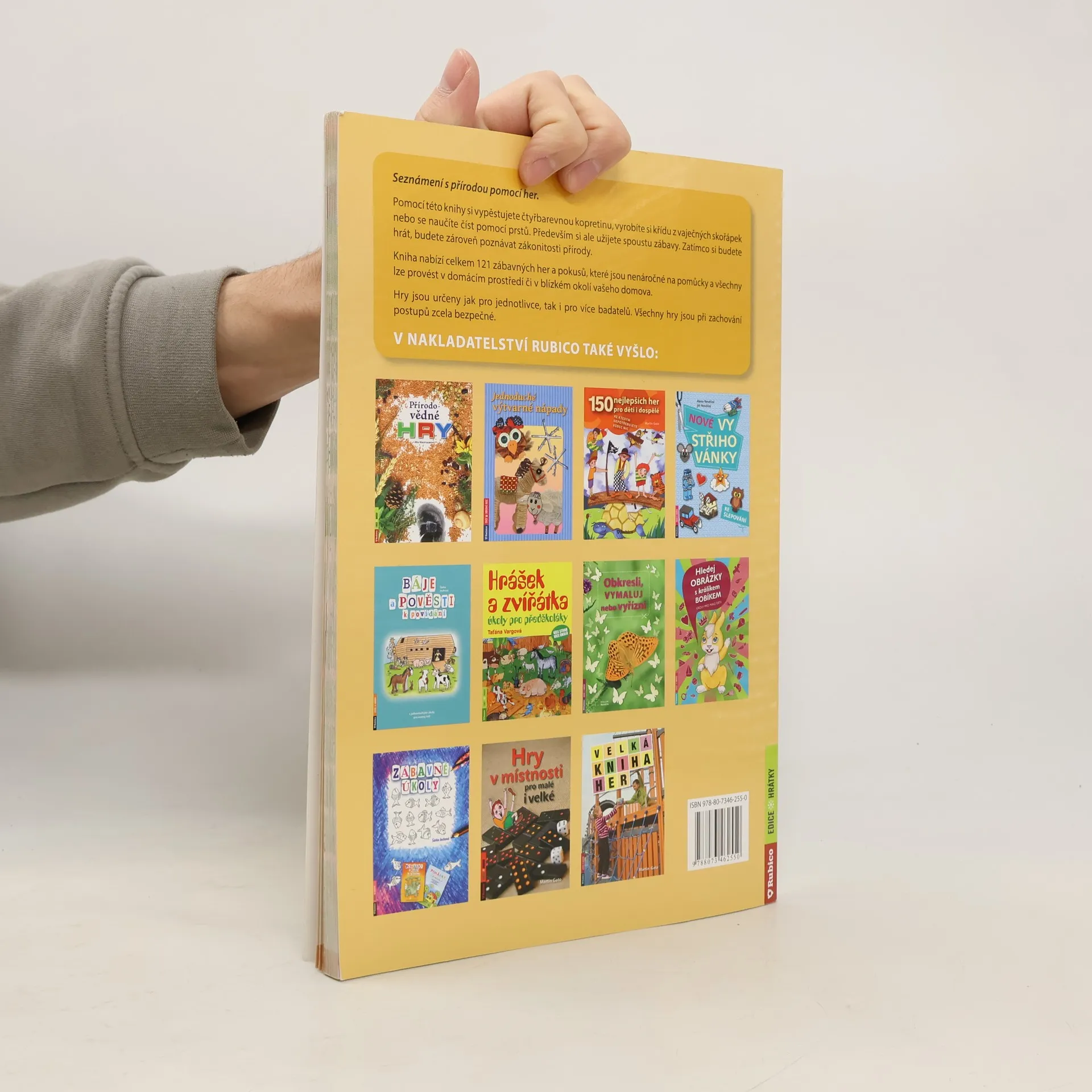 Seznámení s přírodou pomocí her. Pomocí této knihy si vypěstujete čtyřbarevnou kopretinu, vyrobíte si křídu z vaječných skořápek nebo se naučíte číst pomocí prstu. Především si ale užijete spoustu zábavy. Zatímco si budete hrát, budete současně poznávat zákonitosti přírody. Kniha nabízí 121 zábavných her a pokusů, které jsou nenáročné na pomůcky a všechny lze provést v domácím prostředí či v blízkém okolí vašeho domova. Hry jsou určeny jak pro jednotlivce, tak i pro více badatelů. Všechny hry jsou při zachování postupu zcela bezpečné.