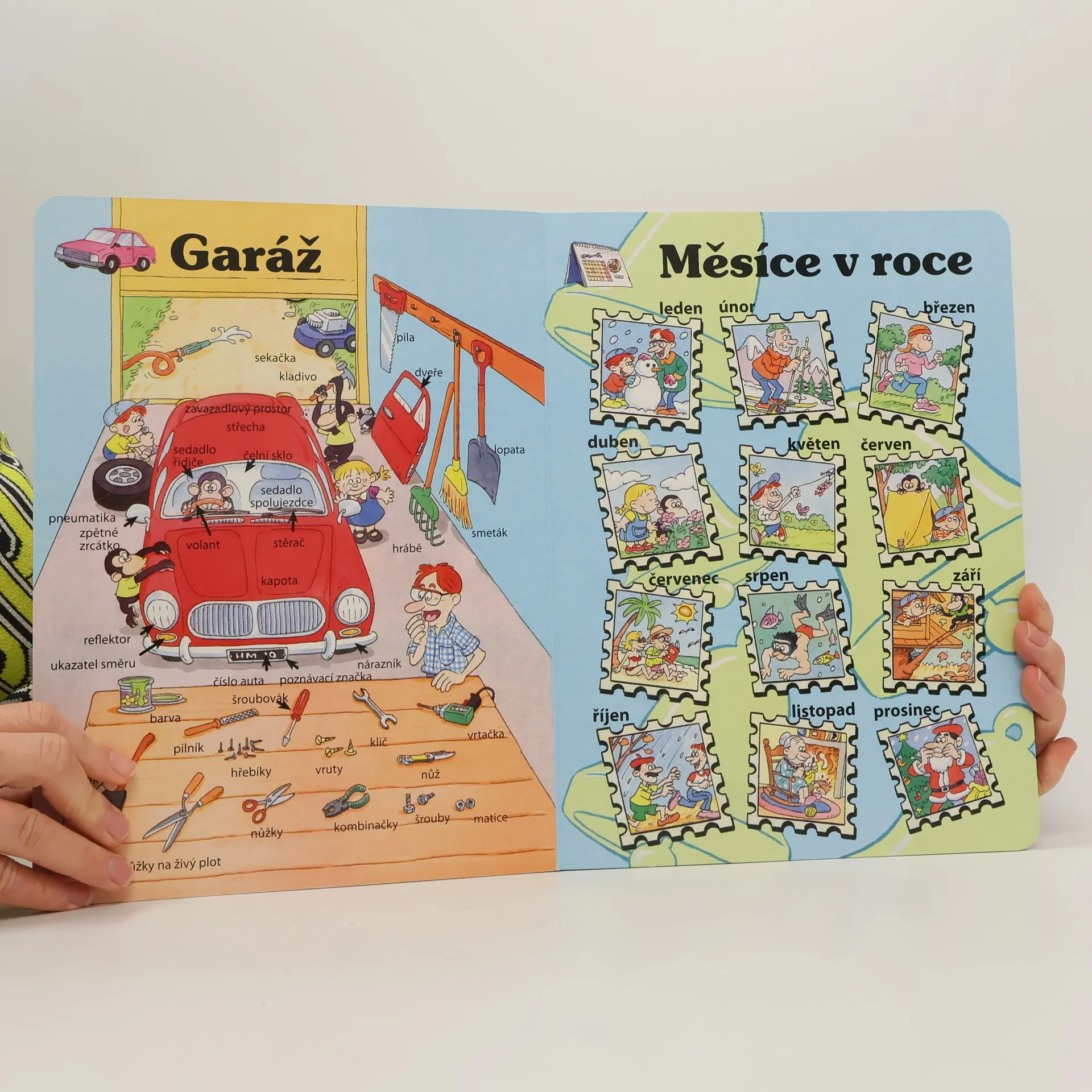 Leporelo, s jehož pomocí se děti naučí správně pojmenovat různé věci v domě, měsíce v roce, jednotlivé části oblečení, přírodní úkazy, počasí, květiny i různé druhy sportů.