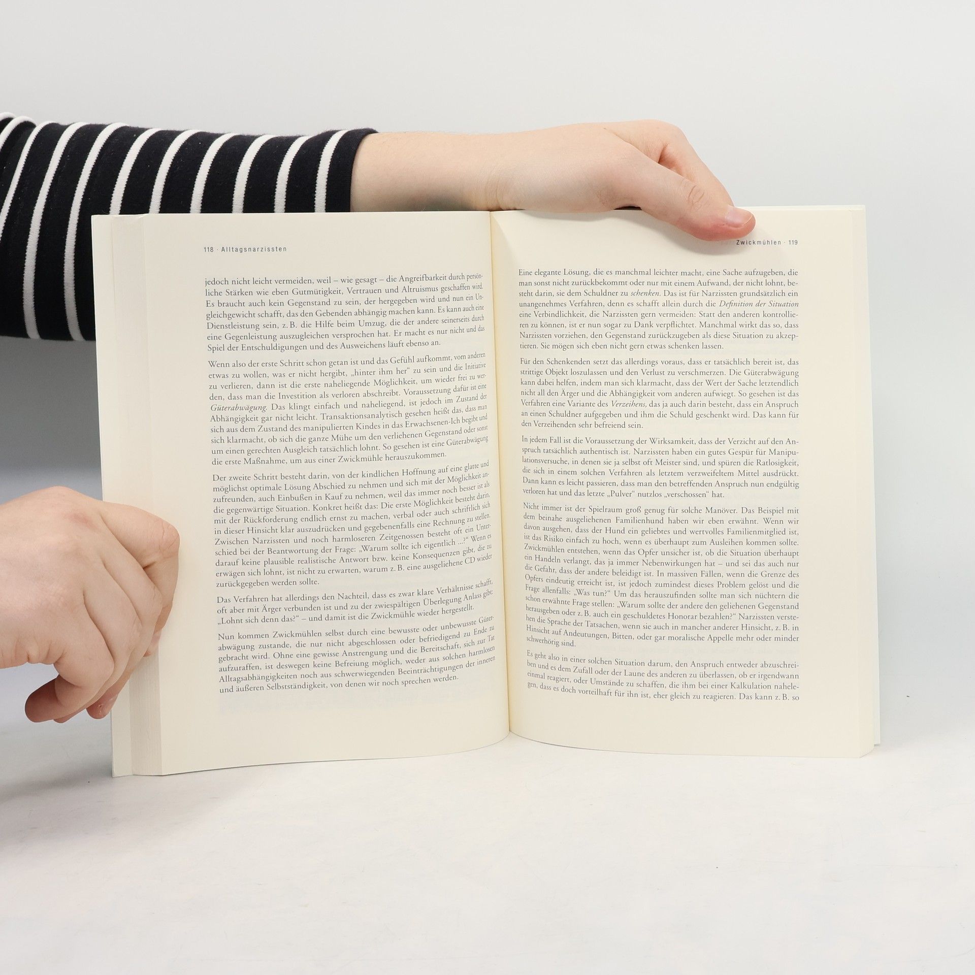 Erfahrungen mit Menschen, die zwei Seiten haben, eine „gute“, verführerische Außenseite und eine „böse“, die verdeckt ihre moralisch-selbstsüchtigen Ziele verfolgt, sind tief beunruhigend. Wir alle haben das Bedürfnis zu wissen, wen wir vor uns haben, und suchen im Guten wie im Bösen Eindeutigkeit, um Vertrauen aufzubauen und uns gegebenenfalls zu schützen. Es gibt jedoch Menschen, die ohne Konflikt und Skrupel Widersprüchliches sagen oder tun – weil es ihnen nützlich ist und passend erscheint. Um solche „Alltagsnarzissten“ geht in diesem Buch. Äußerlich sehr erfolgreich und anderen überlegen sind sie gewissermaßen die Hechte im Teich. Und die Karpfen um sie herum begreifen einfach nicht, was geschieht. Das Buch soll helfen, sich zu schützen, denn nach Meinung der Autoren sind die Narzissten ihren herkömmlich strukturierten Mitmenschen hauptsächlich deshalb überlegen, weil diese überhaupt keinen Begriff von der narzisstischen Persönlichkeitsstruktur haben. Doch auch Narzissten sind angesprochen, denn trotz aller äußeren Erfolge leiden sie unter ihrer Persönlichkeitsstruktur. Durch Selbsterkenntnis können sie Schritt für Schritt aus dieser Falle eines vordergründig so erfolgreichen Lebensstils herauskommen.